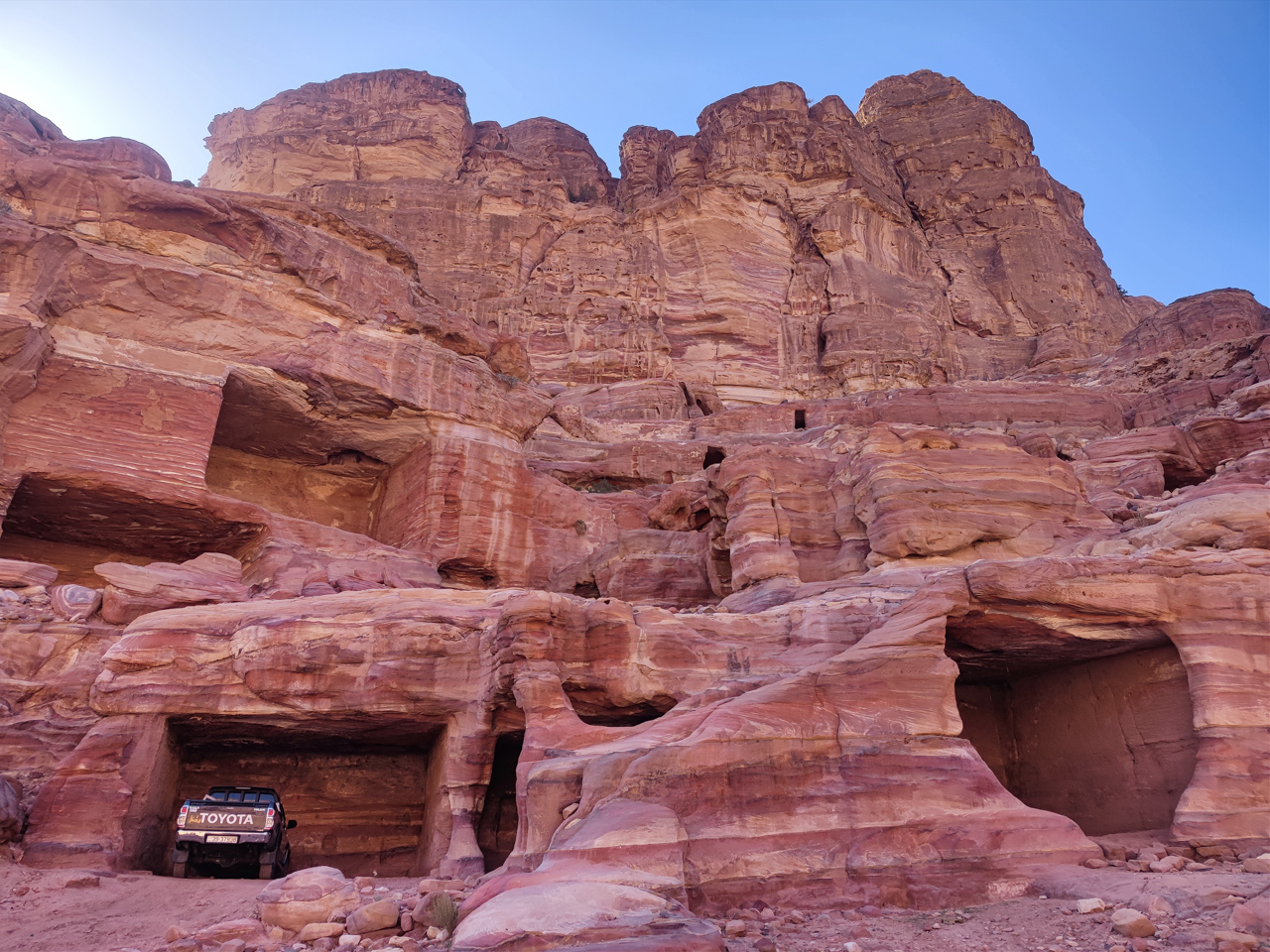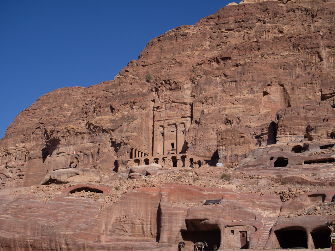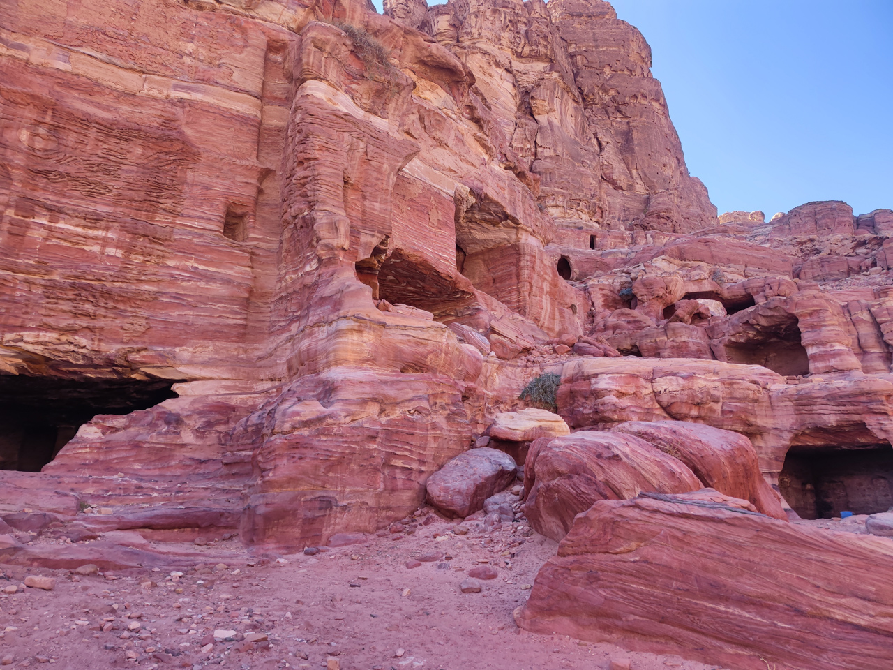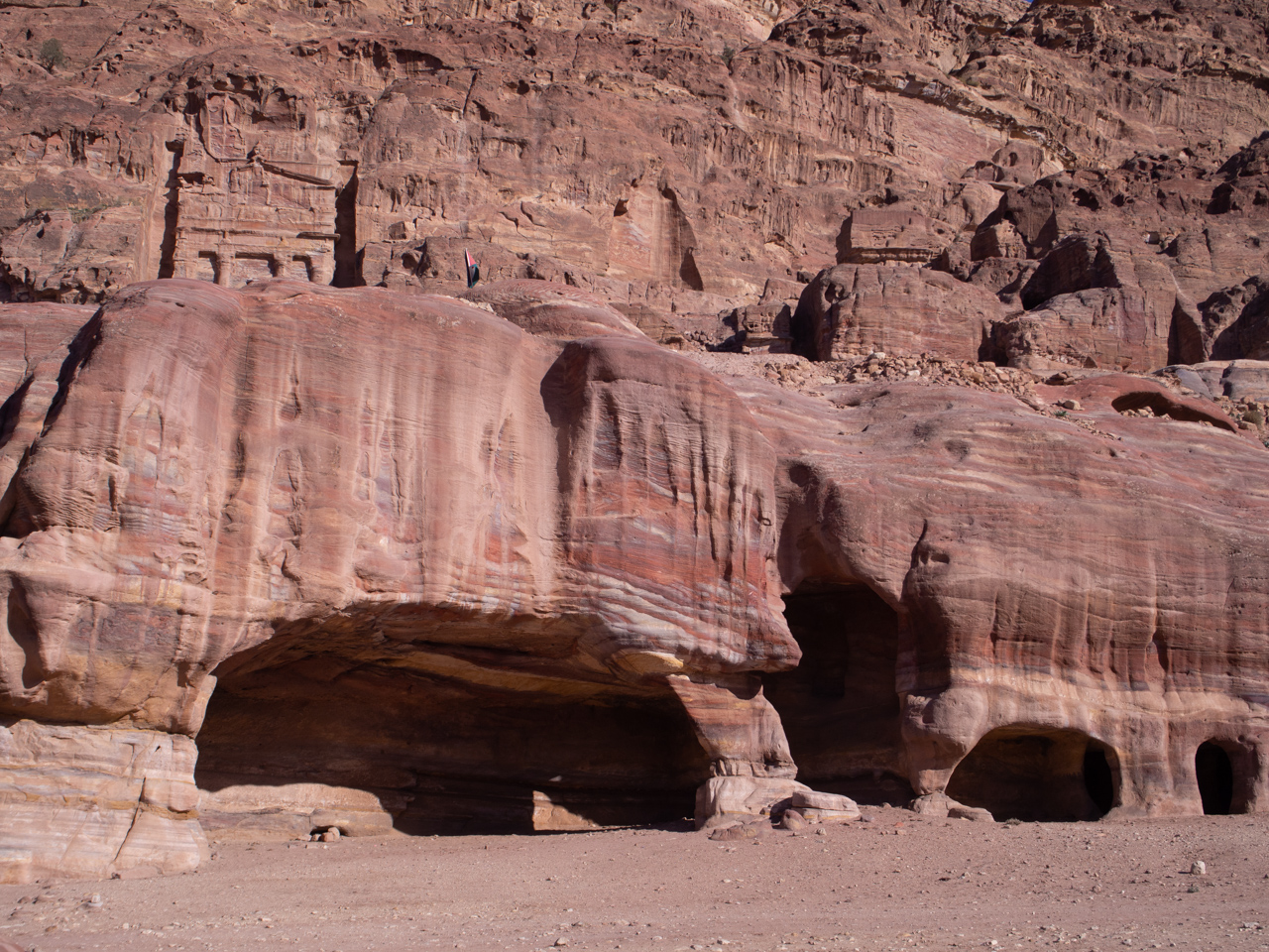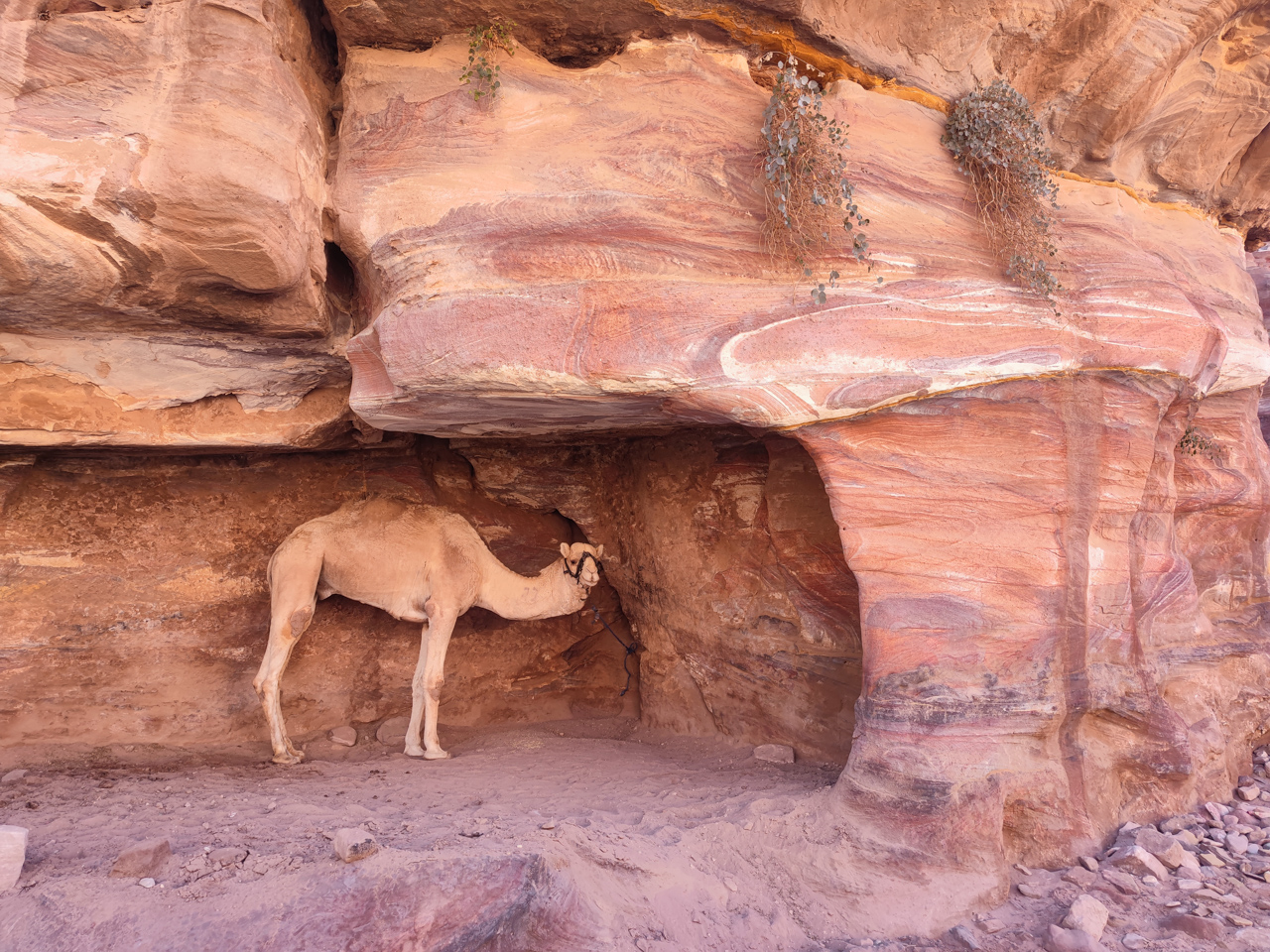 Les caves sont toujours utilisées aujourd’hui par les bédouins, on remarque que certaines servent de garage, d’autres pour abriter les chèvres ou attacher son chameau. Des familles bédouins ont refusé de quitter Pétra et de s’installer dans le Bedouin village construit pour eux en bordure du site. Certaines caves sont toujours habitées et c’est ce que l’on apprendra plus le lendemain soir.