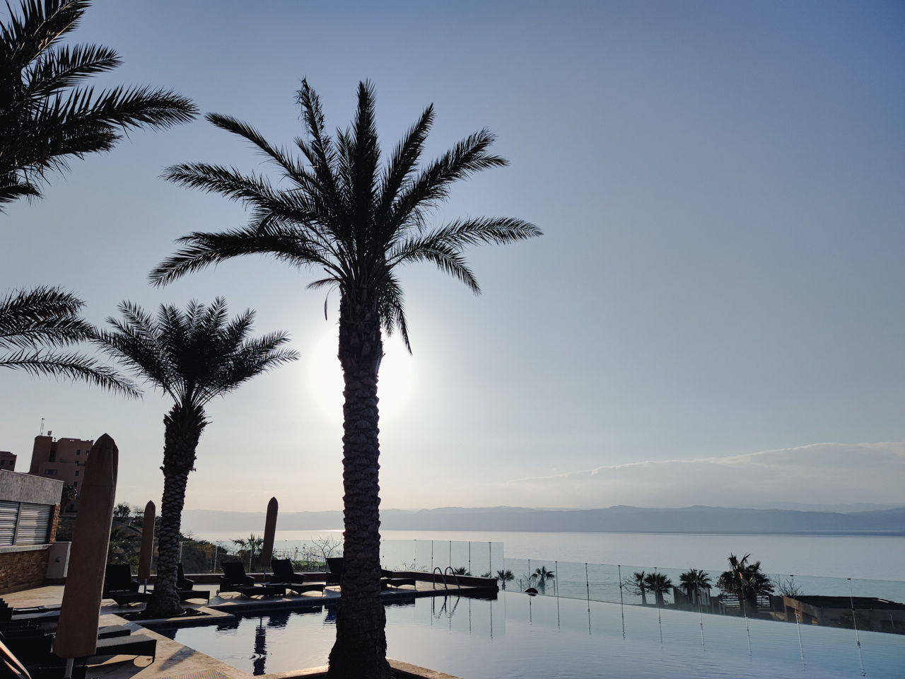 On arrive à notre hôtel pour les prochains jours. La zone hôtelière de la Mer Morte se trouve au Nord de celle-ci, ils sont tous groupés ensemble à proximité d’un Mall. Les constructions sont contemporaines avec de belles installations qui permettent de profiter des bienfaits pour la peau des bains dans la Mer Morte, une pratique qui existe depuis l’Antiquité.