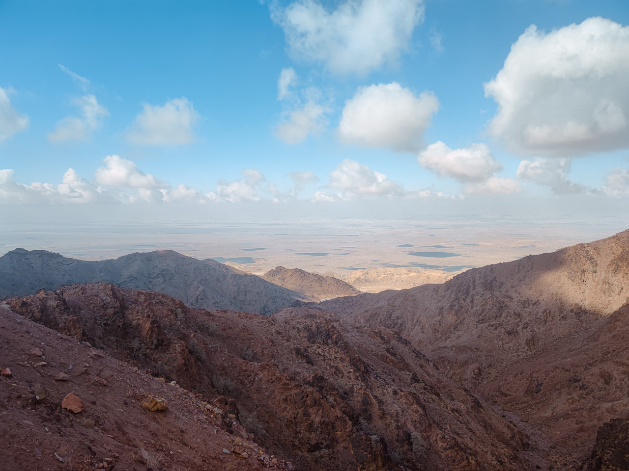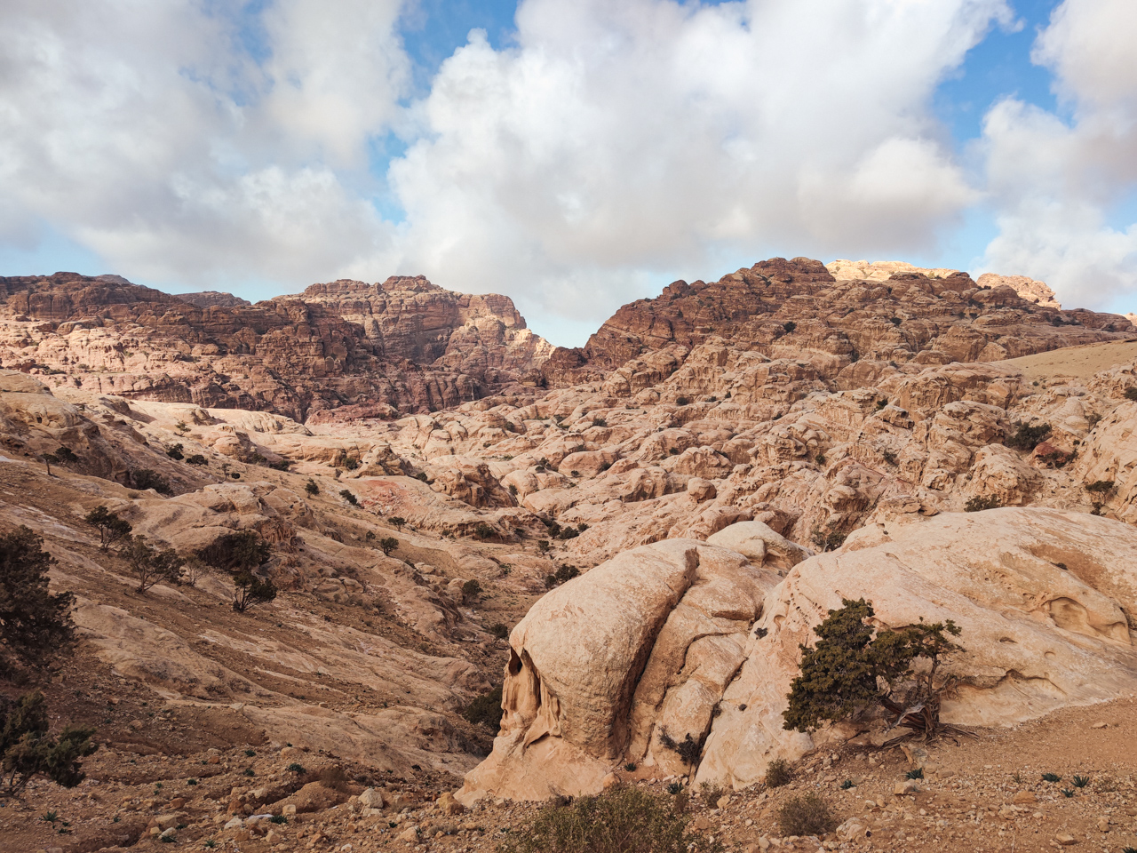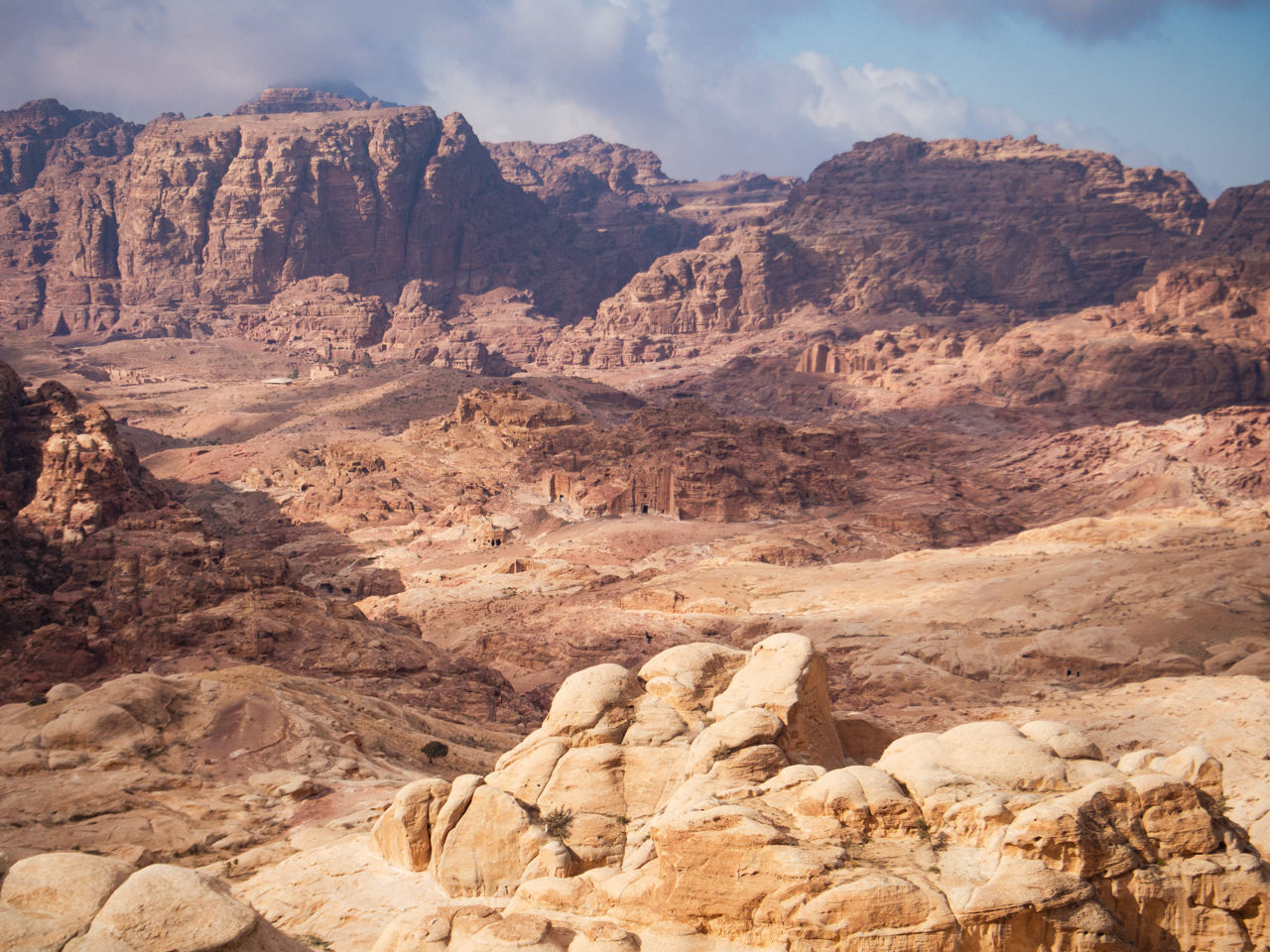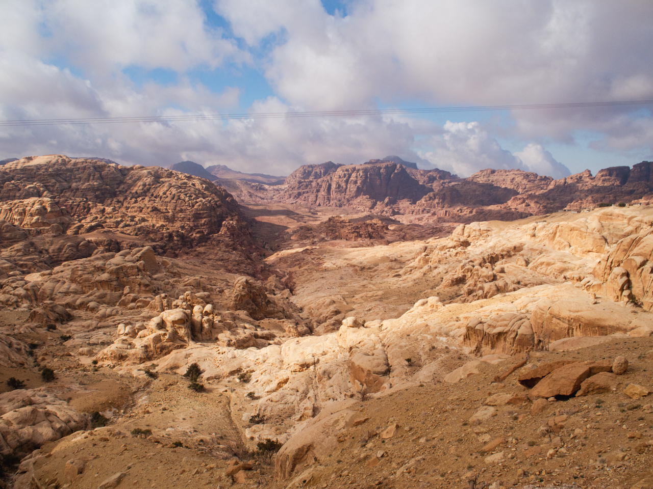 Depuis la route, on embrasse la vue sur le site de Pétra, dire que c'est au fond de cette vallée que se cache la cité perdue des Nabatéens.