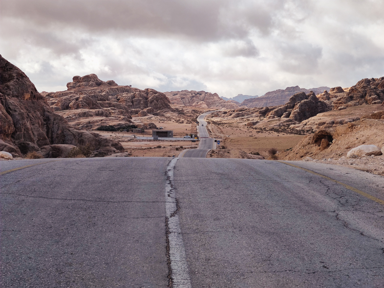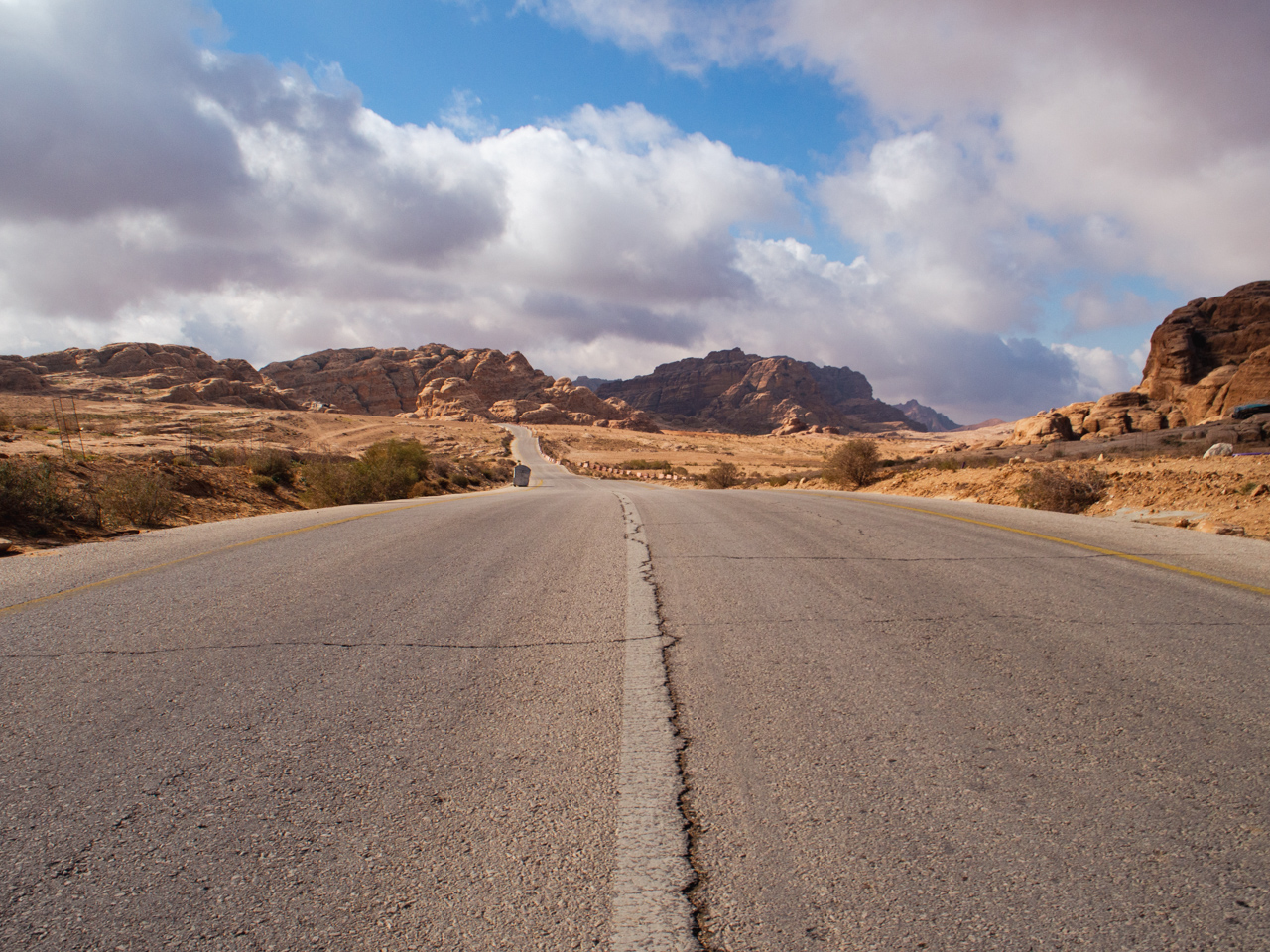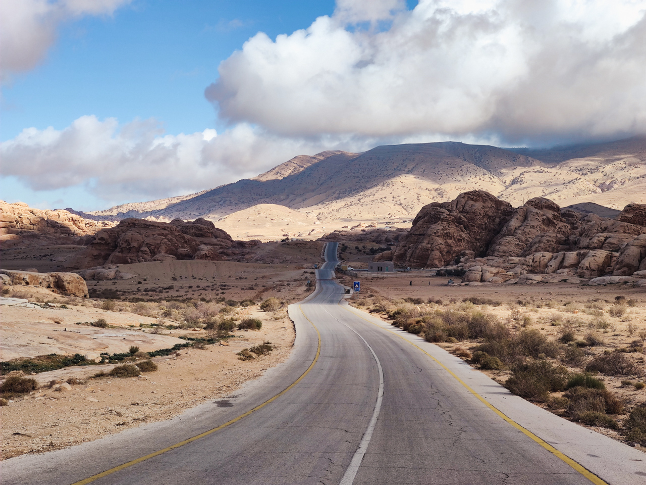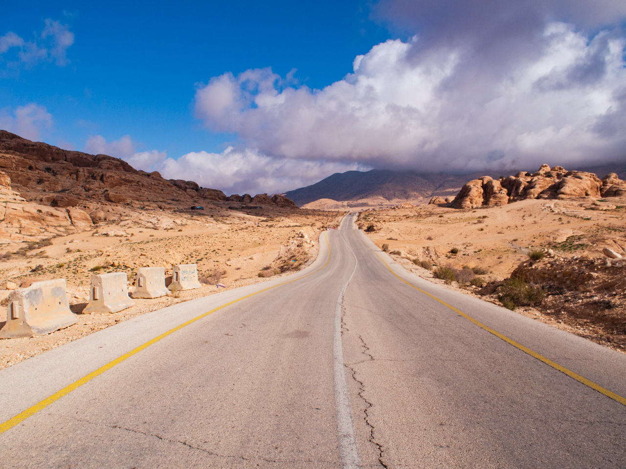 Après l’entrée de Little Petra, on bifurque à gauche sur la petite route du Wadi Araba plutôt que la route principale de King’s Highway. Cette route est sinueuse et traverse des paysages désertiques, il n’y a personne qui vit et là sauf quelques nomades qui ont installé leur tente avec leurs chèvres.