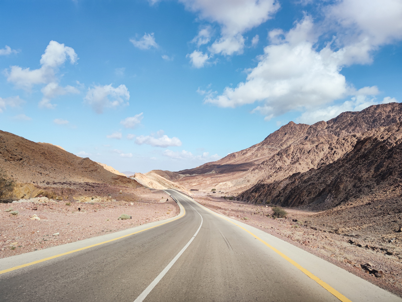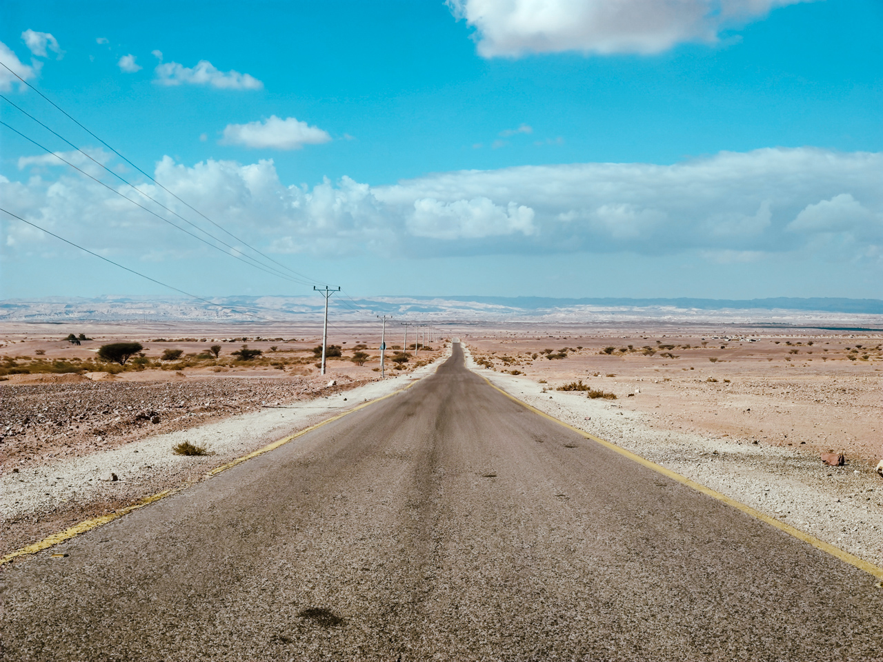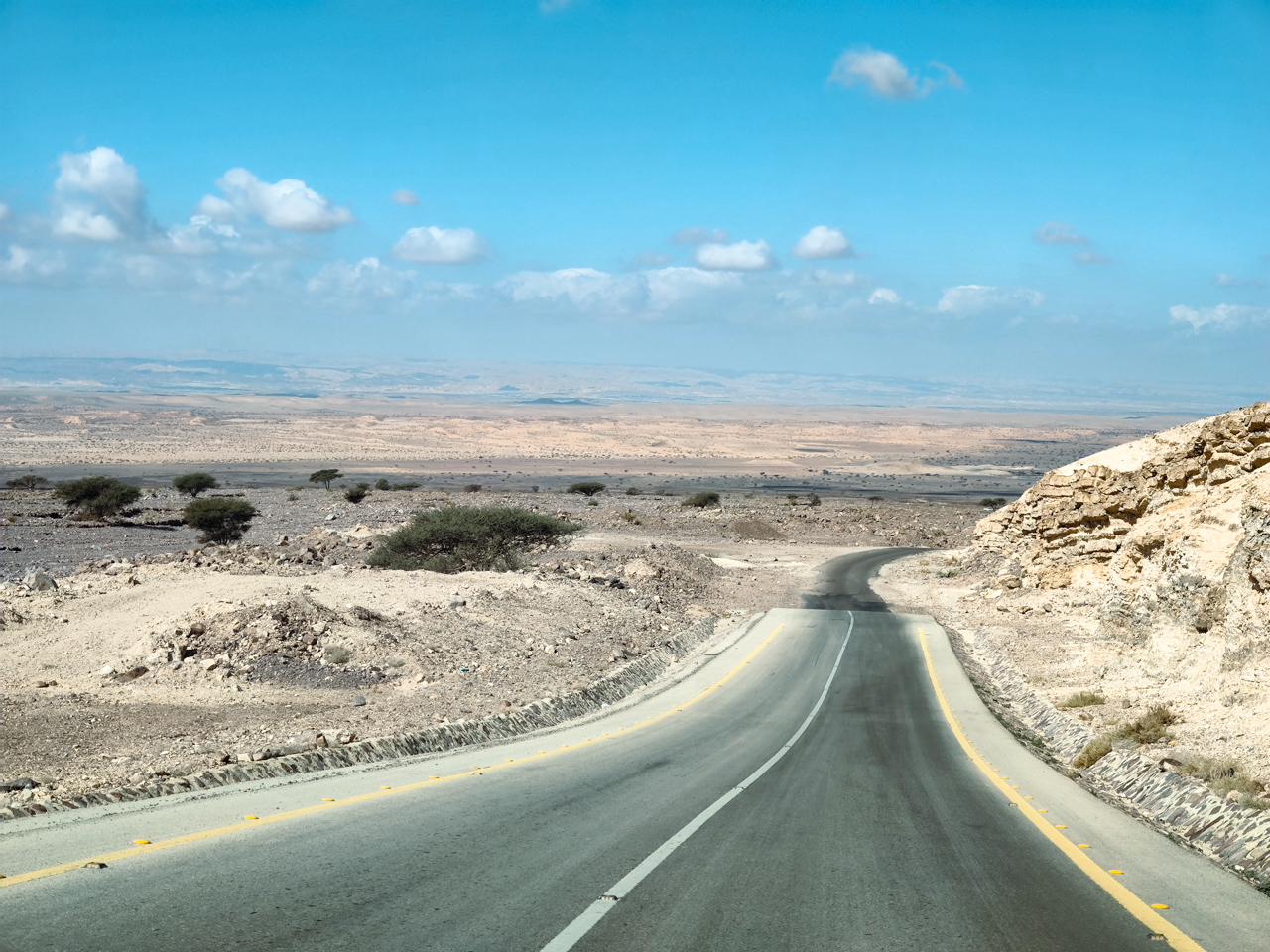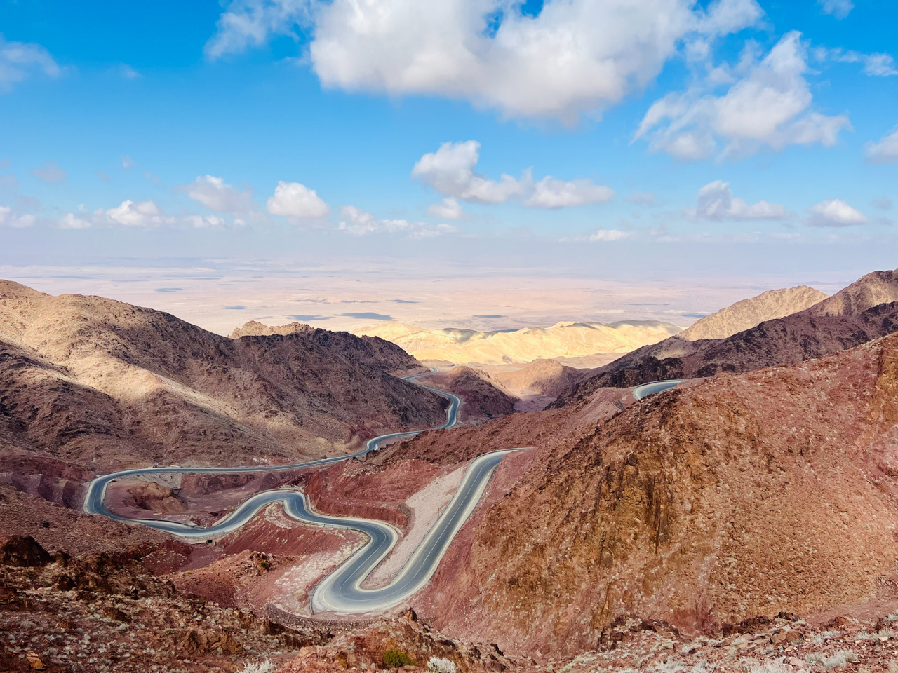 Après l’entrée de Little Petra, on bifurque à gauche sur la petite route du Wadi Araba plutôt que la route principale de King’s Highway. Cette route est sinueuse et traverse des paysages désertiques, il n’y a personne qui vit et là sauf quelques nomades qui ont installé leur tente avec leurs chèvres.