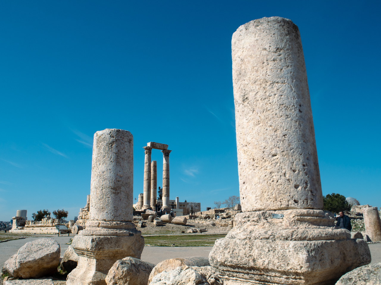 On poursuit notre route jusqu’à Amman pour visiter la citadelle qui domine la ville. Cette citadelle est le coeur historique de la ville, où les différentes civilisations ont édifié leurs monuments, que ce soit les juifs, les romains, les turcs ou les arabes. Les différents vestiges témoignent de ces époques.