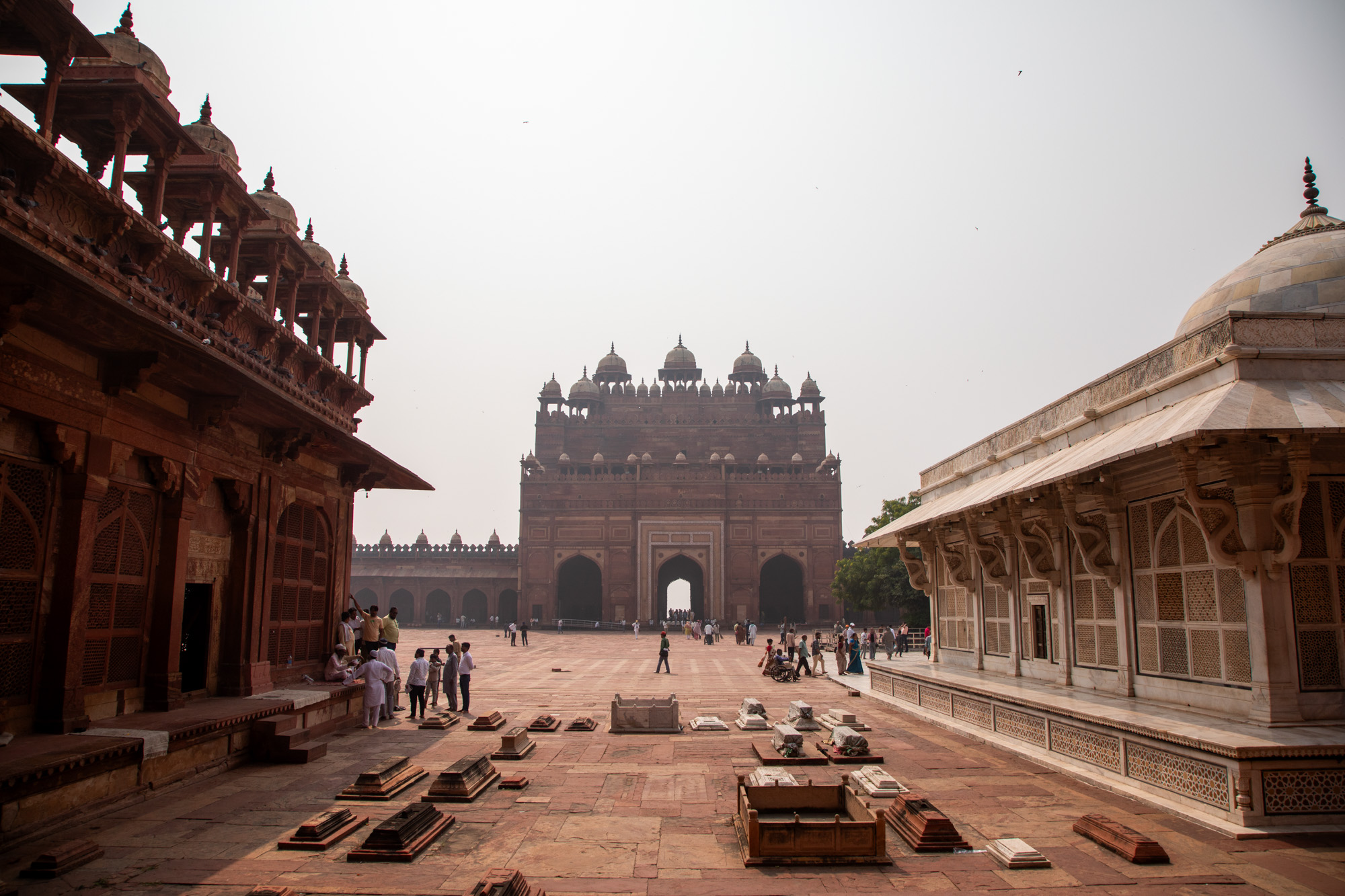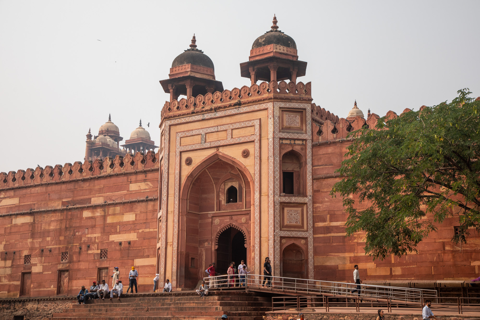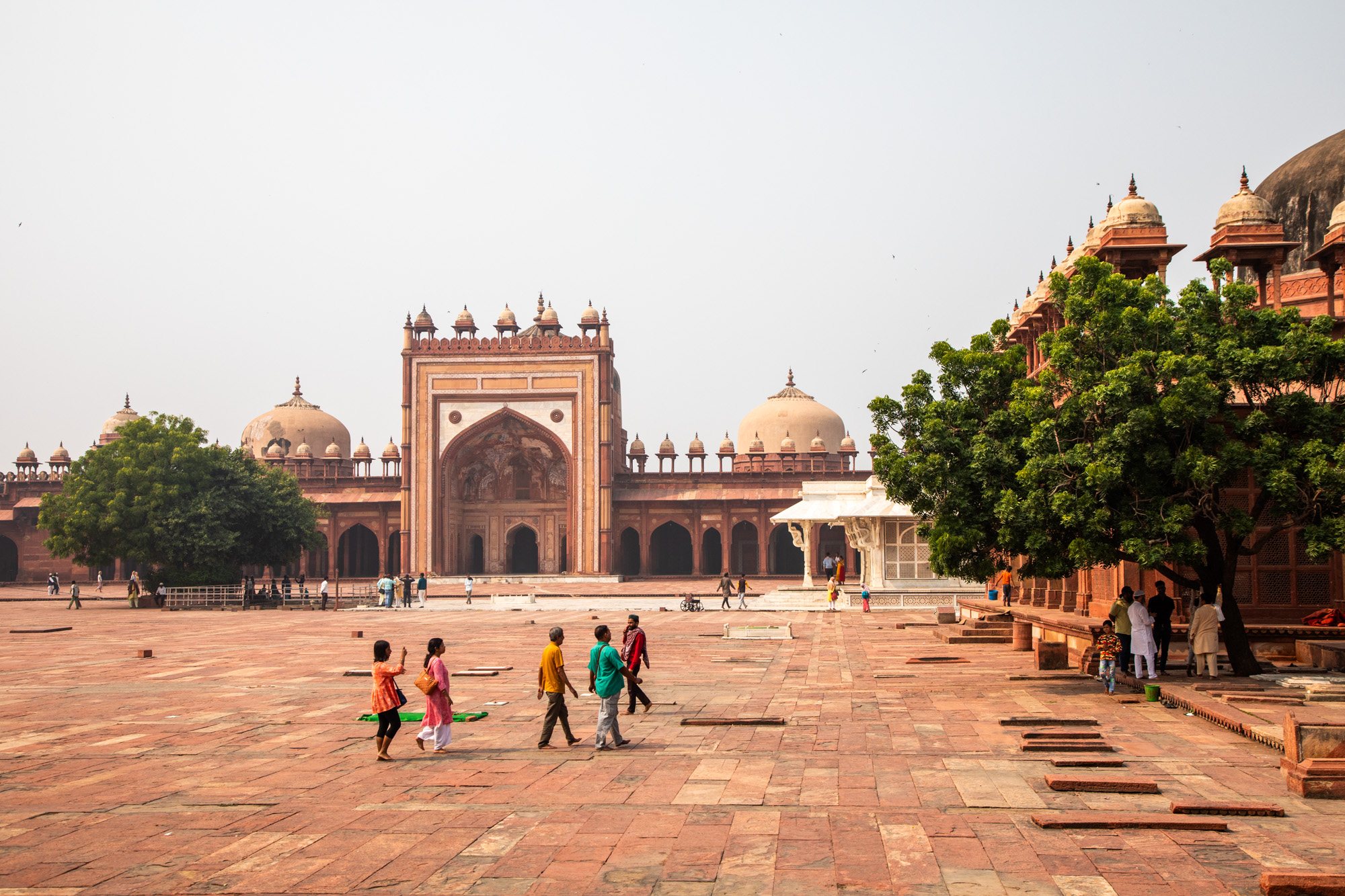 Notre chauffeur nous attend le matin devant notre hotel d’Agra, et on part pour notre première étape pour notre journée ensemble, la ville impériale de Fatehpur Sikri qui se trouve à une première heure de route depuis Agra. On roule jusqu’à un parking à l’intérieur des anciennes murailles de la ville démolies. On prend un guide qui va nous accompagner au sein du complexe qui est plutôt grand.