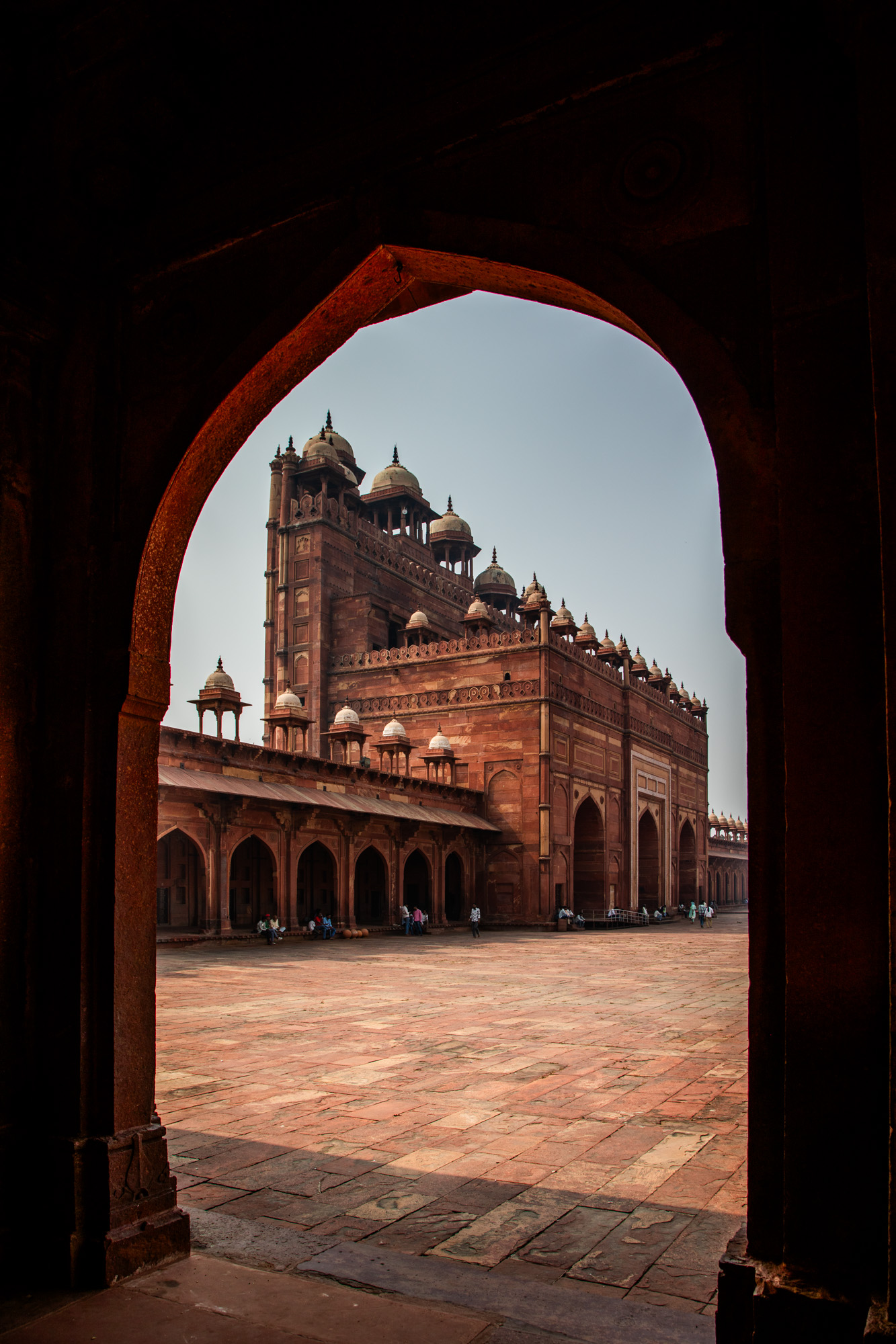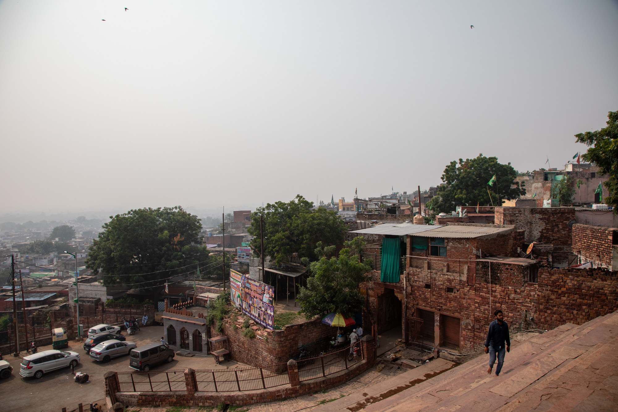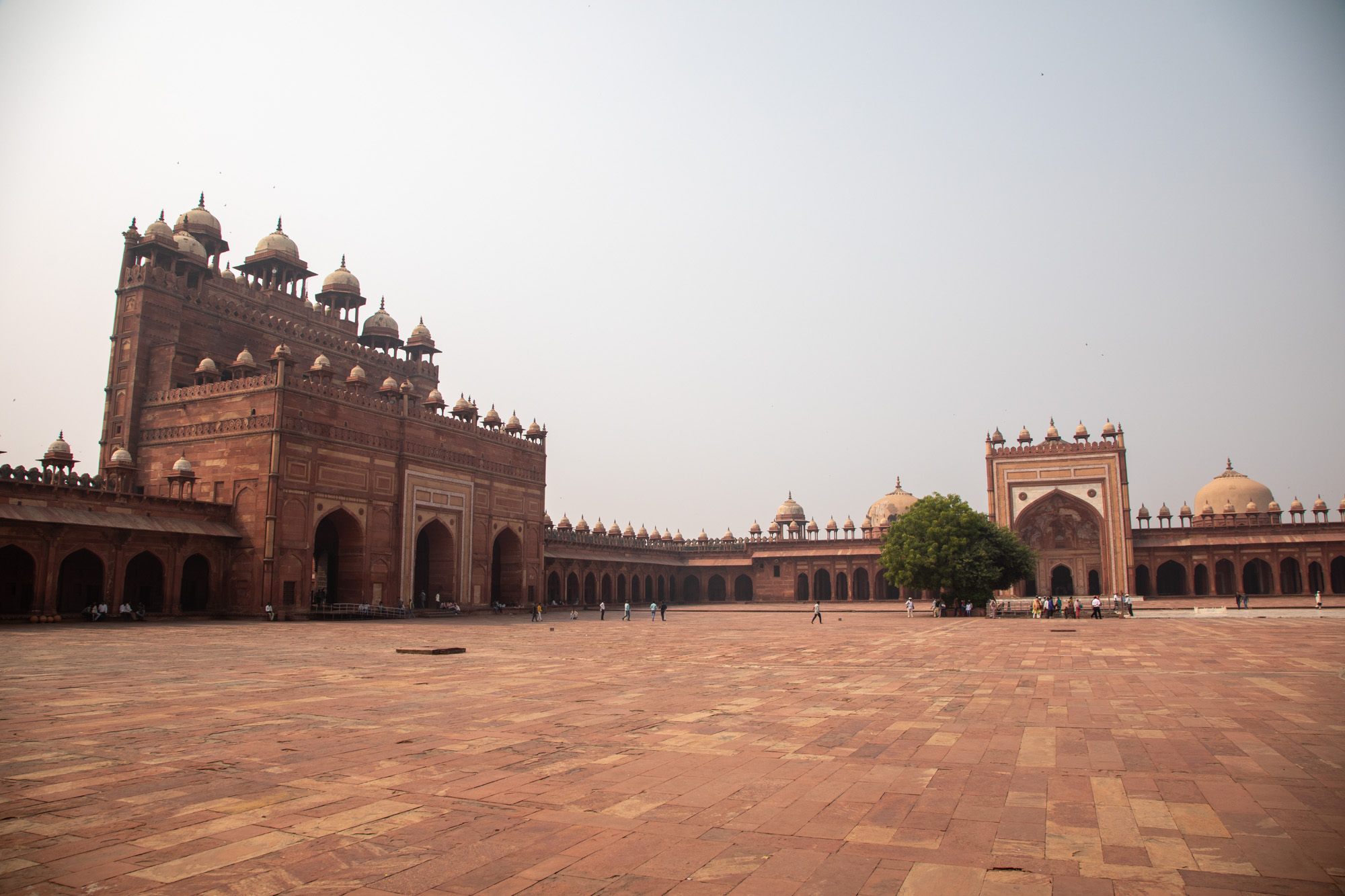 On ressort de la mosquée qui surplombe la petite ville de Fatehpur Sikri qui est dans la poussière. Derrière nous la grande porte de l’édifice religieux est tellement impressionnant qu’il ne rentre pas dans le cadre de l’appareil photo.