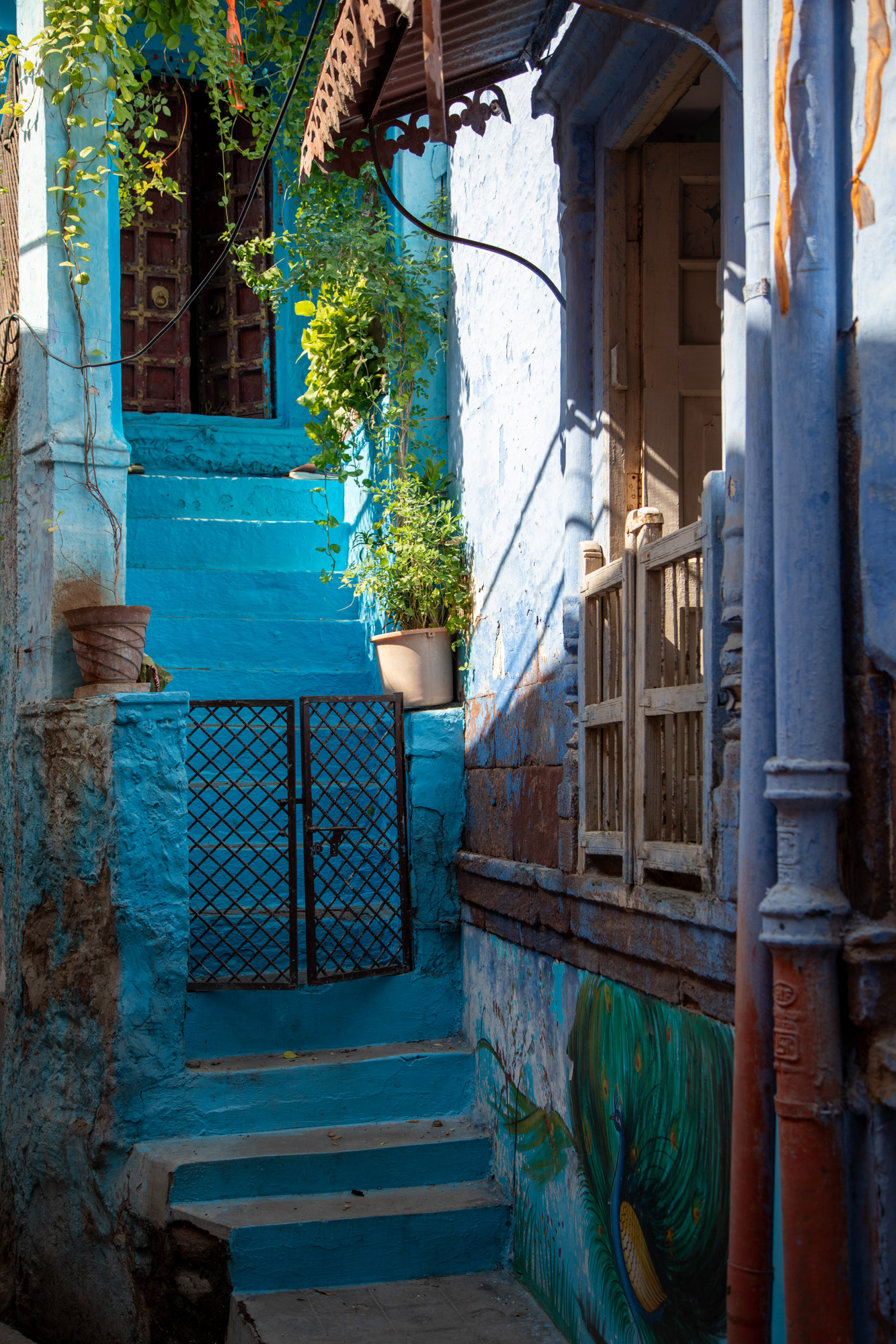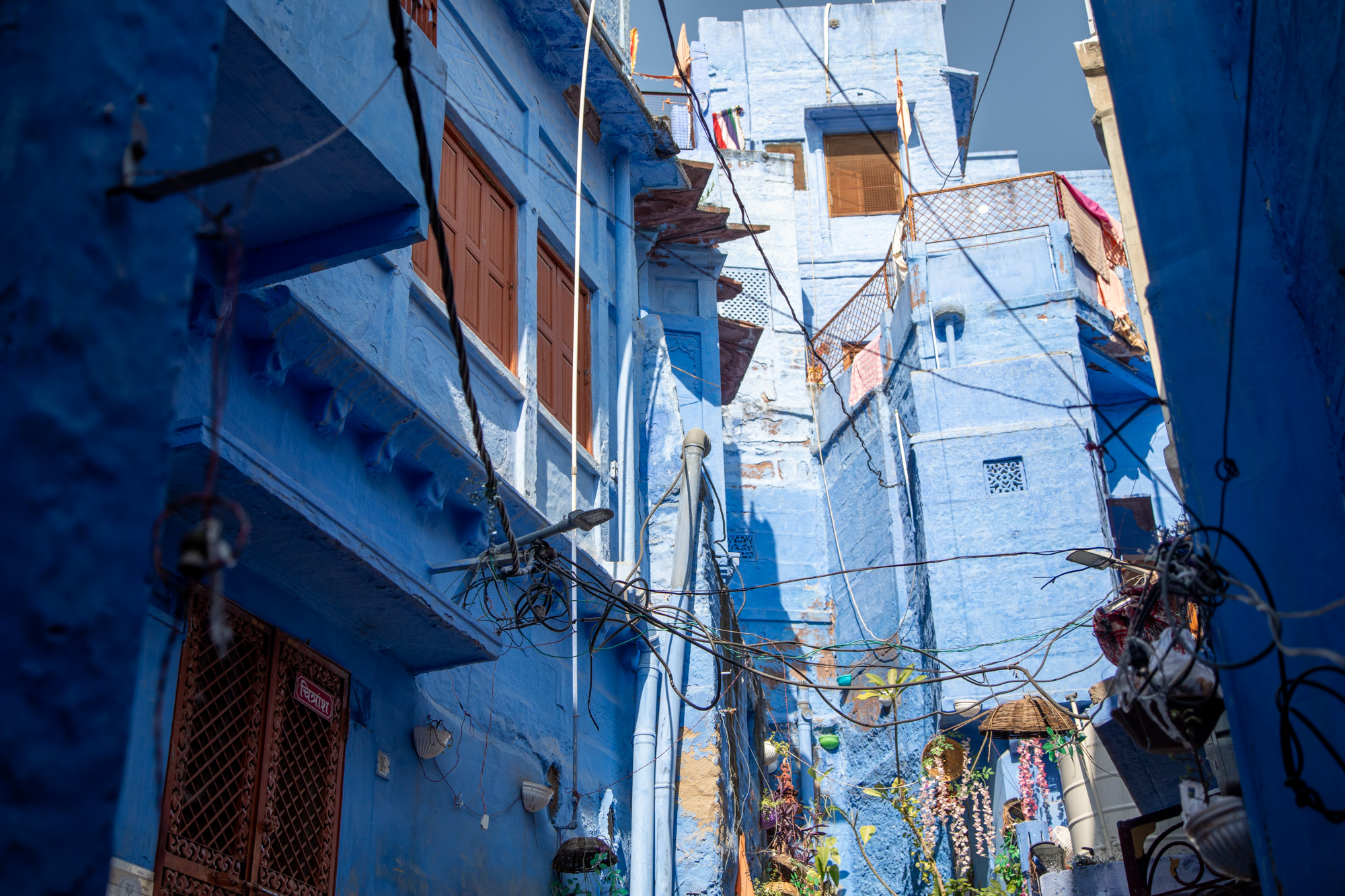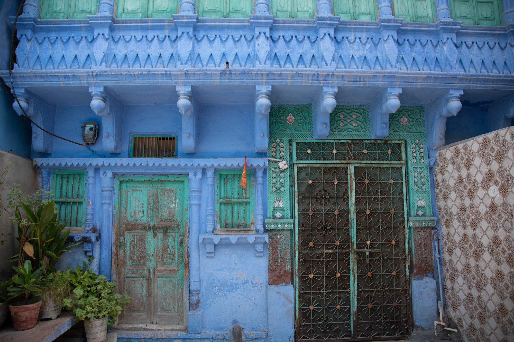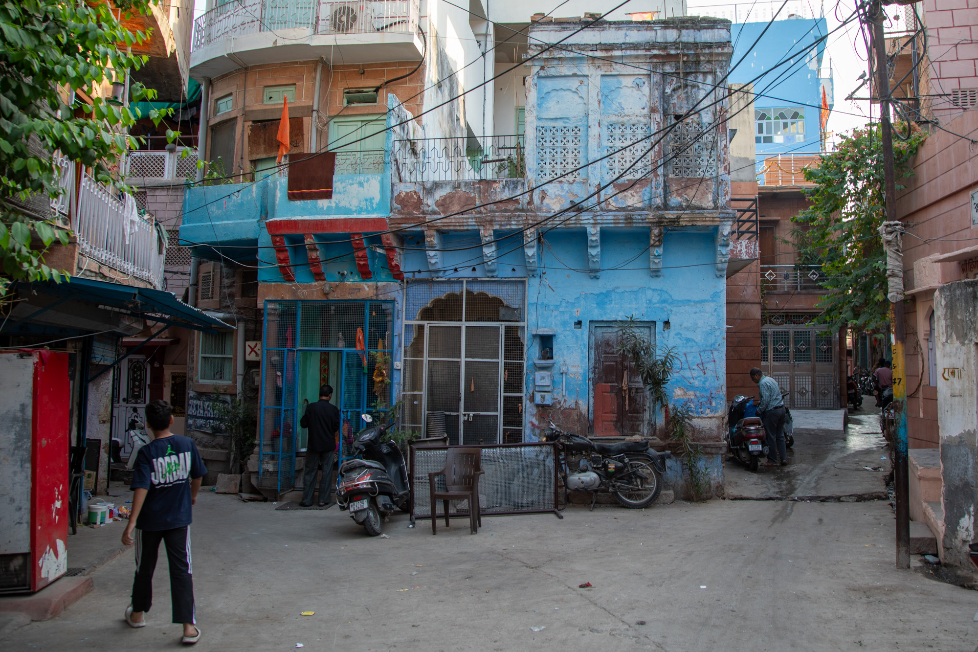 Ce matin, nous avons décidé de prendre un guide pour découvrir les secrets de la ville bleue. C’est une option que l’on ne privilégie pas en général mais on se dit que pour une fois on peut essayer. Notre guide vient donc nous chercher pour une demi journée de découverte de la ville à pieds. On commence par découvrir les ruelles avec ses maisons peintes en bleu. Alors ici, il faut faire un petit commentaire, on pourrait croire que toute la ville de Jodhpur est peinte en bleu. Mais en fait ce n’est que quelques maisons qui sont colorées et le reste est plutôt normal. Néanmoins, il y a de superbes demeures, des havelis plus ou moins conservés, des temples et bien sur des ruelles ou le bleu domine, donnant des angles très photogéniques.
