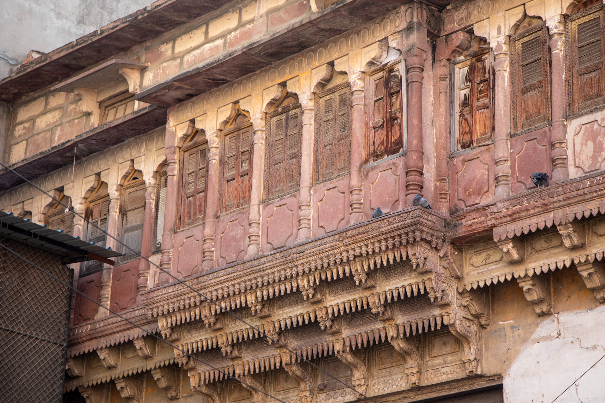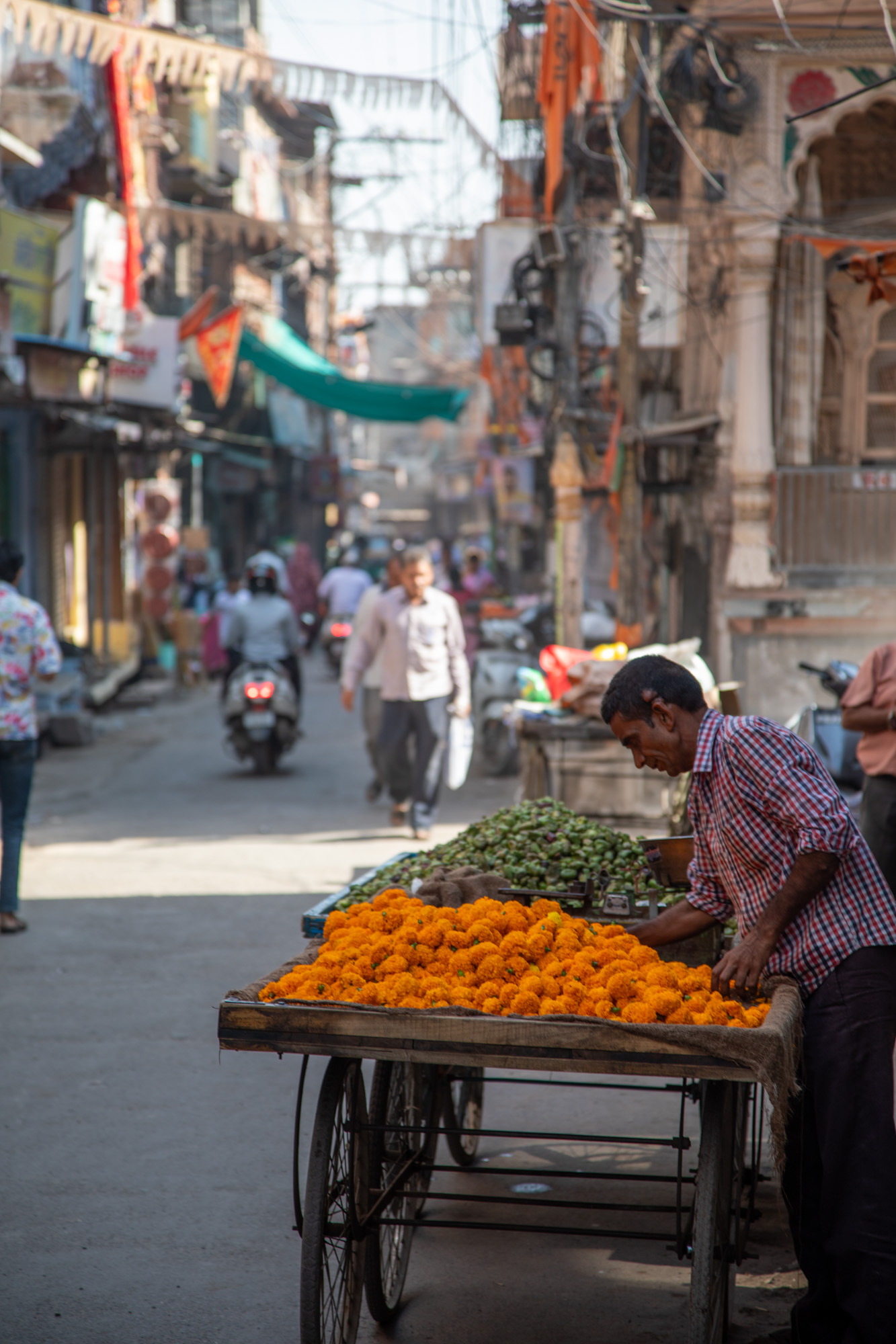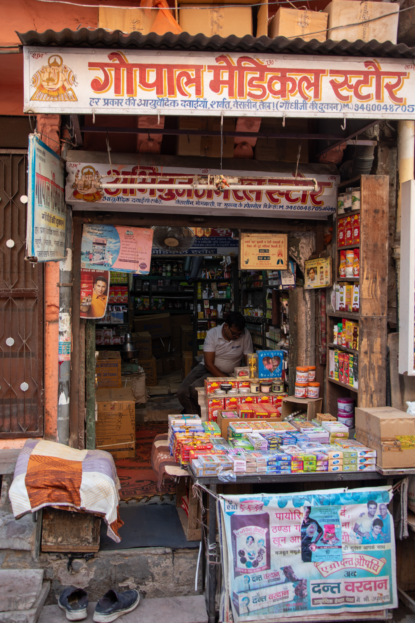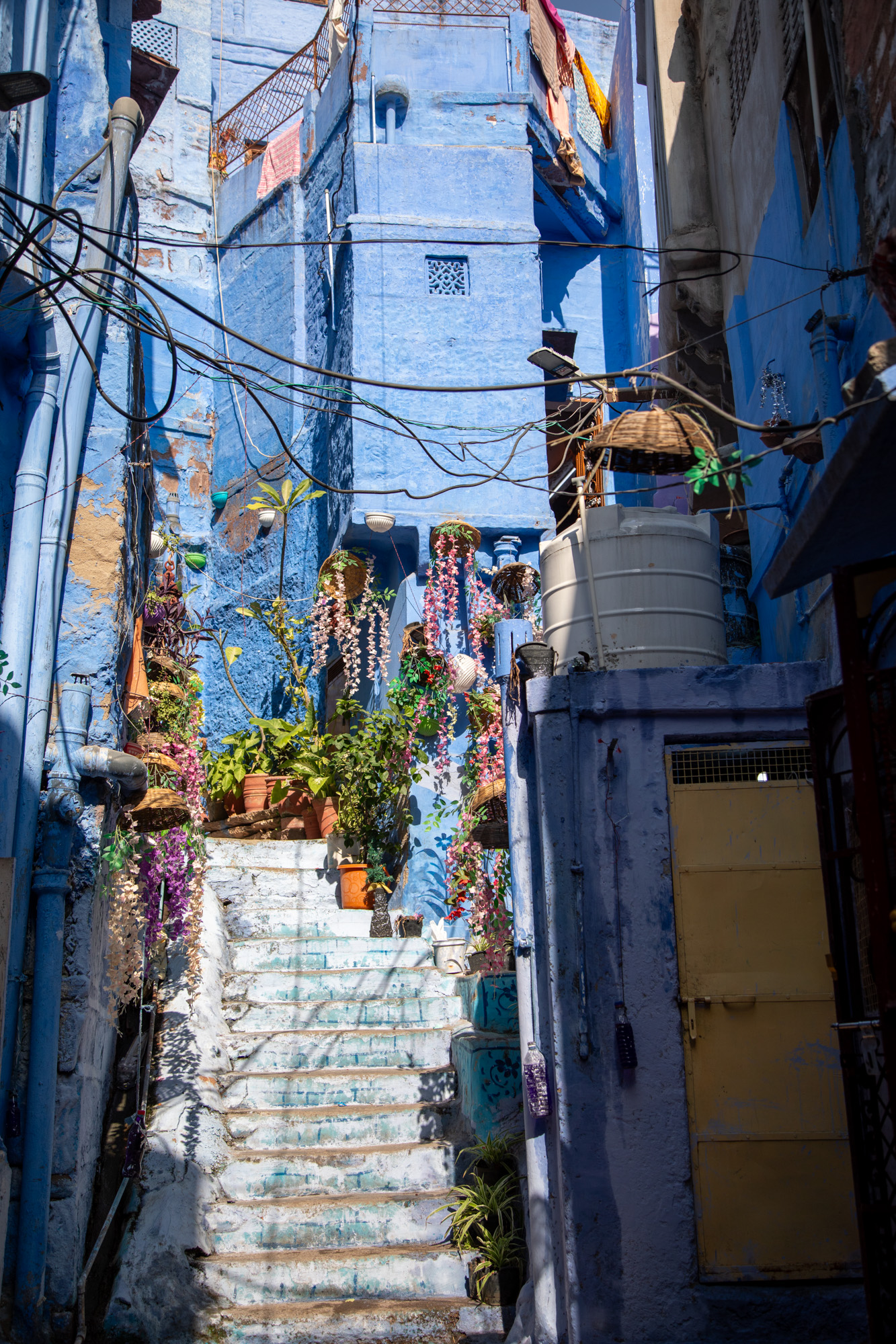La vieille ville de Jodhpur a vraiment des airs de ville du désert, comme dans un conte des mille et une nuits. Les ruelles sont étroites, les bâtiments très hauts, le soleil ne passe pas, il y a des odeurs, des chiens rodent, les motos nous frôlent, la mosquée fait les appels à la prière. Il y a déjà pas mal de boutiques pour les touristes mais on sent que le quartier a gardé encore son âme.