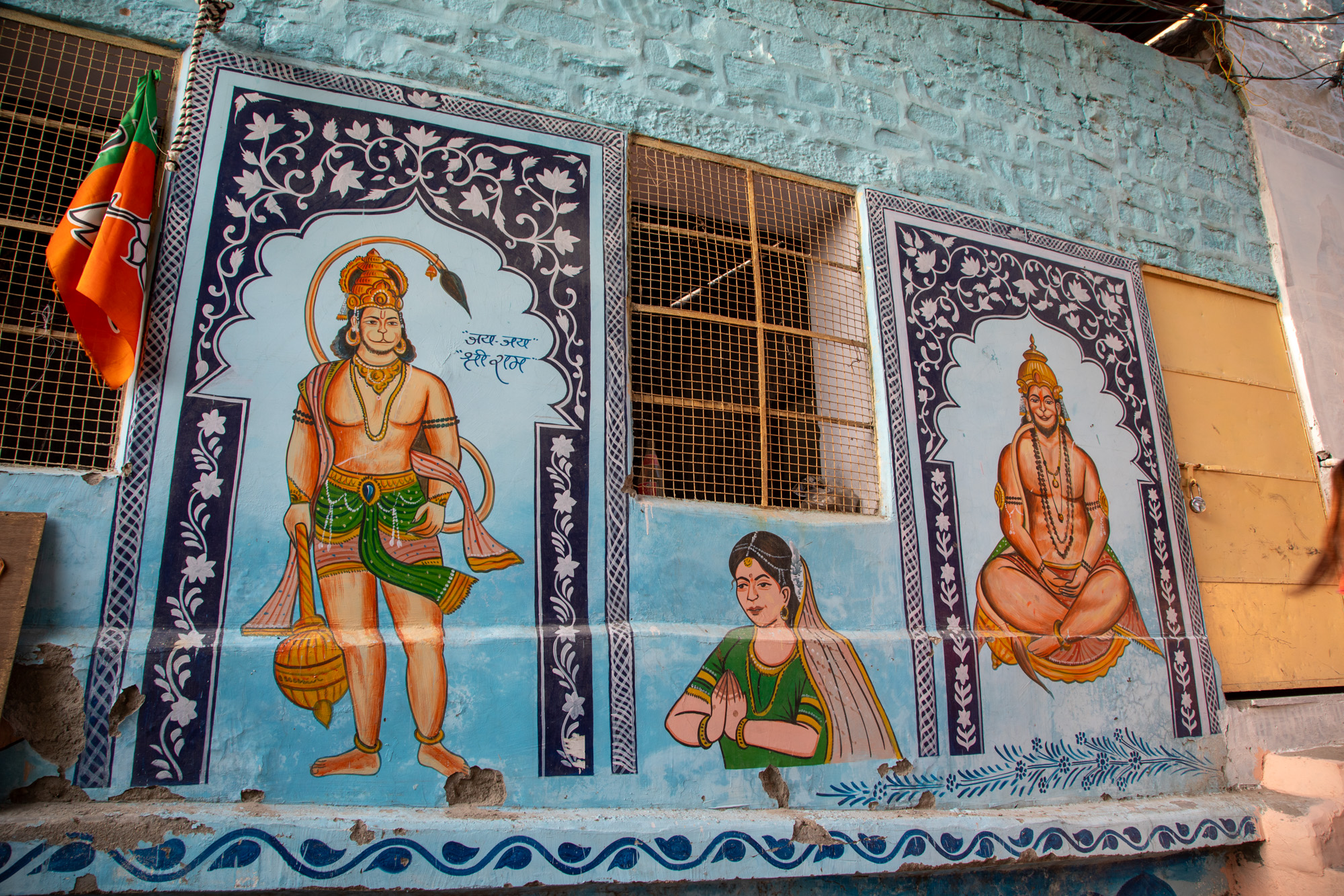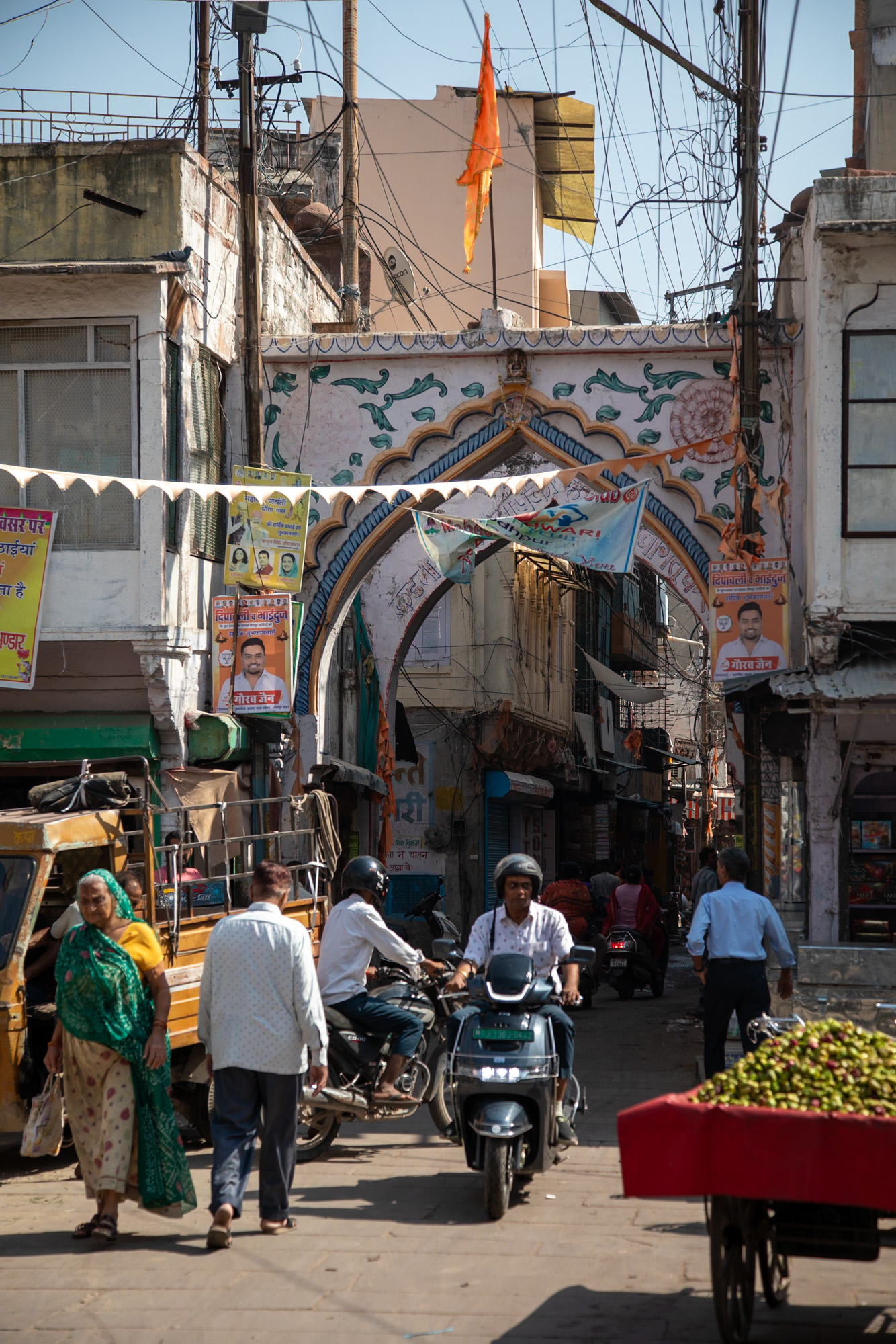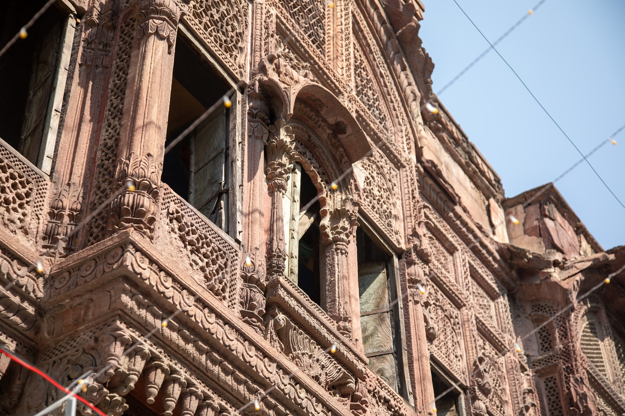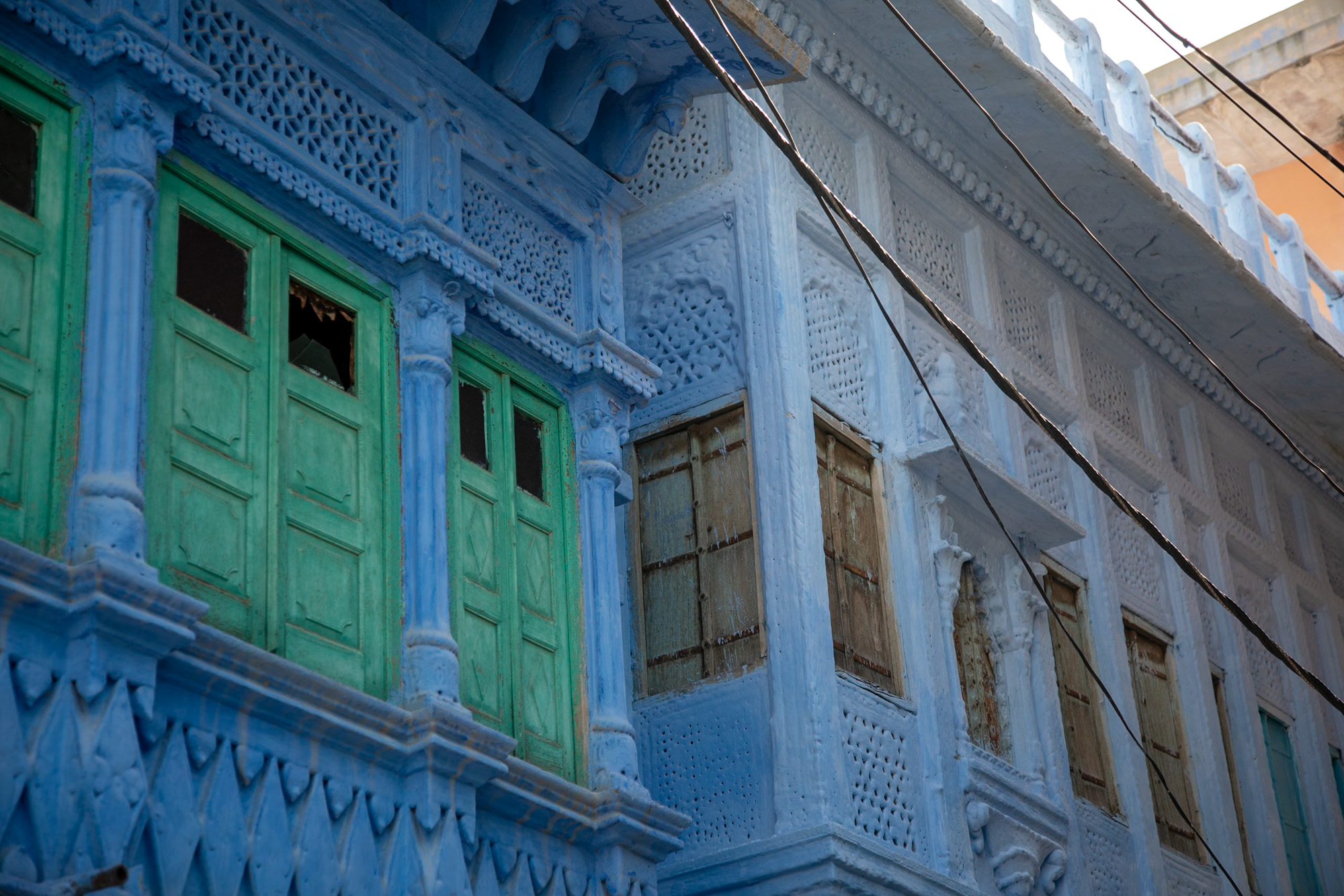 La vieille ville de Jodhpur a vraiment des airs de ville du désert, comme dans un conte des mille et une nuits. Les ruelles sont étroites, les bâtiments très hauts, le soleil ne passe pas, il y a des odeurs, des chiens rodent, les motos nous frôlent, la mosquée fait les appels à la prière. Il y a déjà pas mal de boutiques pour les touristes mais on sent que le quartier a gardé encore son âme.