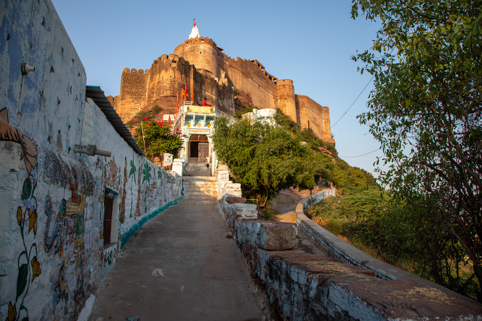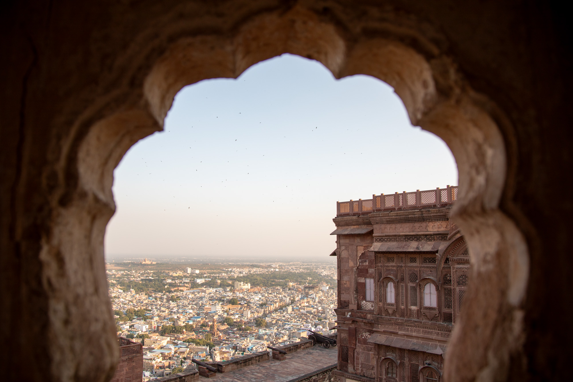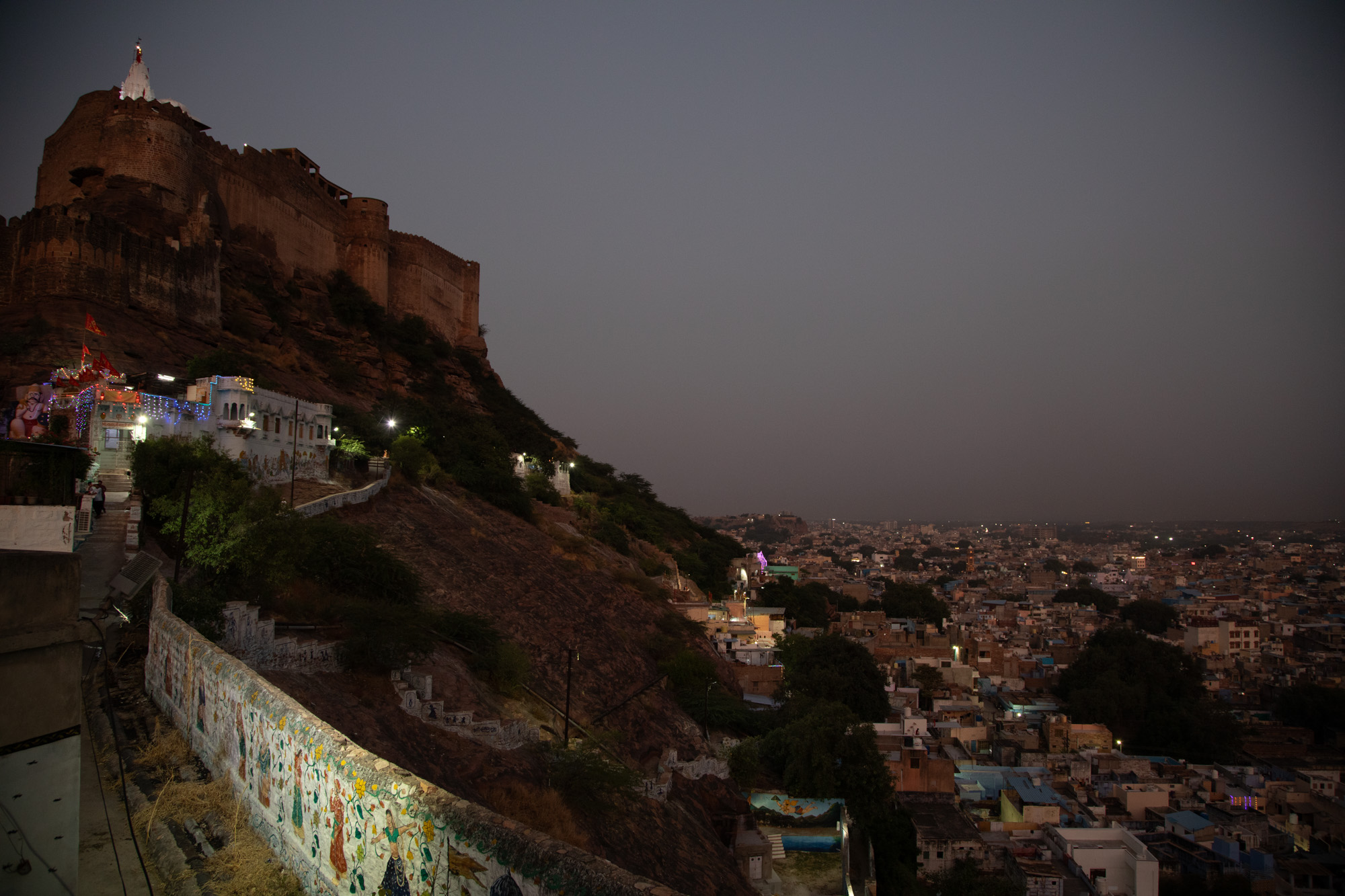 Arrivé sur ce piton rocheux, on est tout au bout de la muraille du fort qui domine la ville de Jodhpur et la ligne d'horizon depuis des siècles.