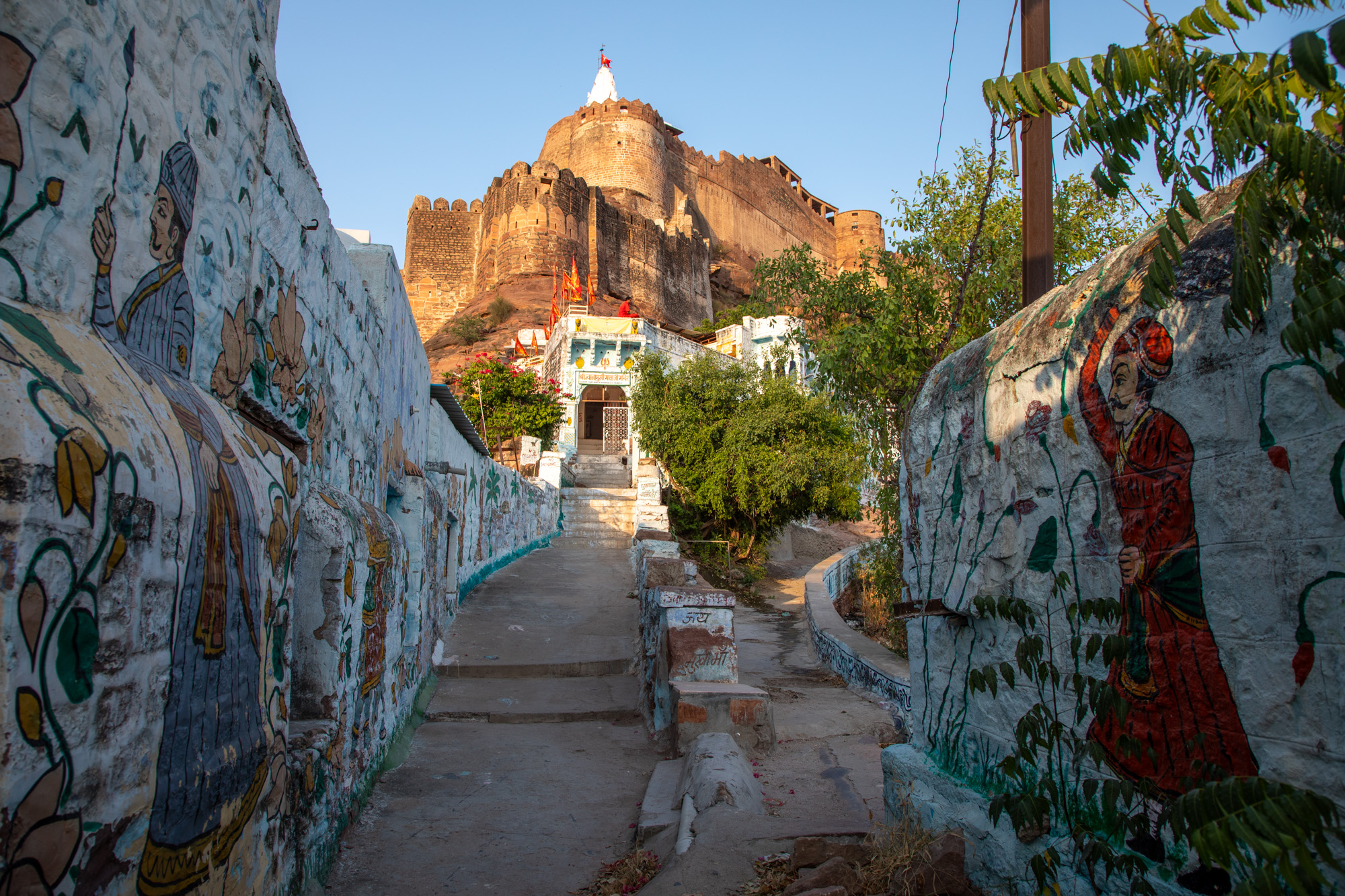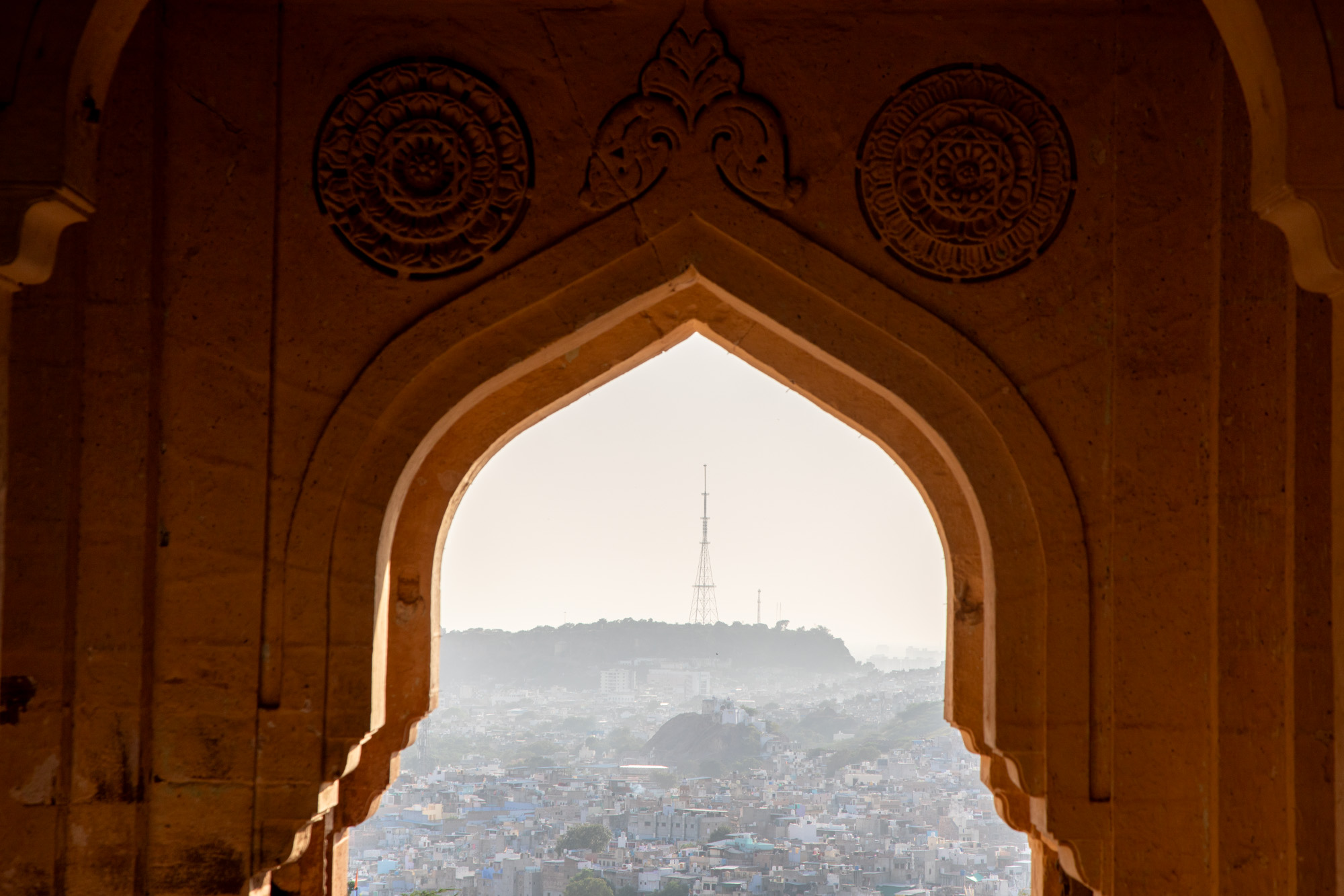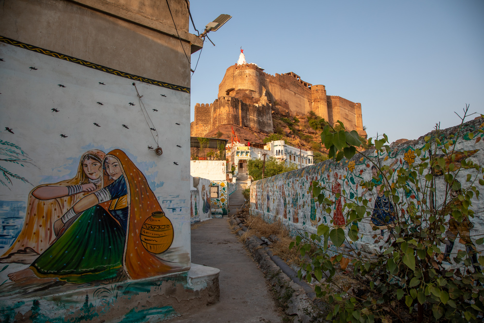 Arrivé sur ce piton rocheux, on est tout au bout de la muraille du fort qui domine la ville de Jodhpur et la ligne d'horizon depuis des siècles.