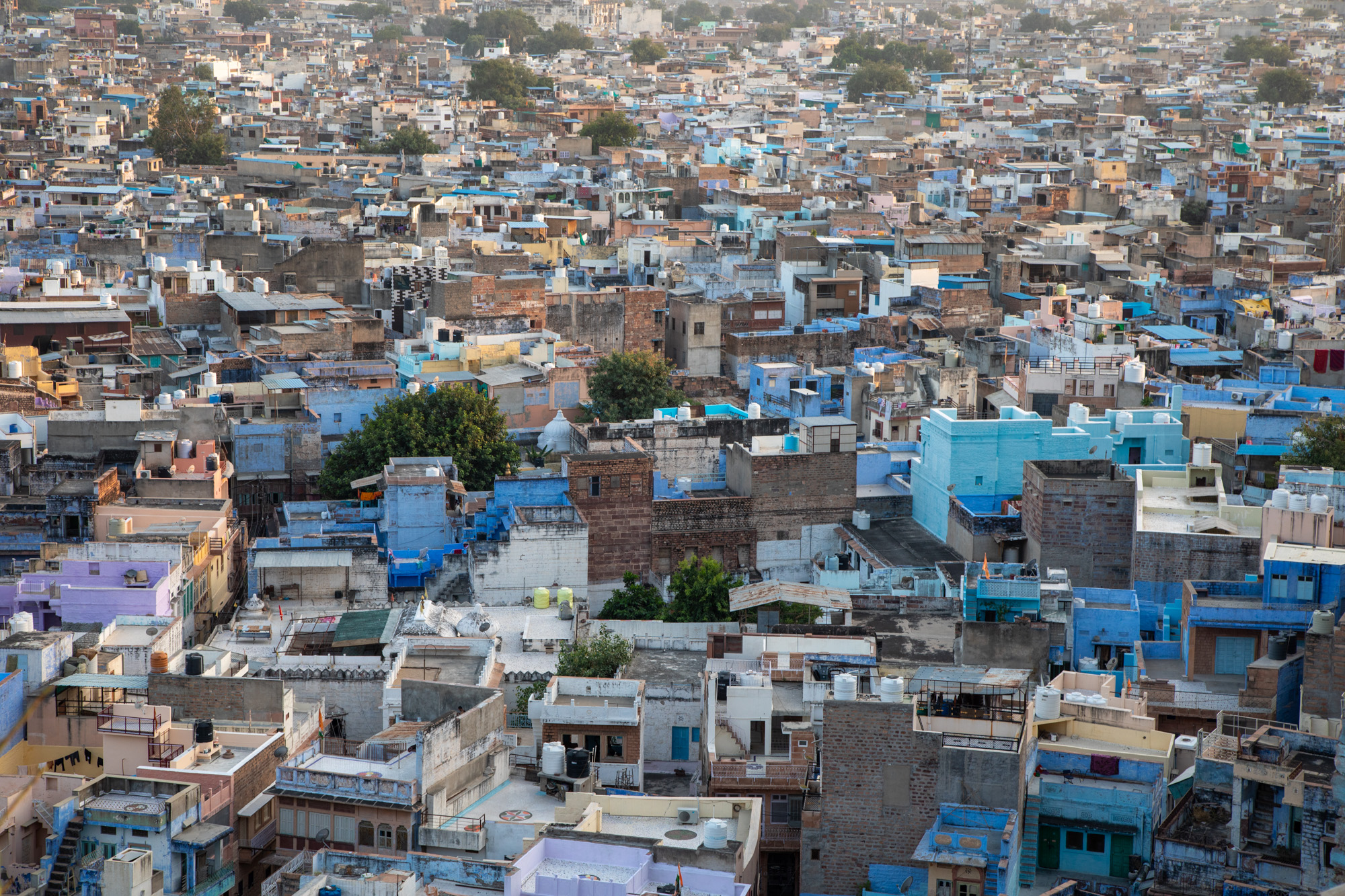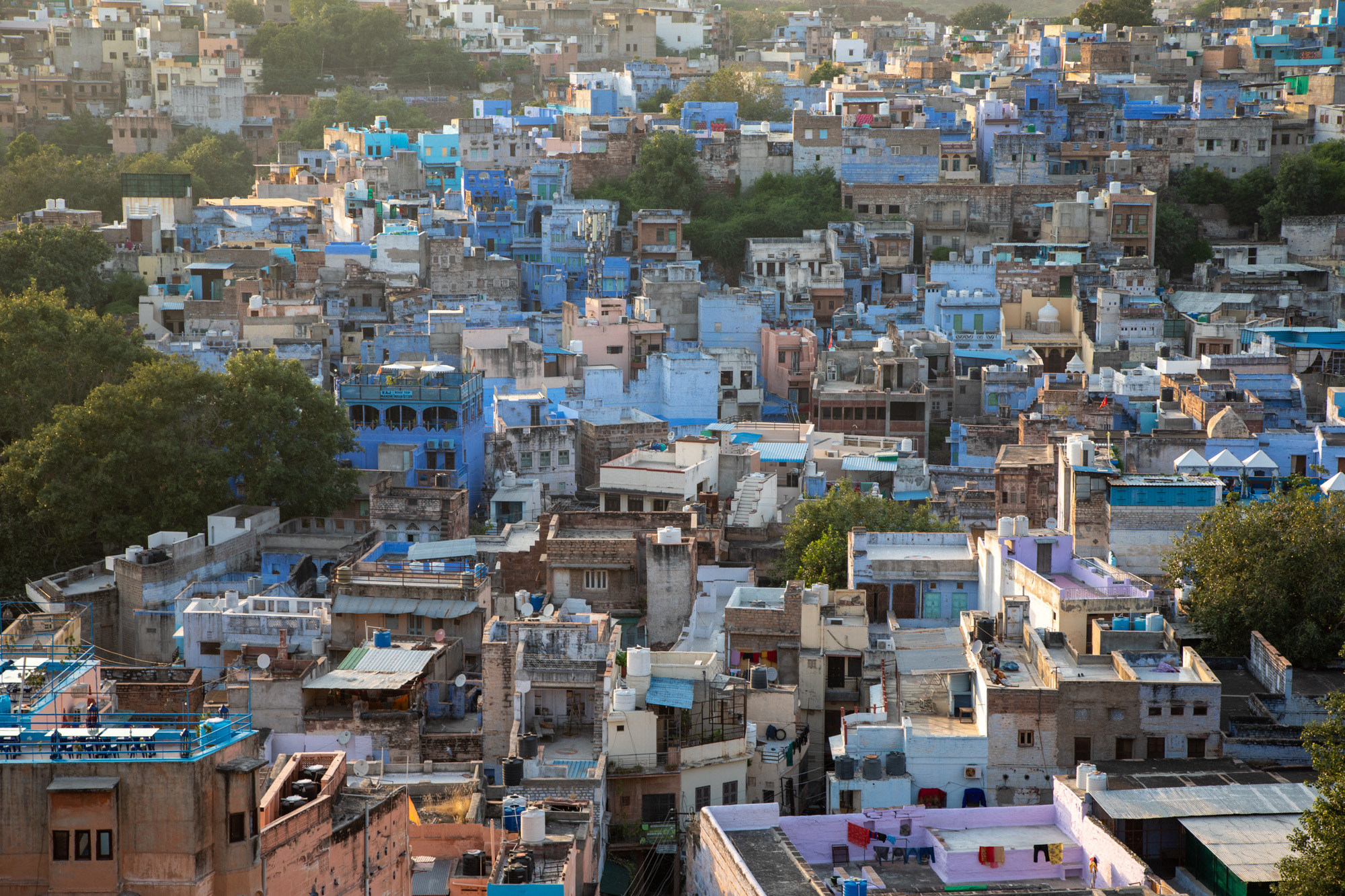 Jodhpur s’élève comme une forteresse miraculeuse au milieu du désert du Thar. A l’origine construite autour de l’imposant fort de Mehrangarh, la vieille ville est un dédale de ruelles avec ses bazars, temples et mosquées qui nous plonge dans un conte des mille et une nuit. Jodhpur est aussi connue pour son quartier aux maisons bleues que l’on peut admirer depuis les murailles du Mehrangarh au coucher du soleil. Jodhpur est une ville indienne pleine de charme et le centre ville a une vie bouillonnante qui mérite d’être sur le chemin des villes du circuit classique des voyages au Rajasthan.