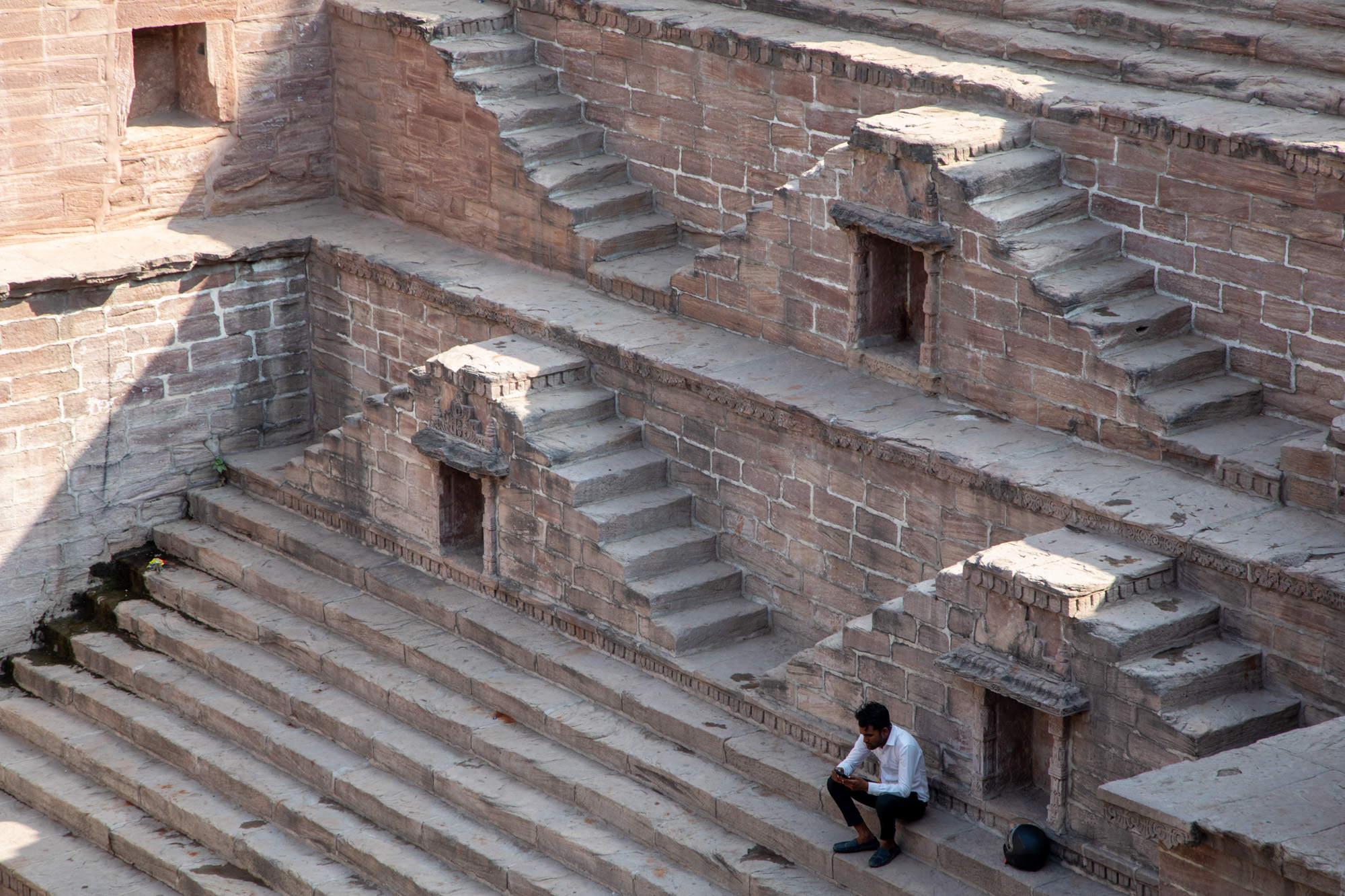 Après deux heures de marche avec les explications, notre guide décide de nous ramener dans le quartier commerçant que l’on avait visité la veille au soir. On est quand même déçu de la façon dont ce tour se passe car finalement sur une bonne partie de la demi journée, il est très insistant pour faire des visites de magasins. Comme on avait déjà fait le tour la veille au soir et que l’on avait déjà fait nos achats, le guide abandonne et on finira la visite par le stepwell de Jodhpur, Toorji Ka Jhalra Bavdi. Différent des autres stepwells que l’on a vu jusqu’à présent, il vaut vraiment le coup d’oeil.