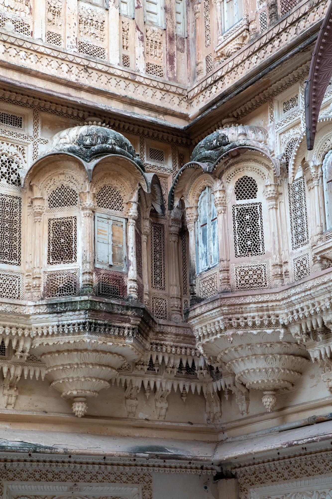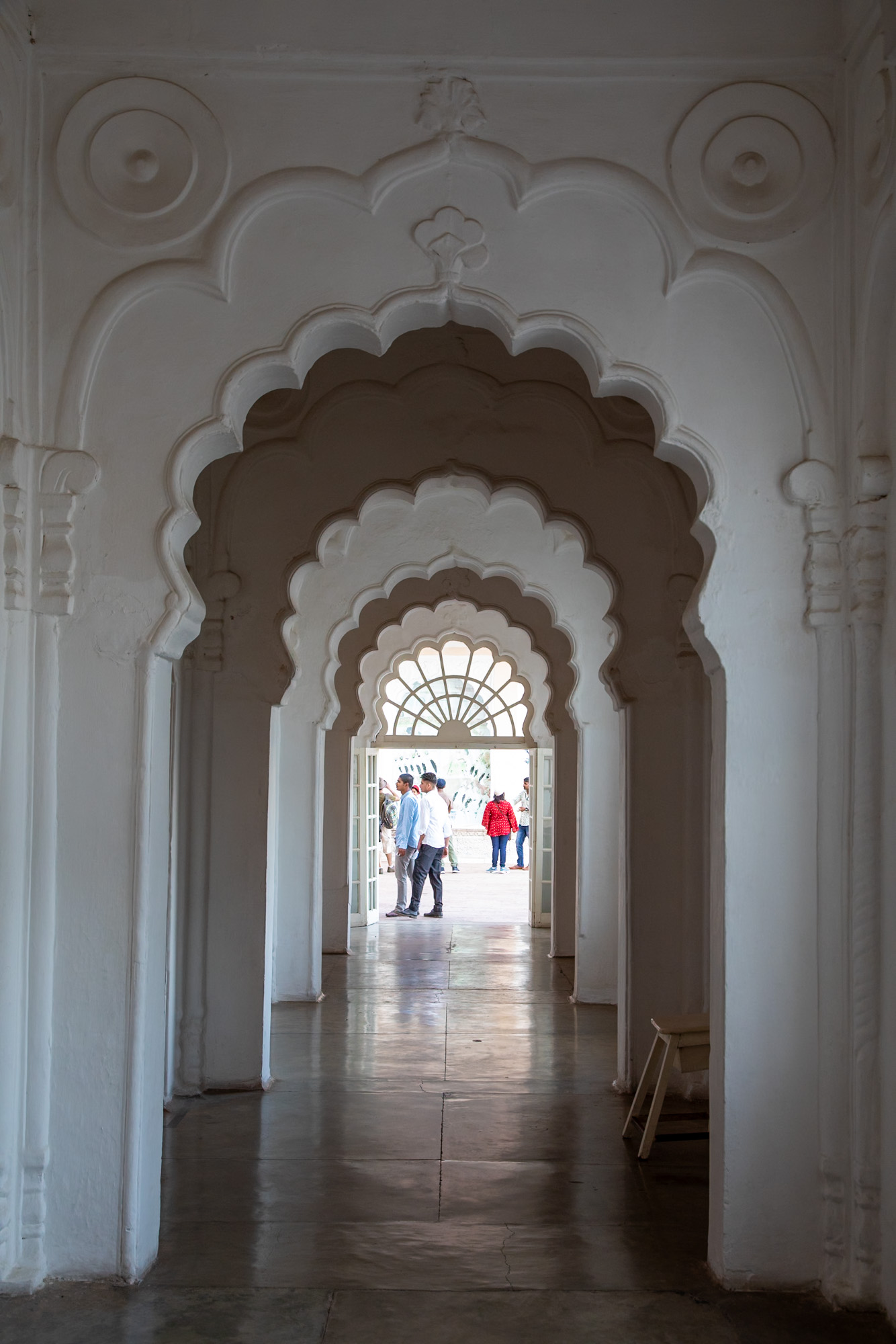 On déjeune dans un joli restaurant à proximité du stepwell. Un endroit que je ne peux que recommander. On y fait la rencontre de Vikram, un indien du Sud qui parle Français et qui a les même passions sportives que moi. On discute une partie de l’après midi en buvant un bon café à la table du restaurant. Après ce repas qui a bien trainé en longueur, et tant mieux car la température extérieure ne donne pas envie de sortir le bout de son nez, on doit encore être au dessus des 40°C, Vikram nous conseille de monter à la forteresse maintenant car c’est le meilleur moment de la visiter, avant la fermeture, il y a moins de monde et on aura un peu moins chaud, tout est relatif. On suit son conseil et on demande à un rickshaw de nous amener à l’entrée de la forteresse. En prenant un rickshaw, on s’épargne la montée sous le soleil de plomb et on garde des forces et de l’hydratation, pour la visite du palais.