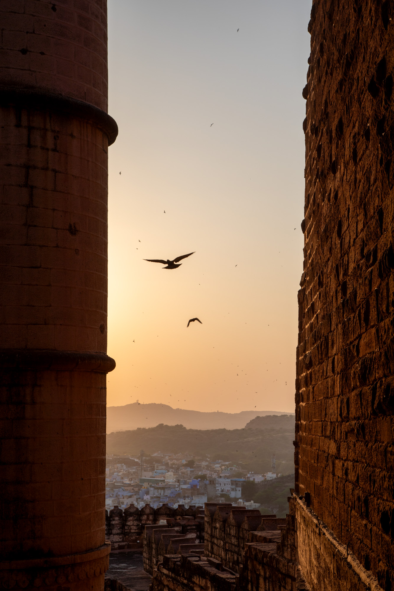 Le fort est encore ouvert un peu plus d’une heure, le soleil rasant rougit les pierres de Mehrangarh sublimant son architecture. Effectivement, l’heure est parfaire pour la visite.