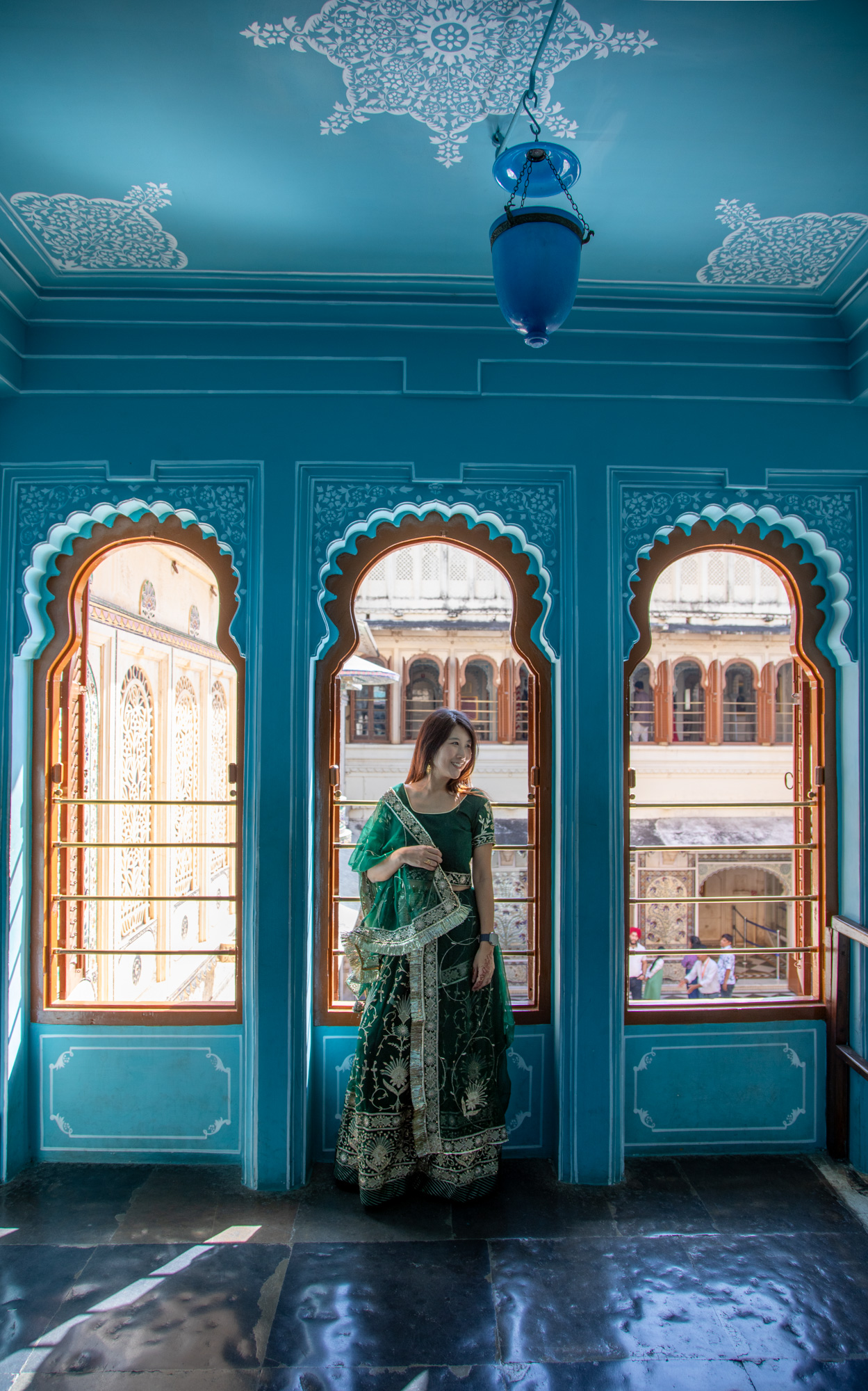 Les pièces du palais sont somptueuses, avec des thèmes et des couleurs différentes, c’est tellement photogénique que l'on s'est fait une belle collection de photos dans ce décor princesse indienne...
