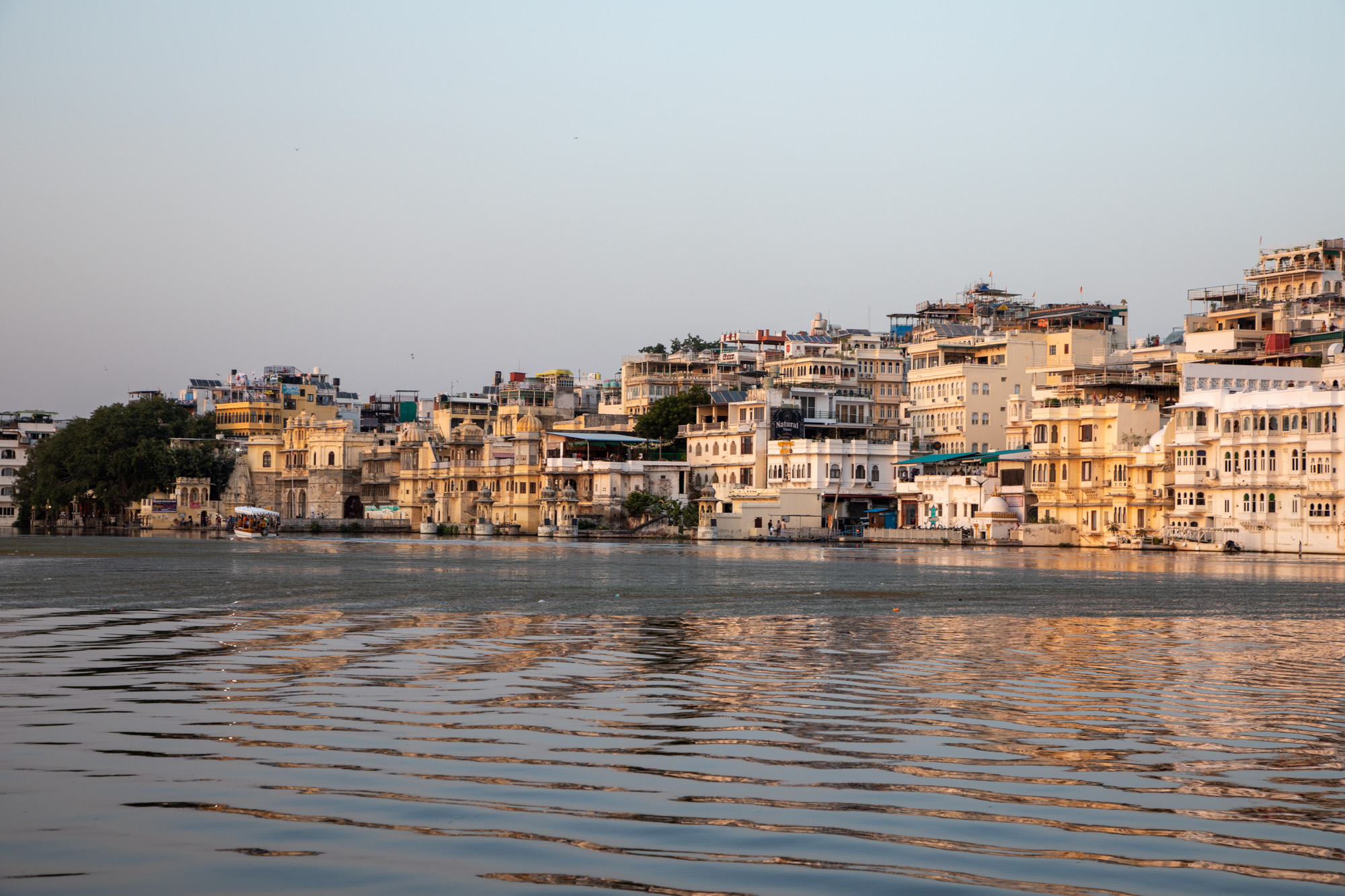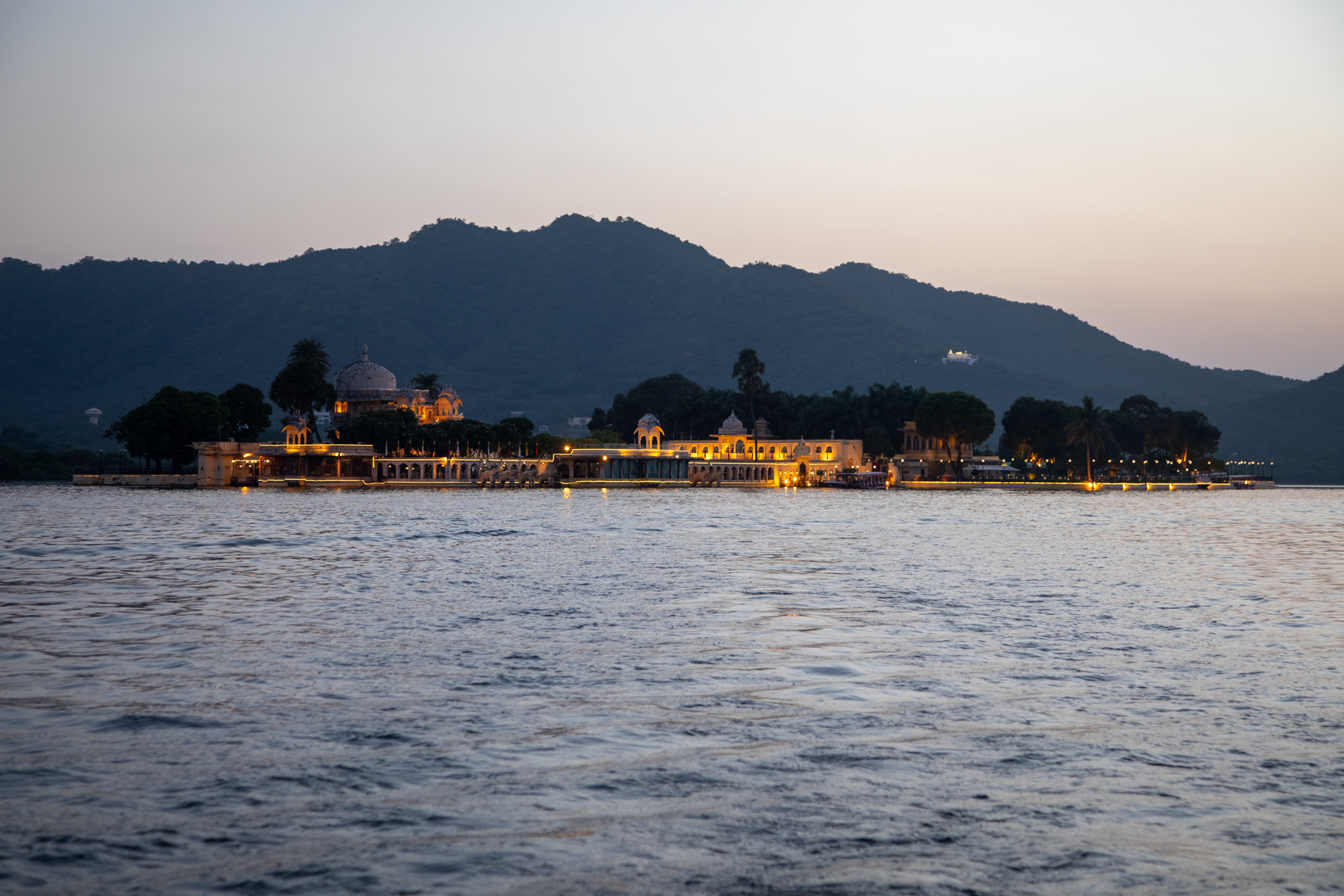 Après la visite du palais, on descend vers le lac et on monte dans un bateau pour faire une balade au coucher du soleil pour avoir une belle lumière chaude. A cette heure-ci, Udaipur révèle un visage tellement romantique.