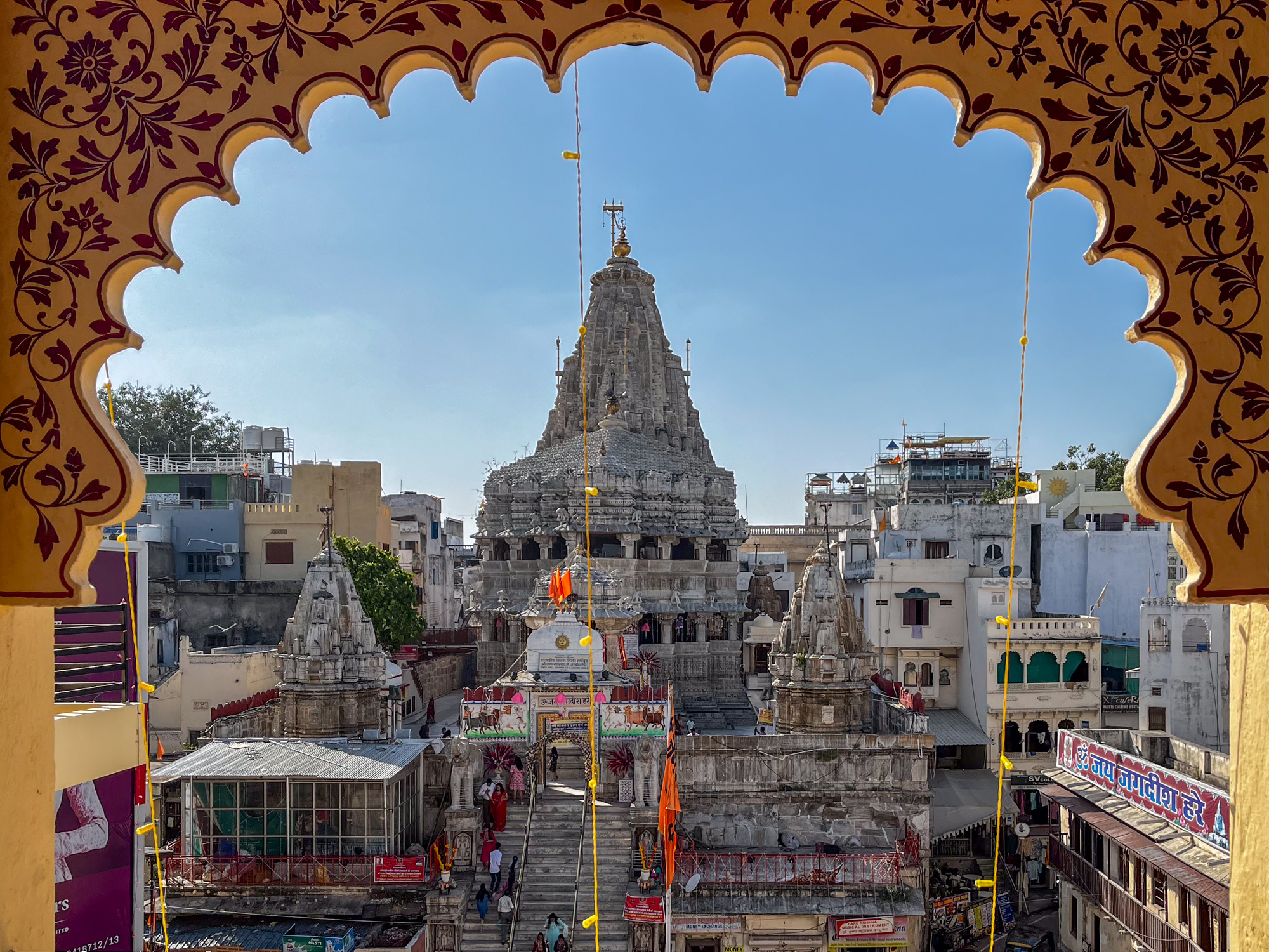 Pour le déjeuner, on s’installe dans un restaurant qui a une vue parfaite sur le temple de Jagdish. Amusant, on entend parler français à la table d’à côté. On engage la discussion et on fait la rencontre d’un adorable duo de voyageurs qui viennent de Paris et que l’on aura même la chance de revoir en France quelques mois plus tard. L’Inde a décidément cette capacité de rapprocher les gens, les rencontres semblent si faciles et si fluides, c’est vraiment incroyable et donne une saveur tellement agréable à ce séjour.