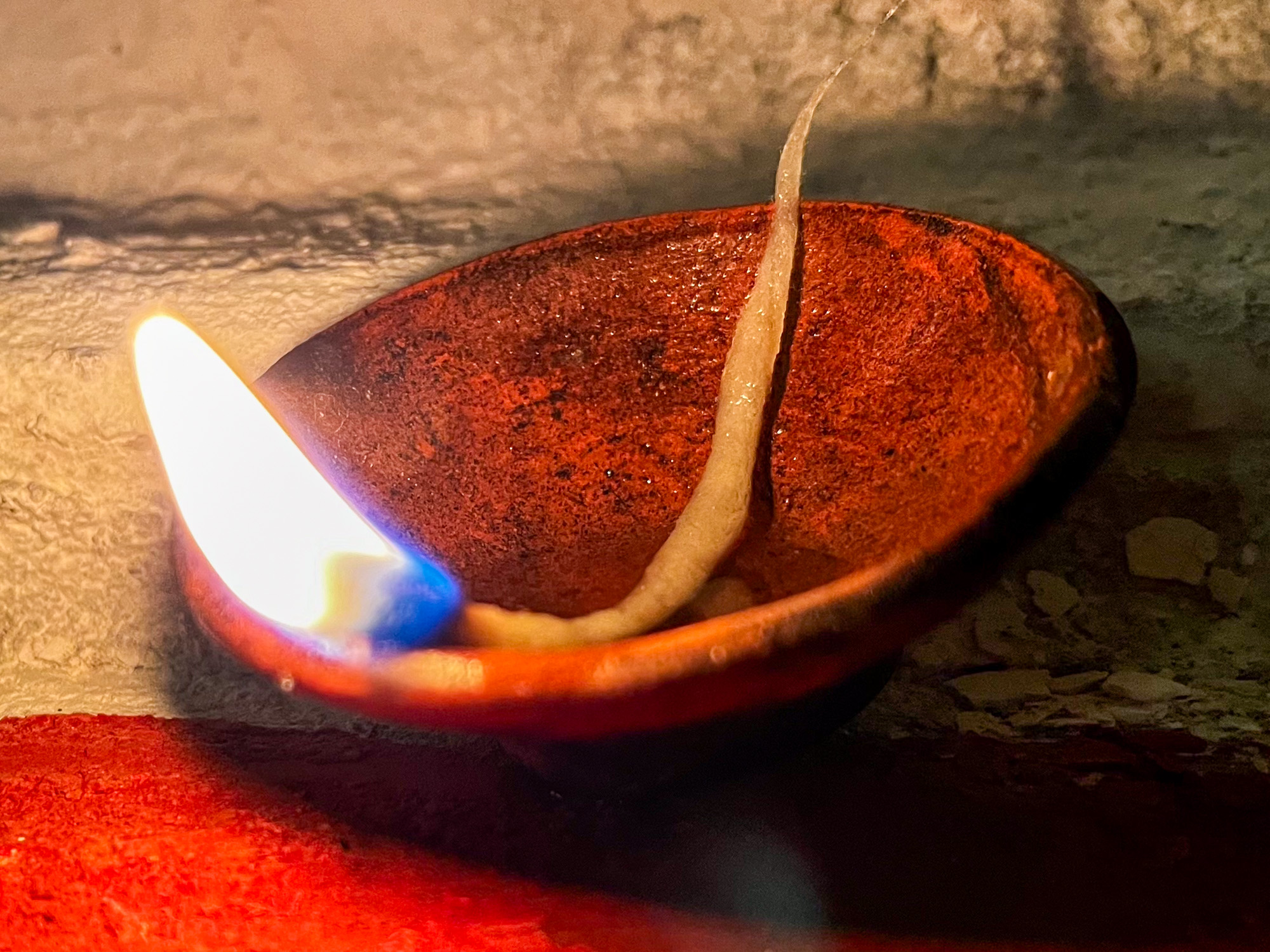 Les rues d’Udaipur sont encore plus belles de nuit avec les lumières de Diwali. On se sent privilégié d’être en Inde pendant la fête. Il y a une ambiance incroyable, les gens ont sorti leurs beaux habits, tout le monde se souhaite un joyeux Diwali, il y a des bougies devant les portes, mais aussi de superbes dessins faits à la craie ou avec des fleurs fraiches.