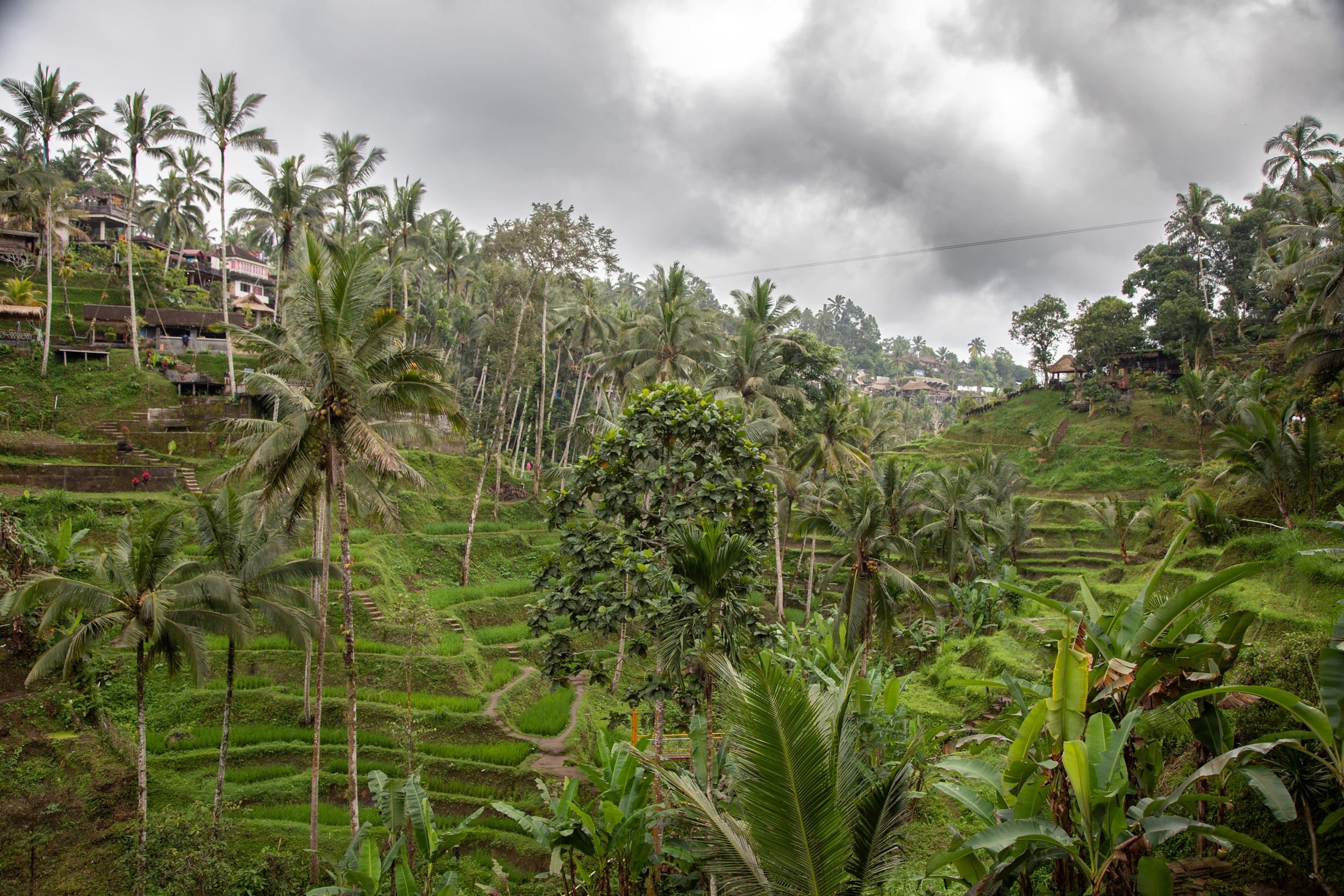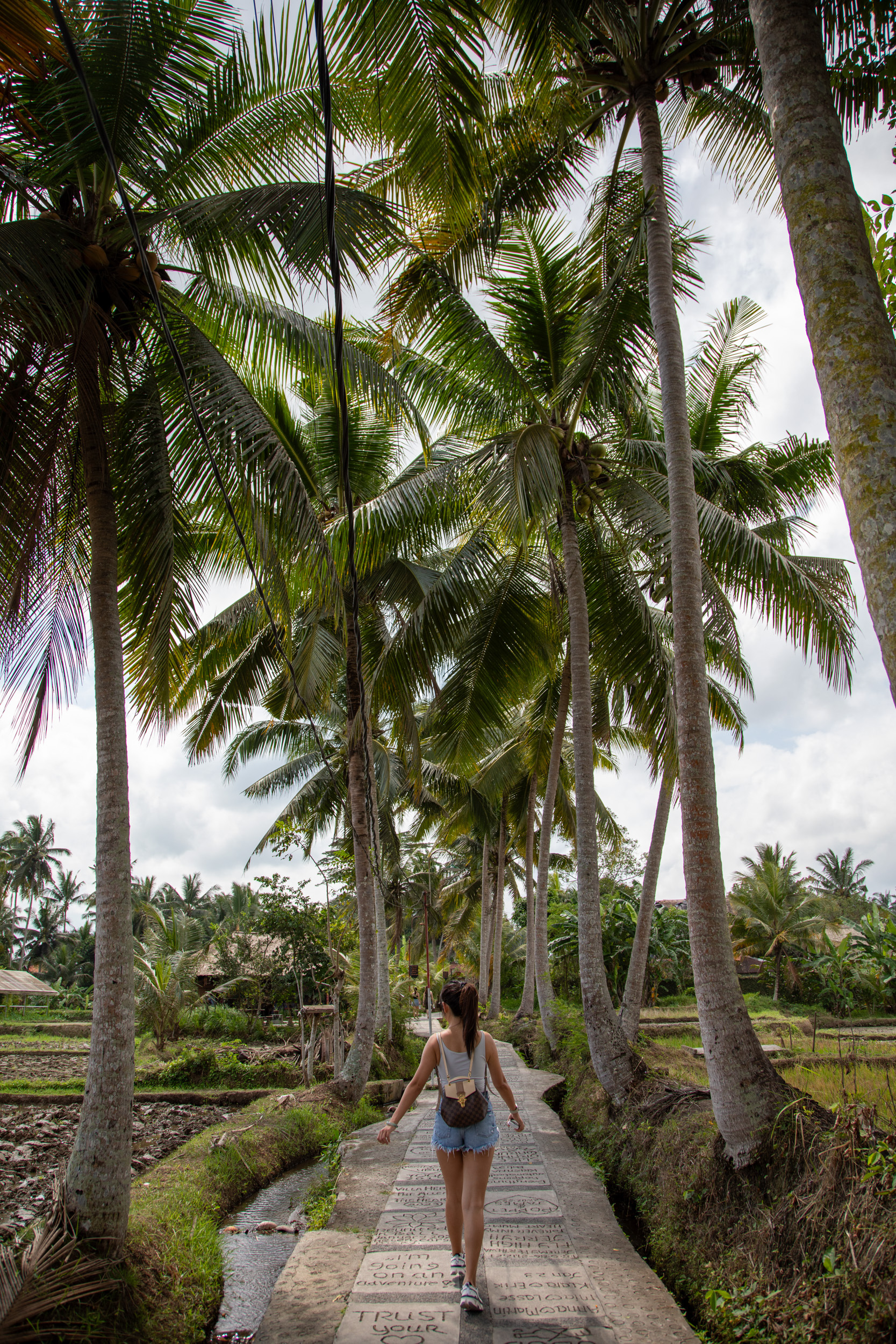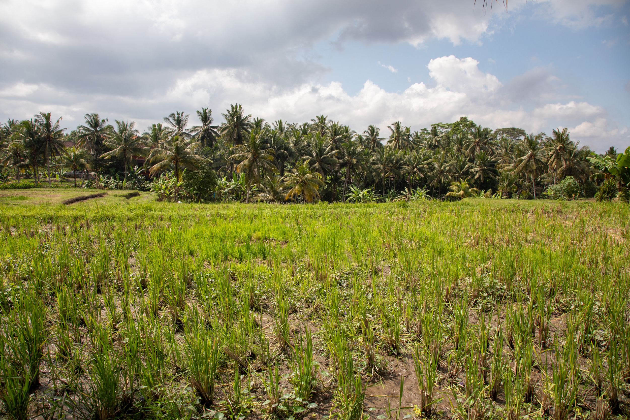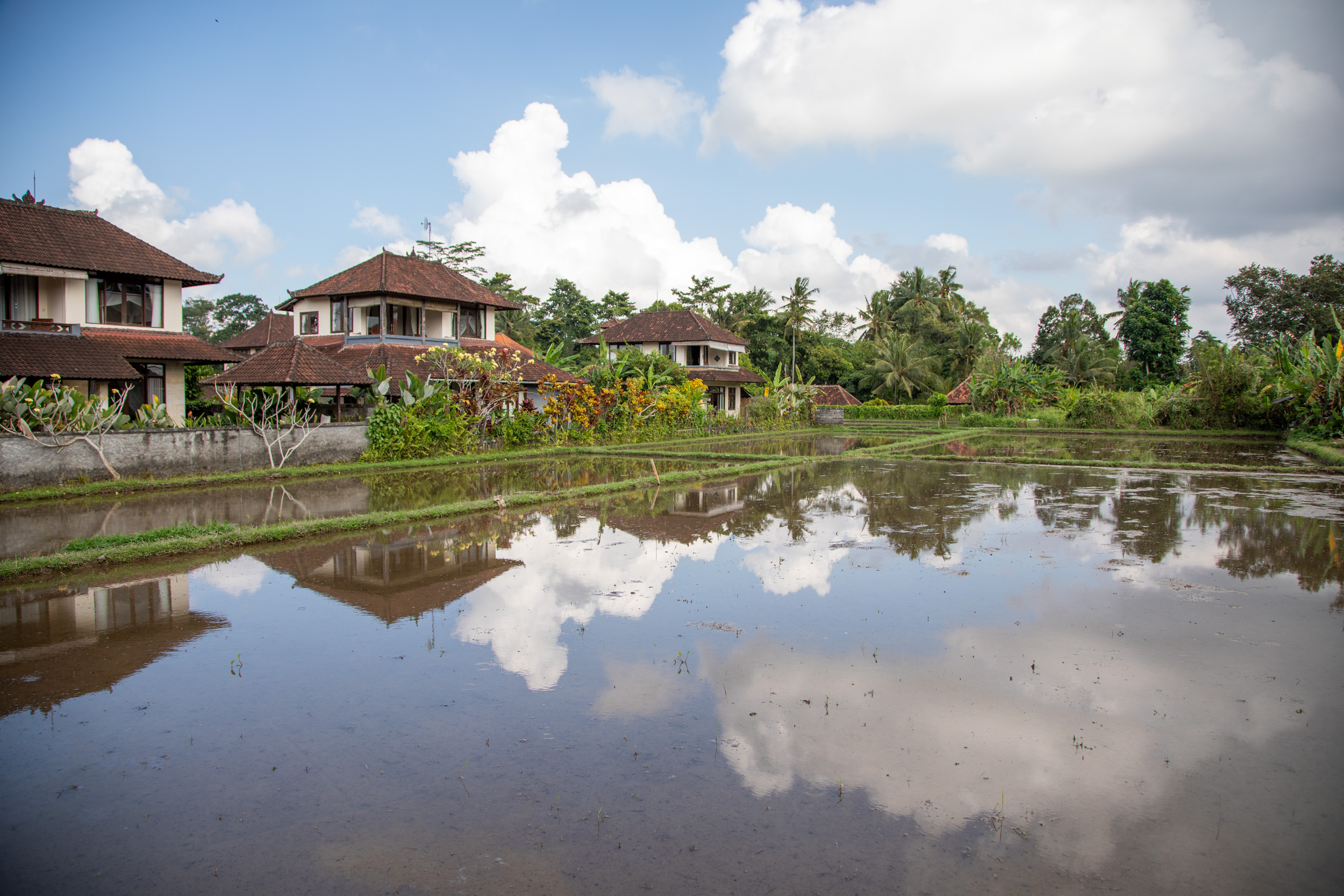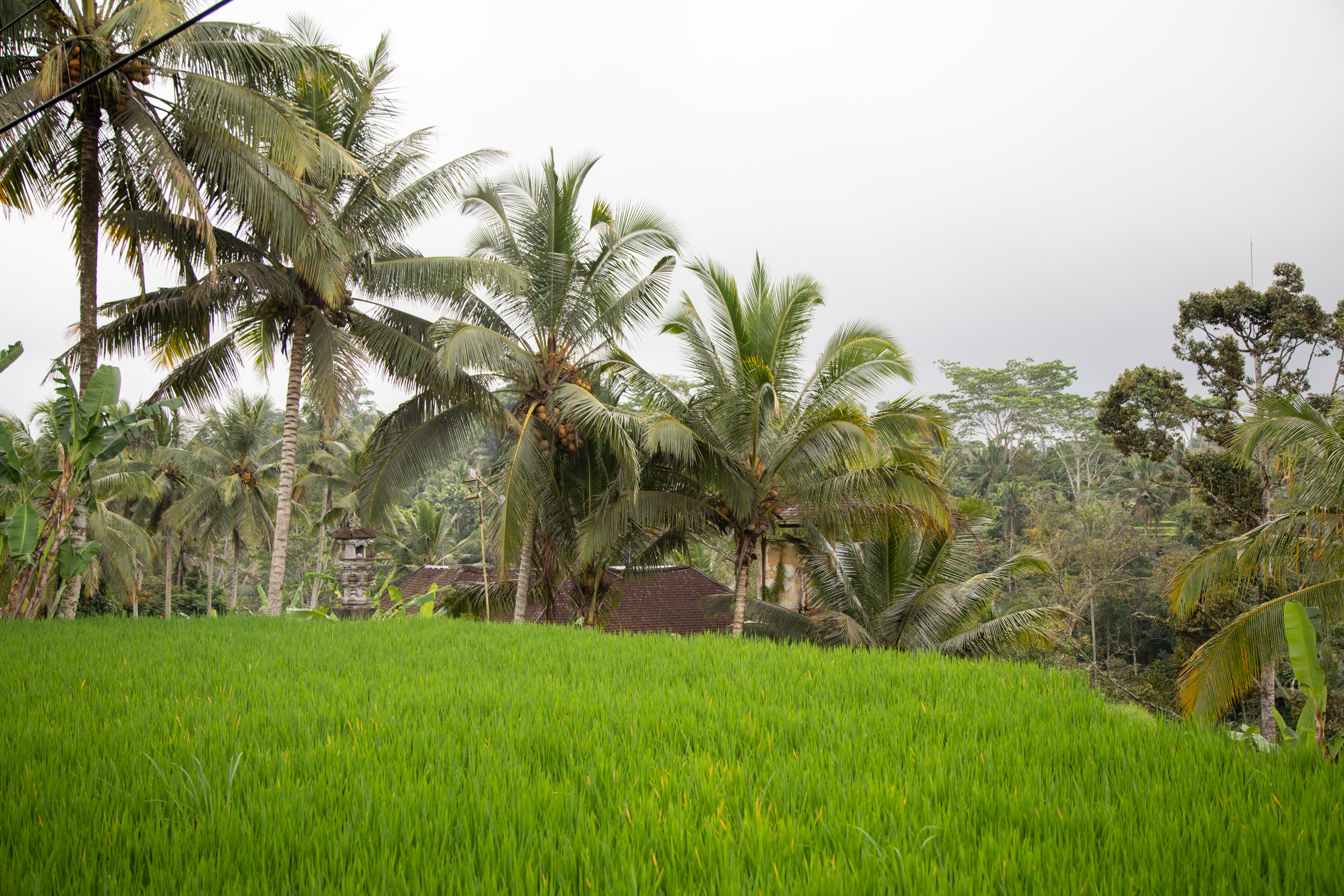 La première journée nous marchons depuis notre hébergement jusqu’au centre ville d’Ubud en passant par la campagne.