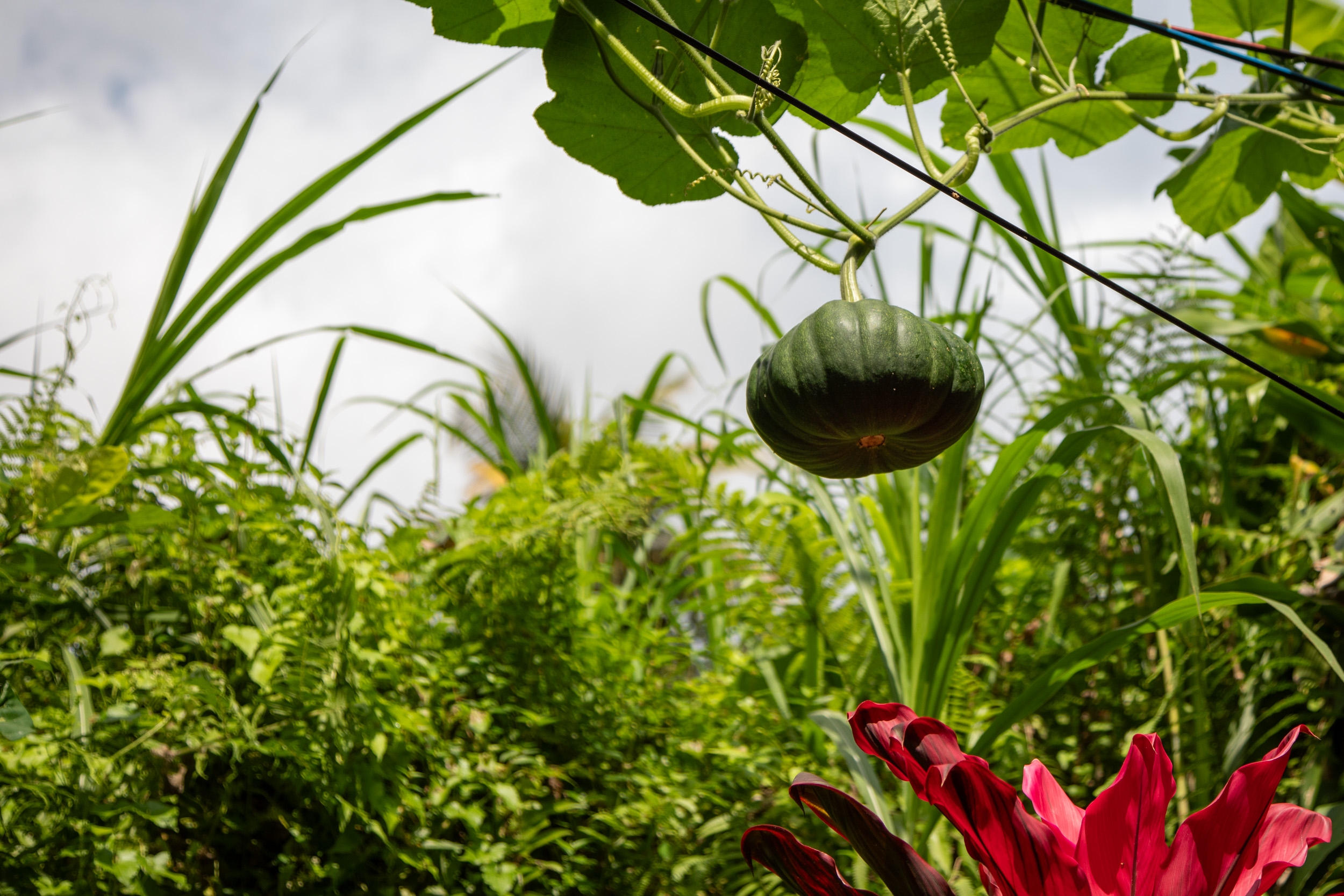 Sur le bord des chemins, on voit la nature qui envahit les cables, il y a même des légumes qui poussent !!
