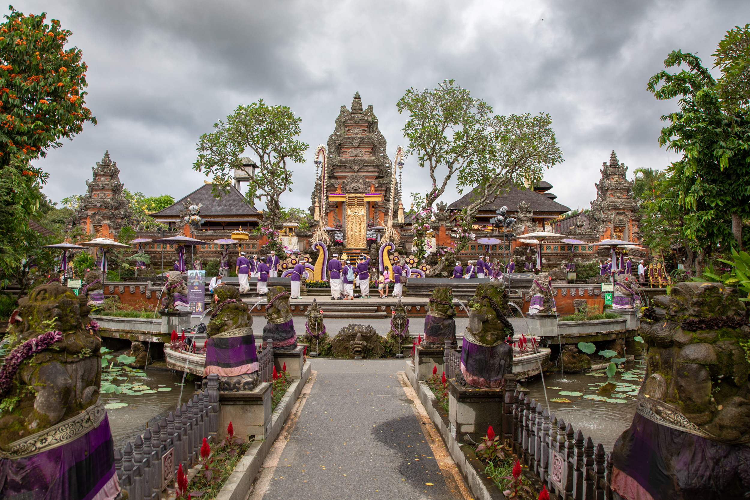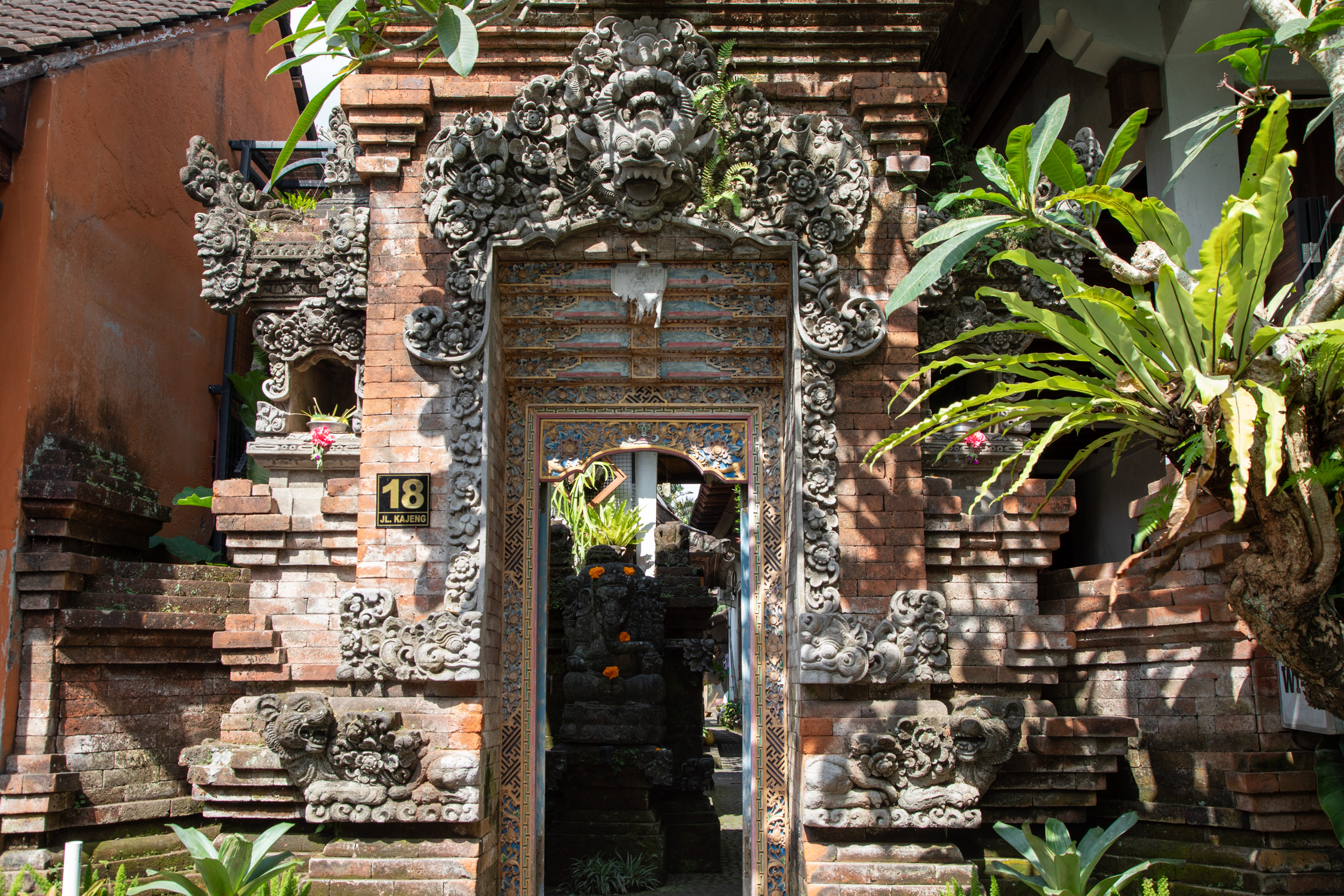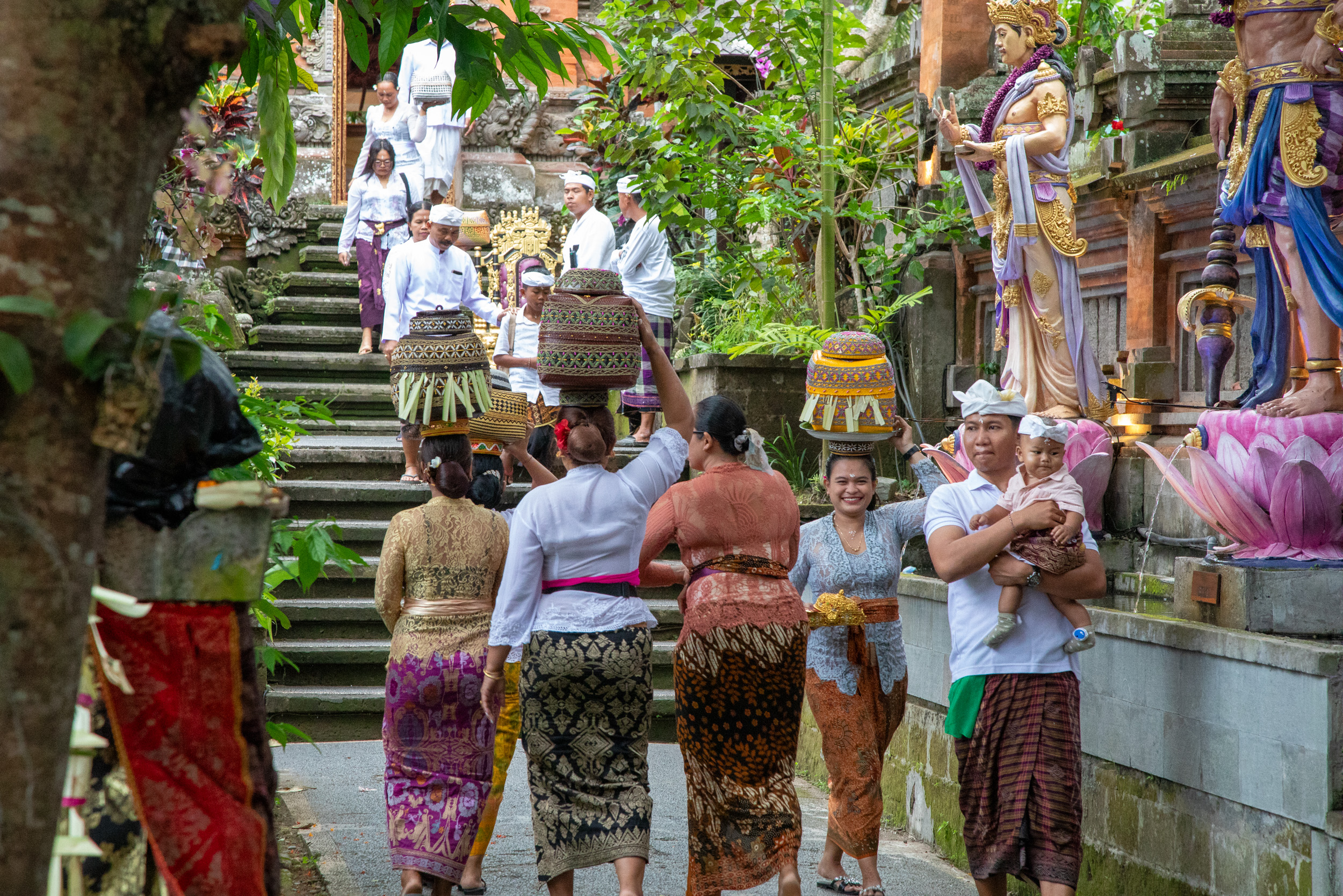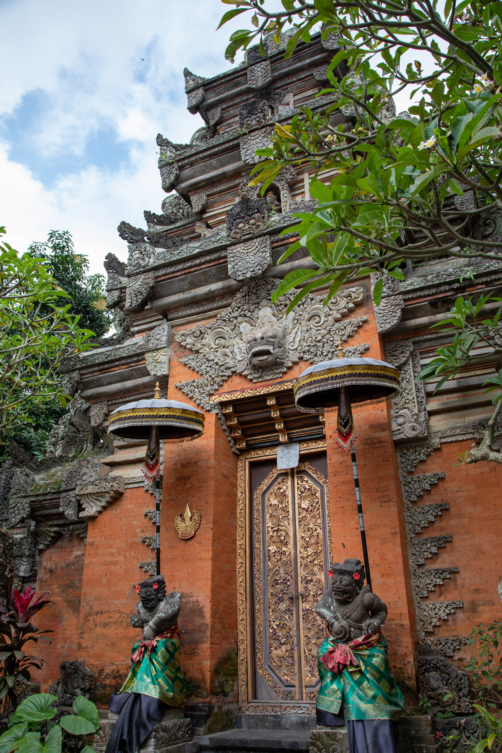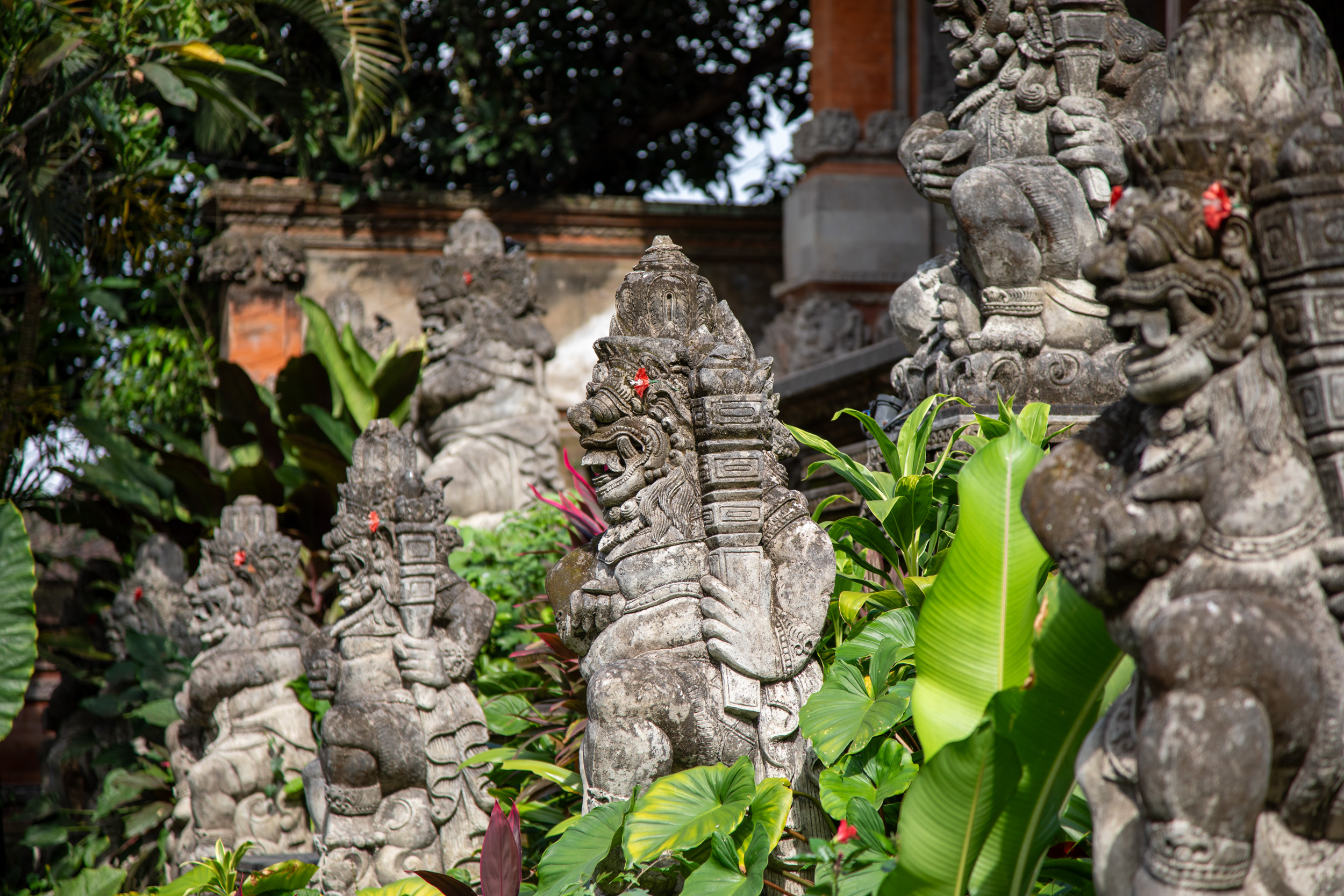 On marche dans les ruelles de la ville et on comprend pourquoi elle est nommée la capitale spirituelle de Bali. Il y a des temples dans chaque maison, ils sont en brique pour la plupart, très décorés avec des statues, des détails surprenants de richesse.