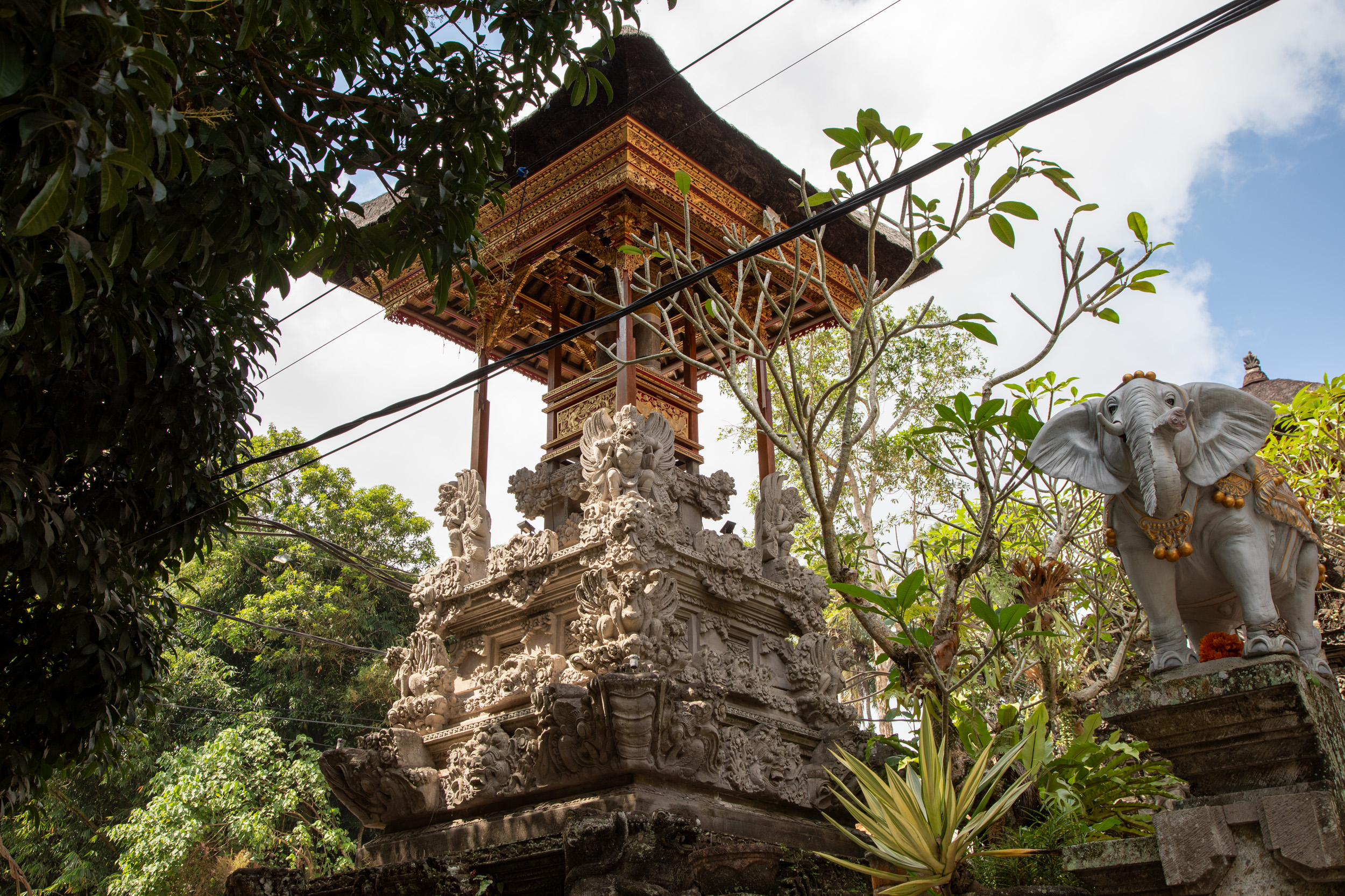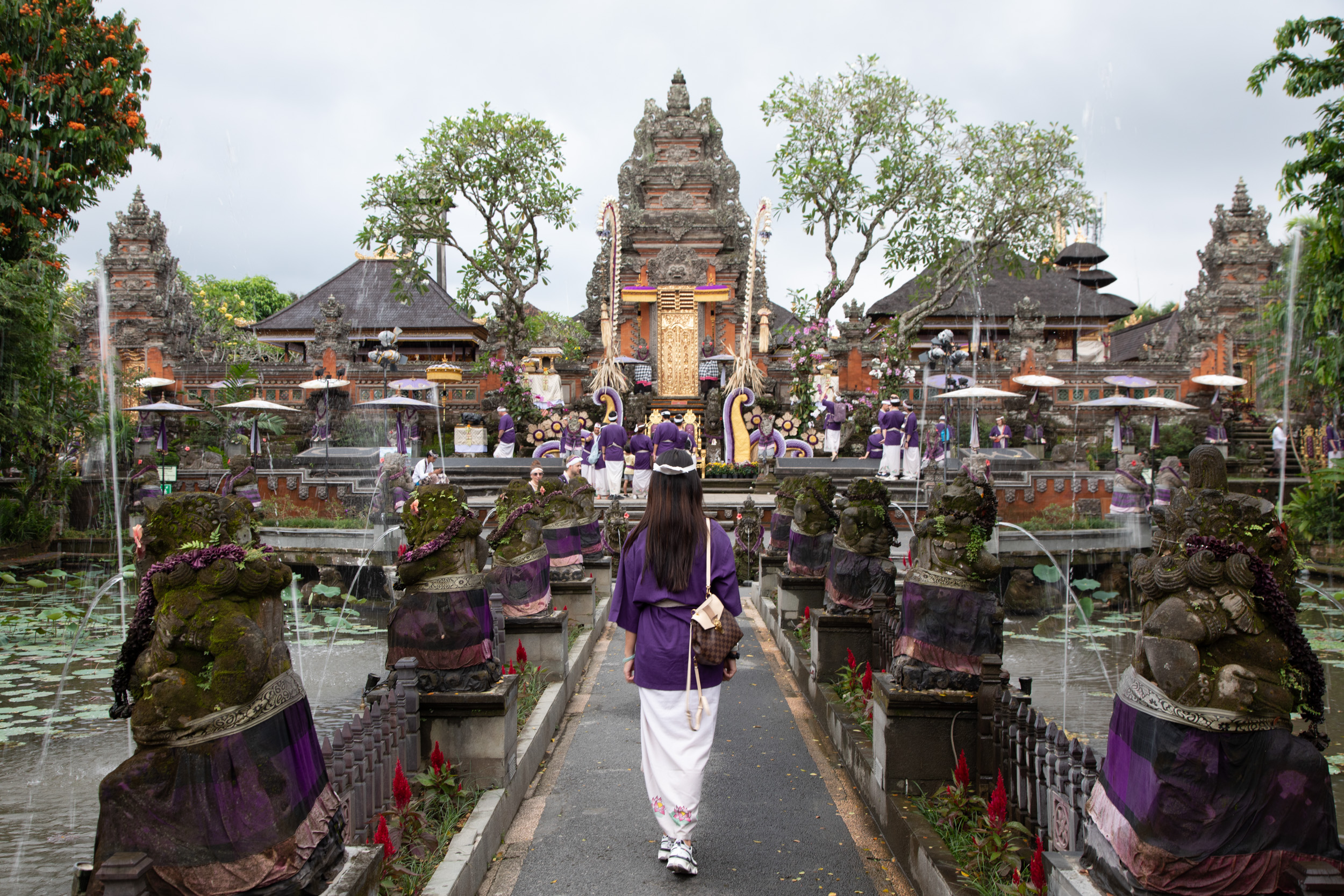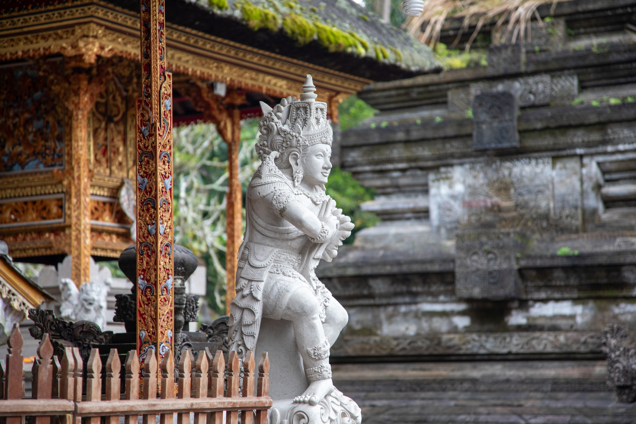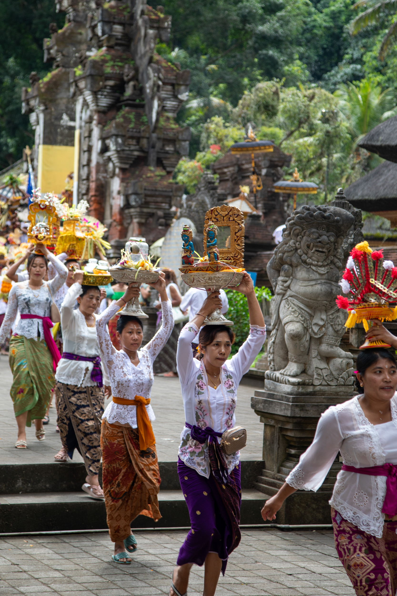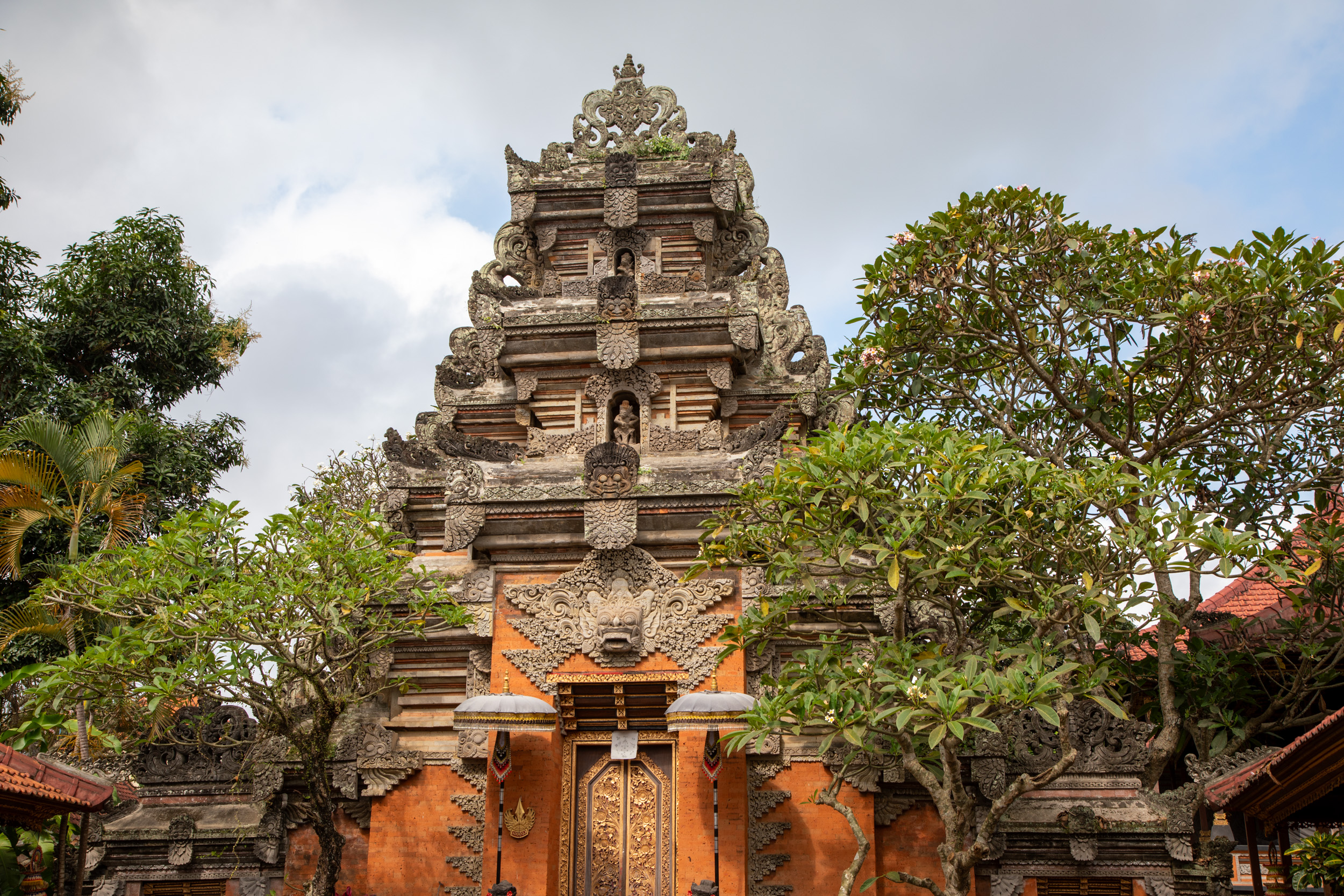 On marche dans les ruelles de la ville et on comprend pourquoi elle est nommée la capitale spirituelle de Bali. Il y a des temples dans chaque maison, ils sont en brique pour la plupart, très décorés avec des statues, des détails surprenants de richesse.
