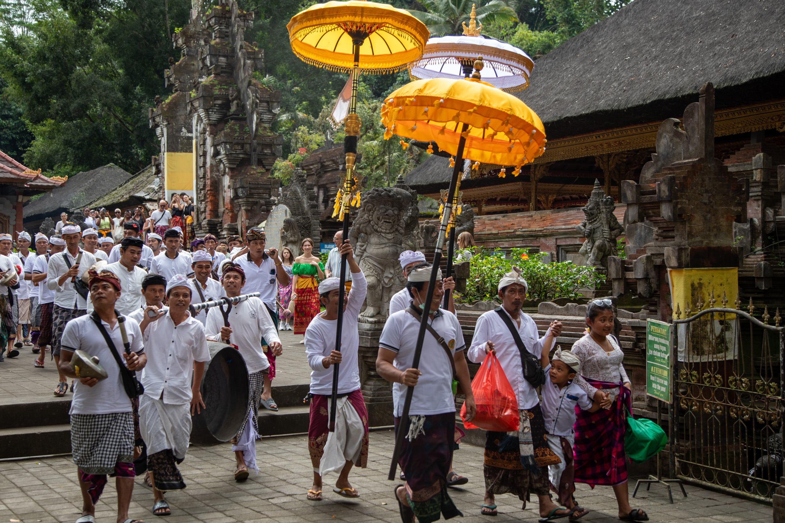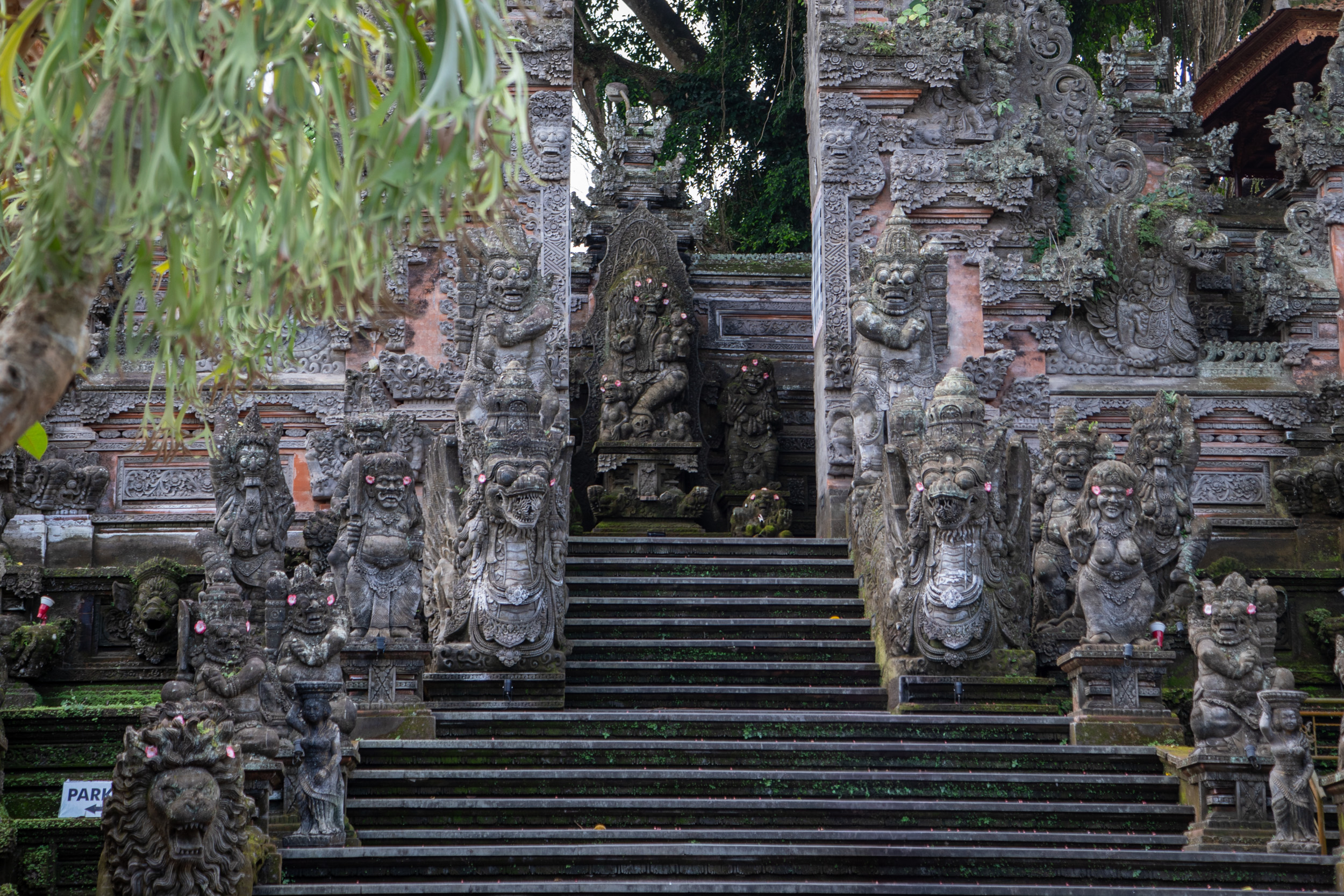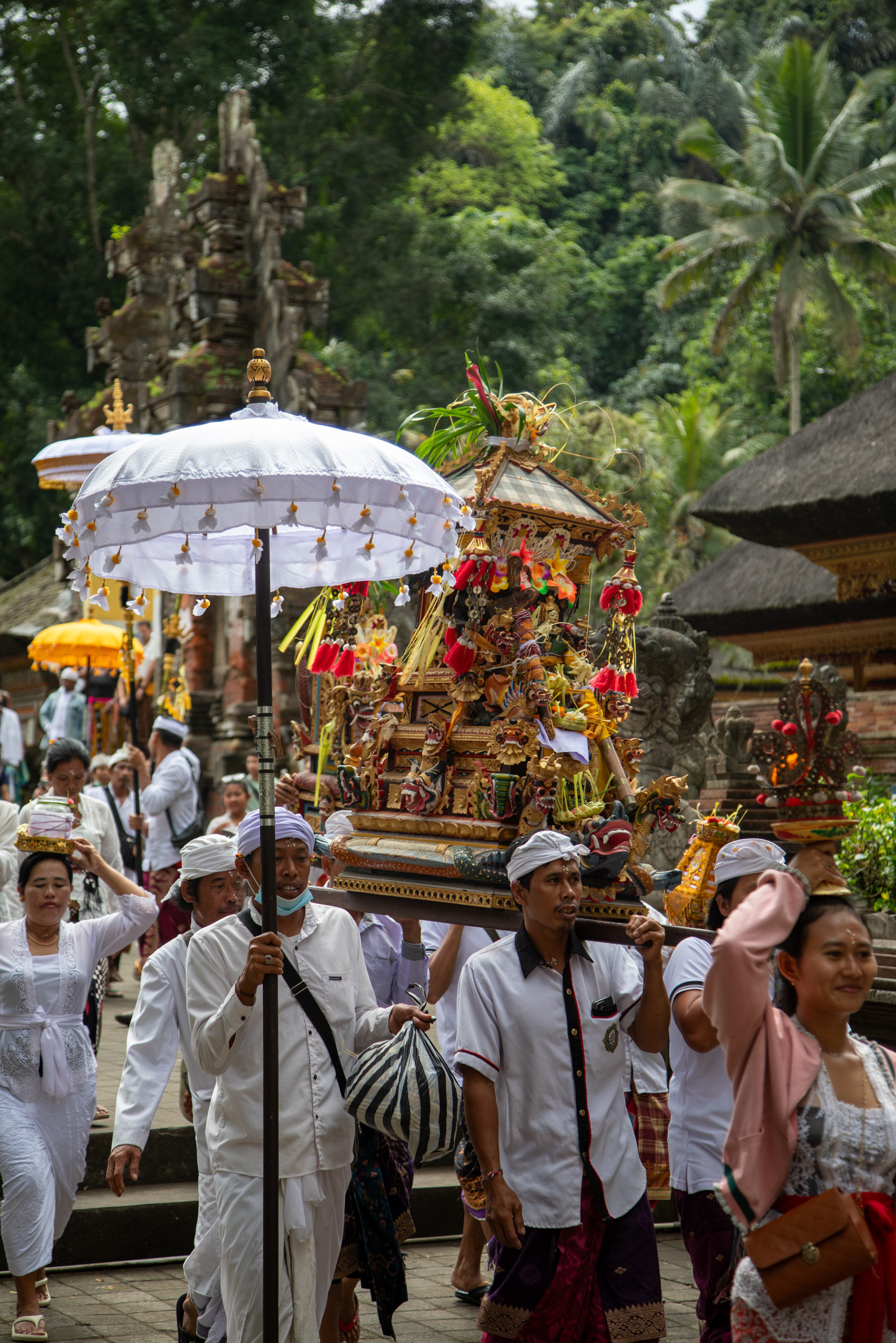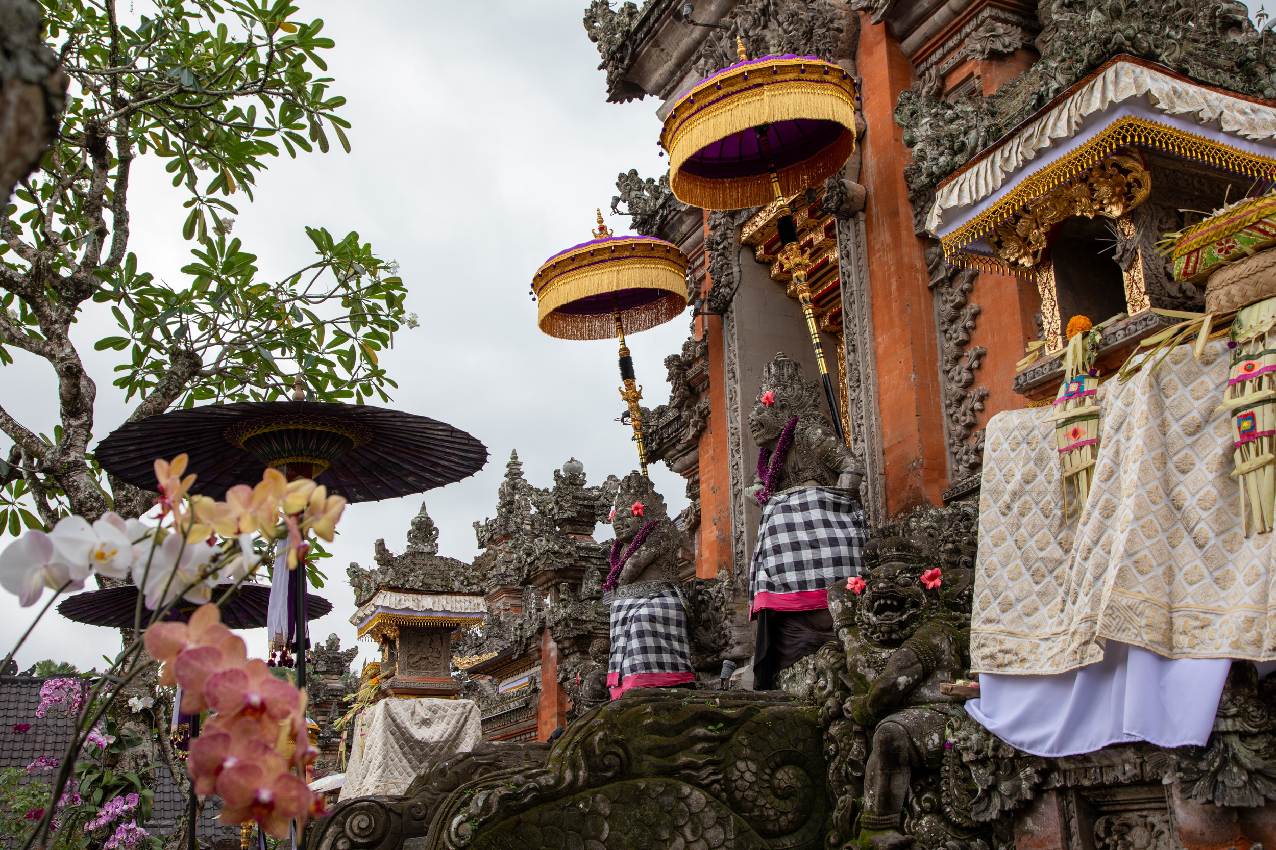 On marche dans les ruelles de la ville et on comprend pourquoi elle est nommée la capitale spirituelle de Bali. Il y a des temples dans chaque maison, ils sont en brique pour la plupart, très décorés avec des statues, des détails surprenants de richesse.