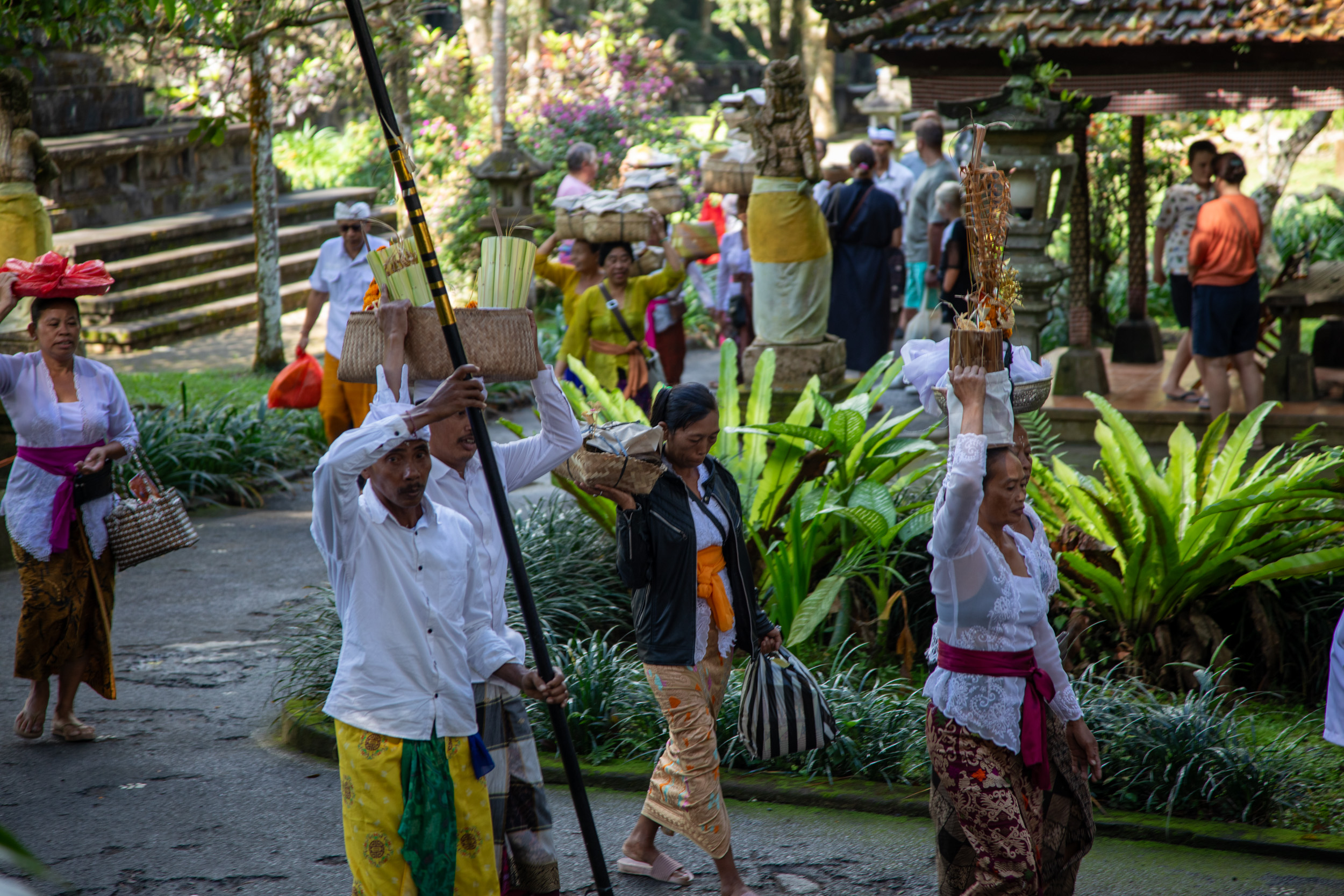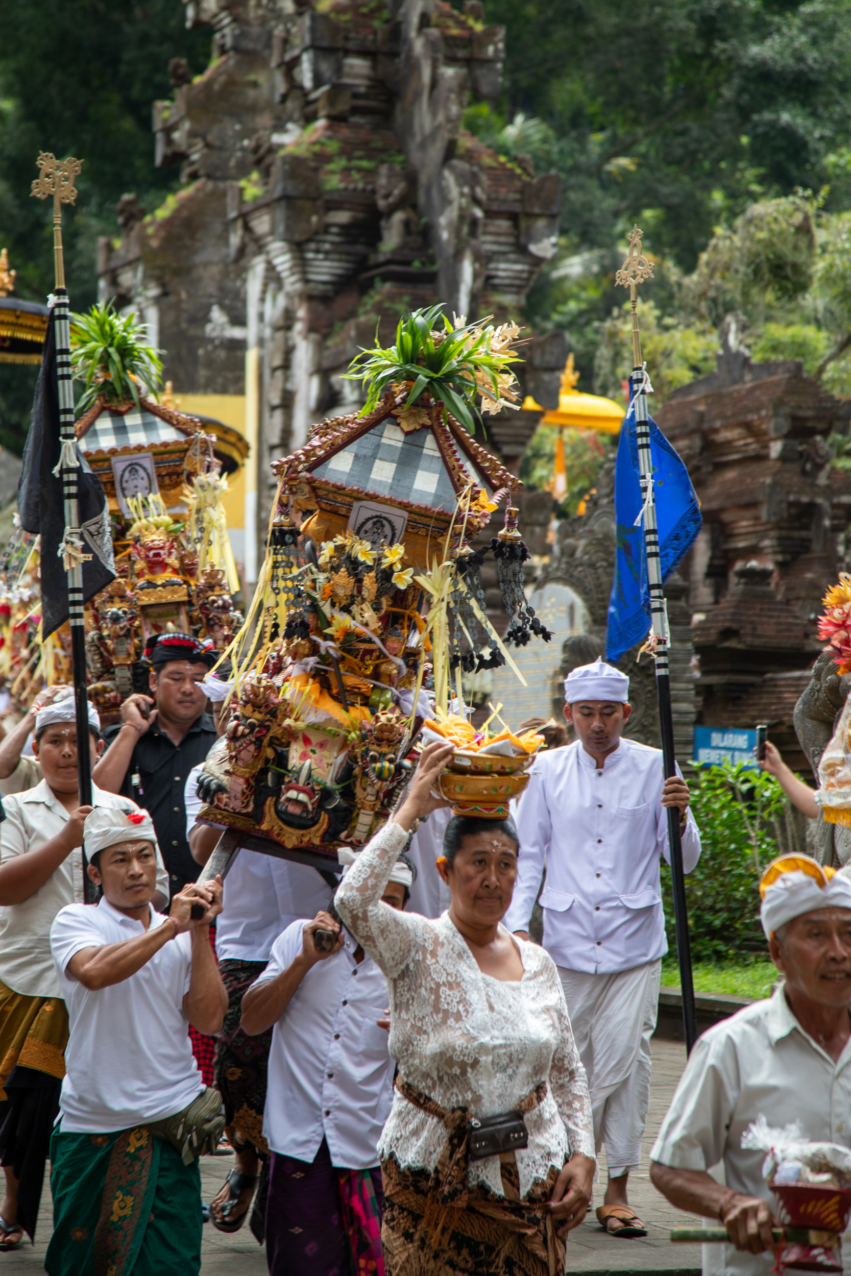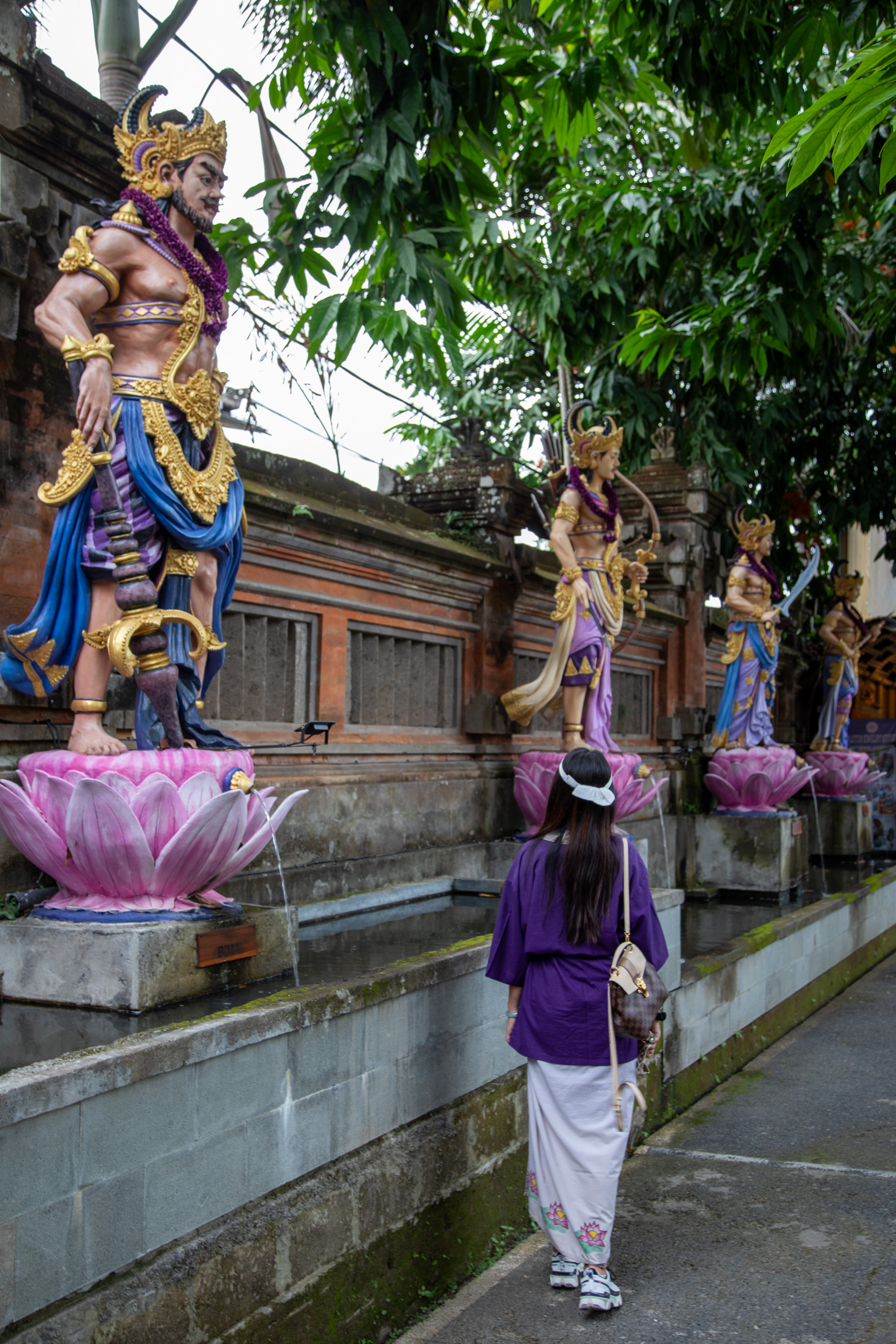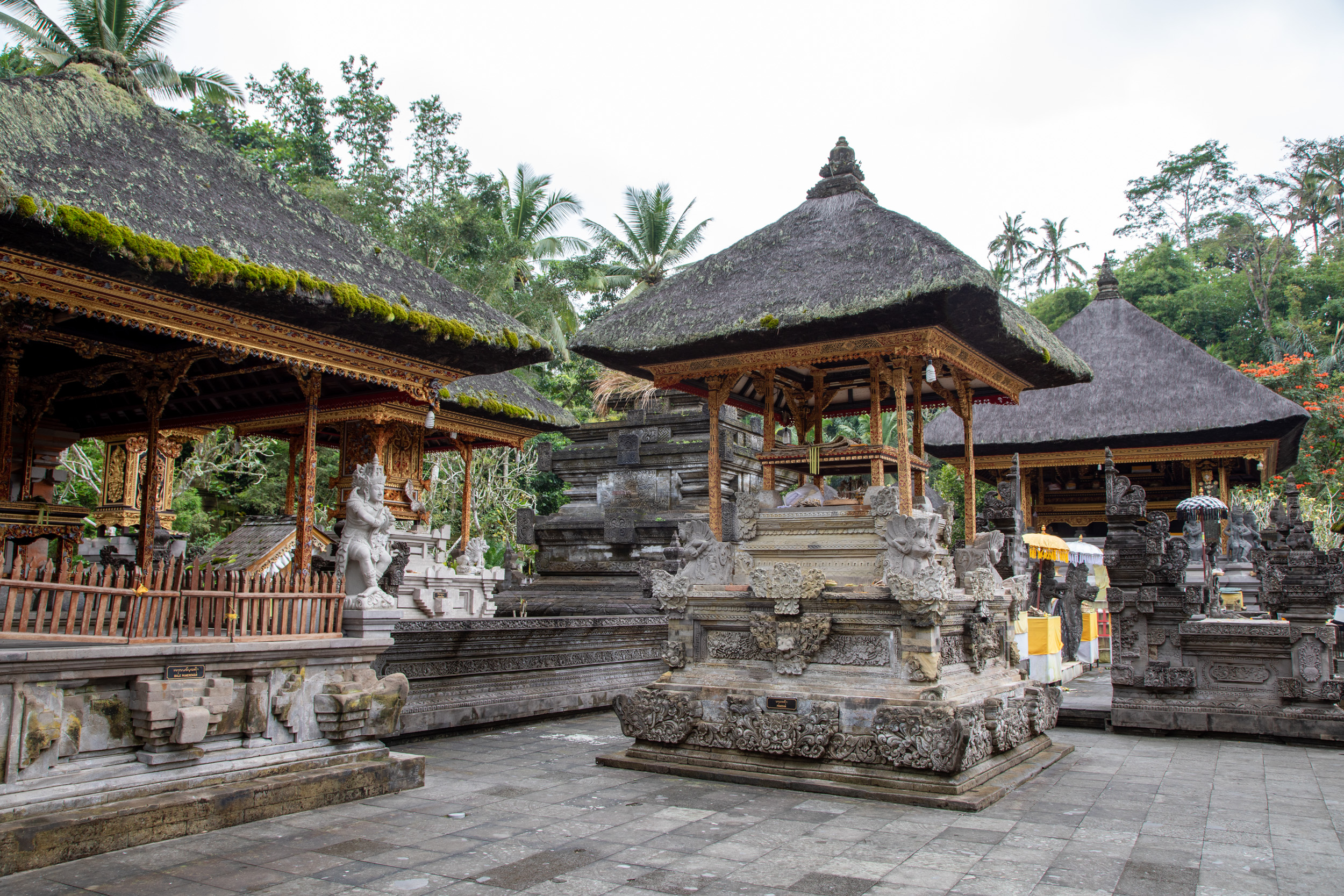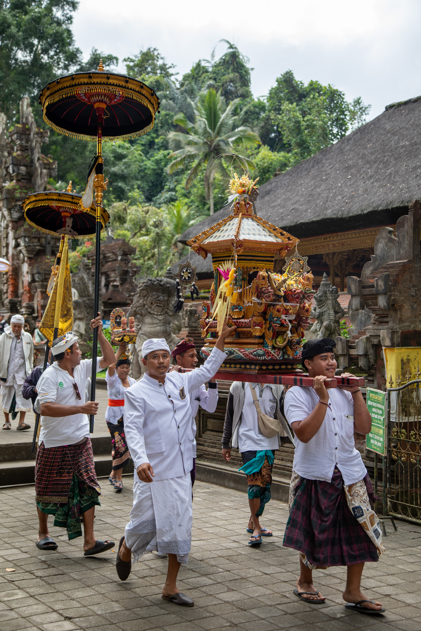 On marche dans les ruelles de la ville et on comprend pourquoi elle est nommée la capitale spirituelle de Bali. Il y a des temples dans chaque maison, ils sont en brique pour la plupart, très décorés avec des statues, des détails surprenants de richesse.