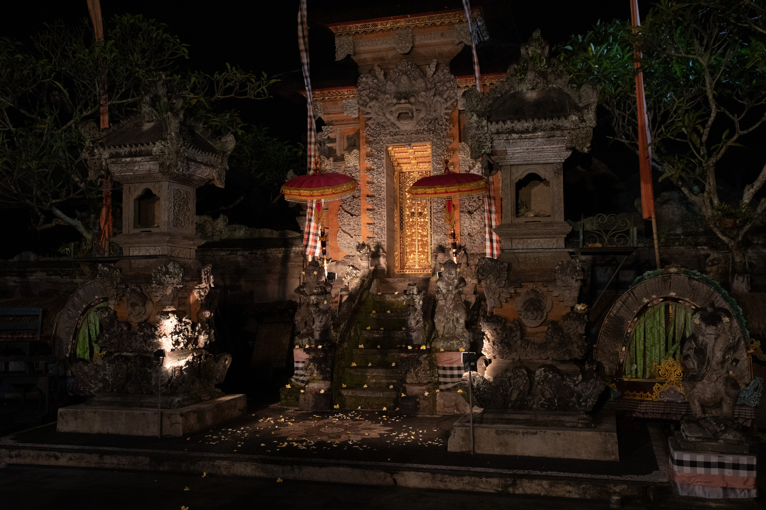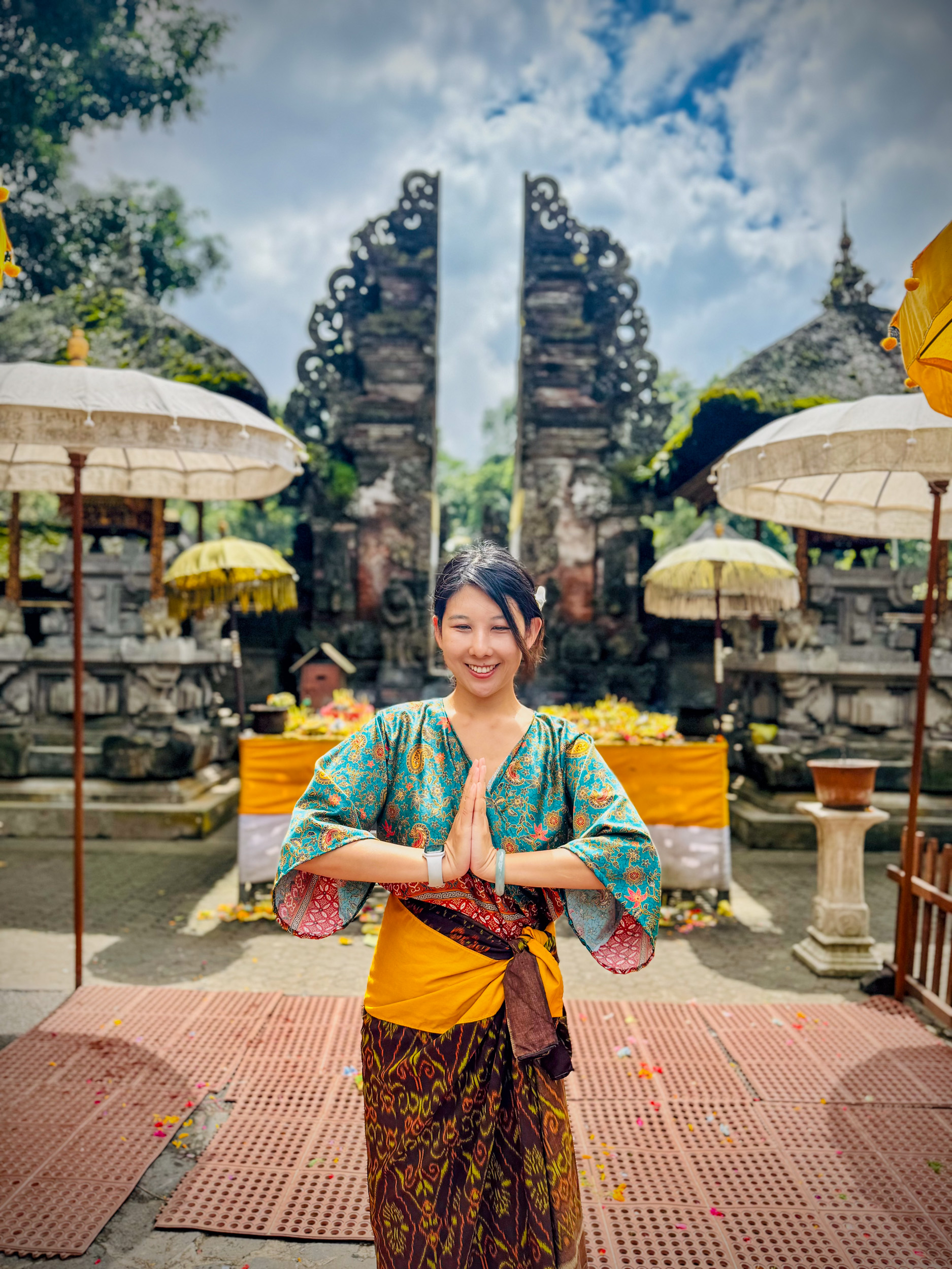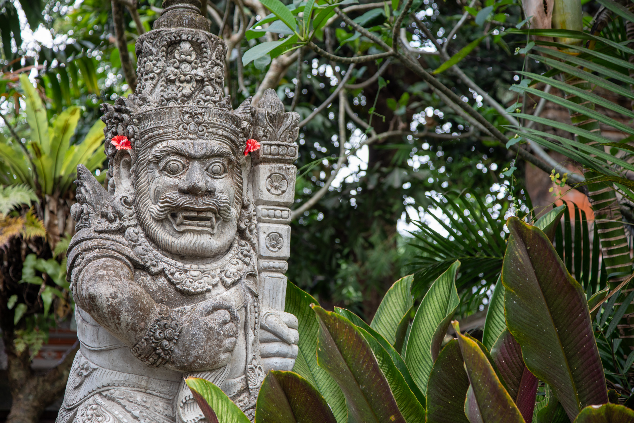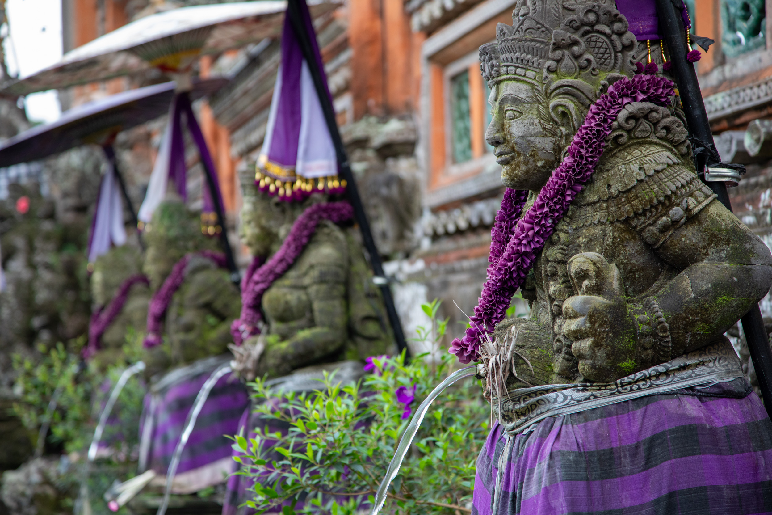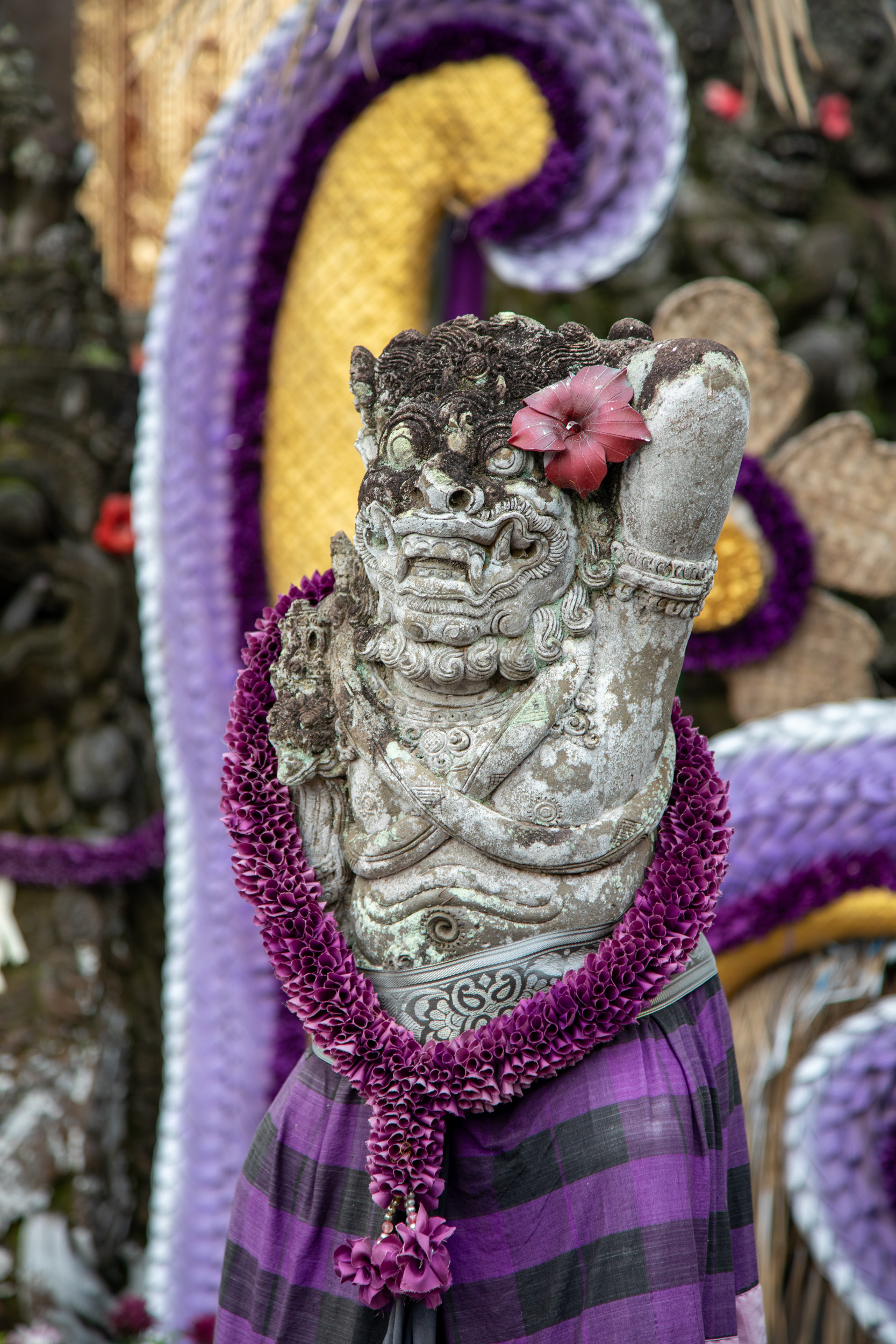 On marche dans les ruelles de la ville et on comprend pourquoi elle est nommée la capitale spirituelle de Bali. Il y a des temples dans chaque maison, ils sont en brique pour la plupart, très décorés avec des statues, des détails surprenants de richesse.