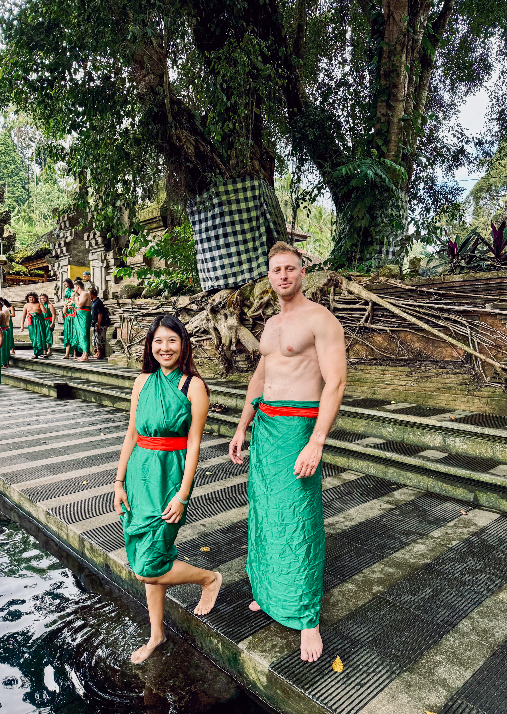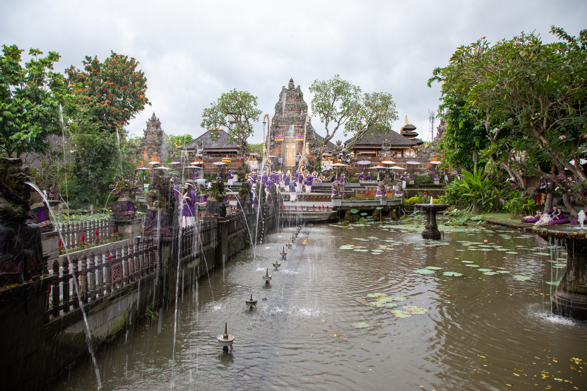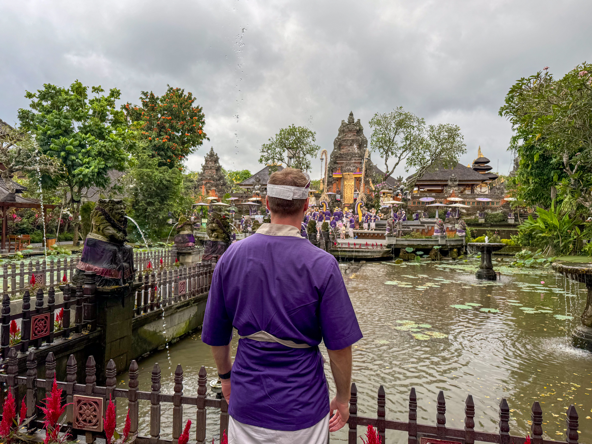 Puis un peu plus loin, on rejoint le Water Palace, un autre palais où l’on nous fait mettre un sarong violet et un petit chapeau sur la tête. Tous les touristes ont le même habit et cela rend les photos très jolies, très homogènes.