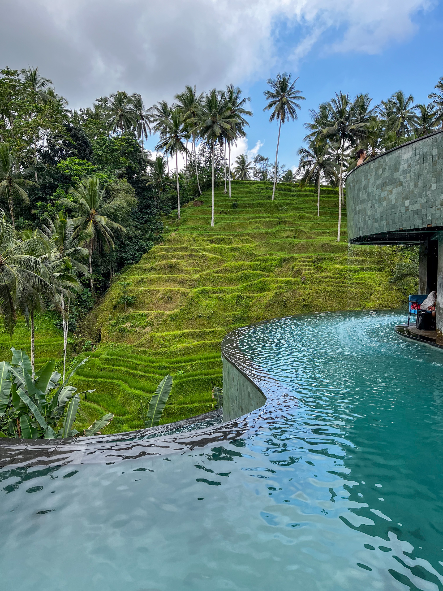 L’endroit est vraiment très bien pensé pour les touristes, on voit qu’ils ont trouvé la recette qui fonctionne. La piscine du Cretya est vraiment agréable avec de belles courbes et une vue sur les rizières en terrasse.