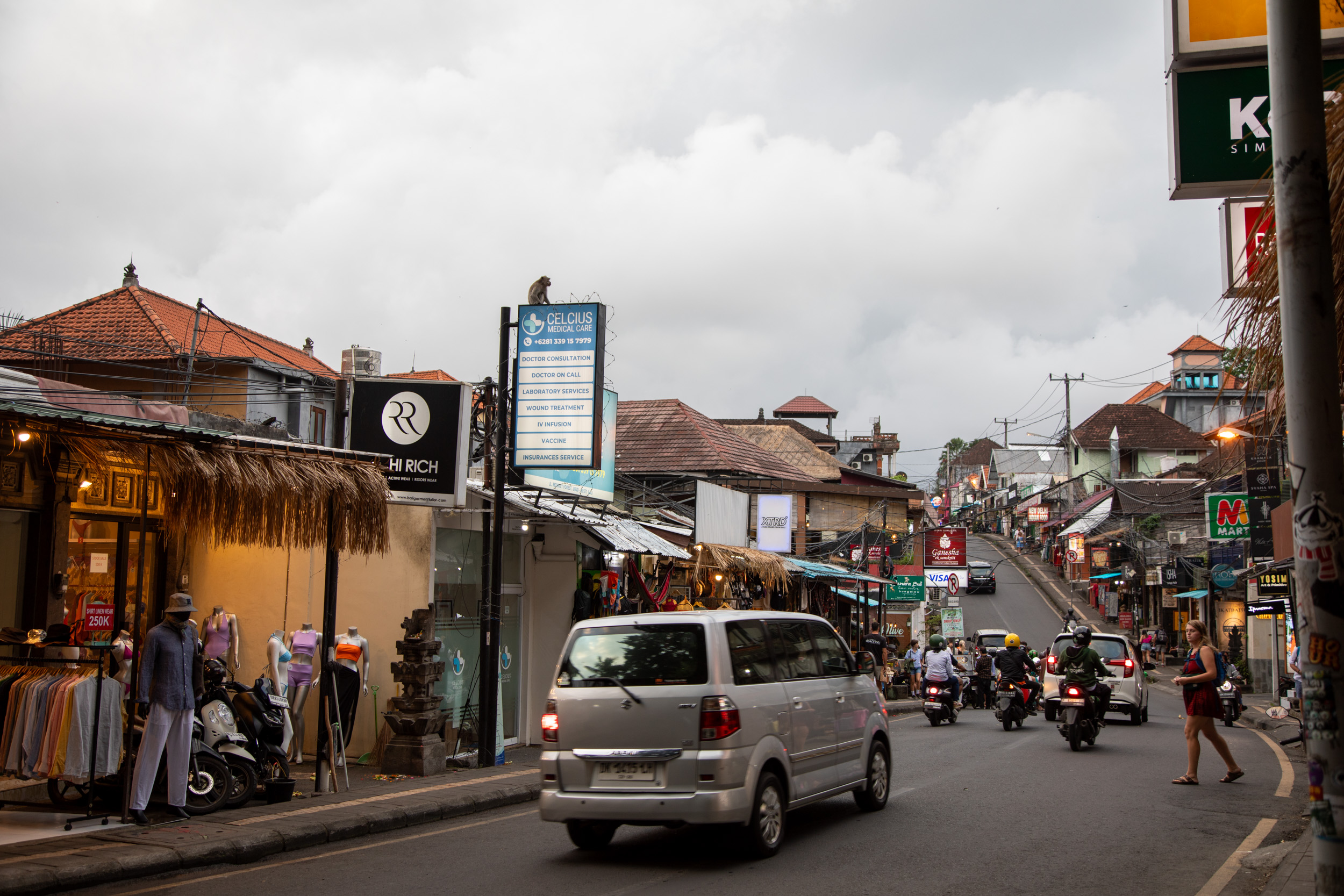 La rue principale d’Ubud est très chargée en trafic à toute heure de la journée, on s’en rendra compte au fil des jours.