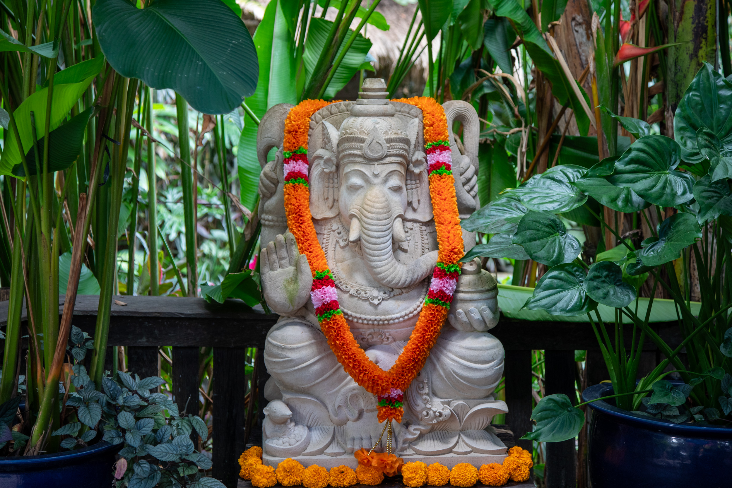 On s’installe pour le déjeuner au restaurant Orange Sweet, qui est installé au milieu de ce décor typiquement balinais.