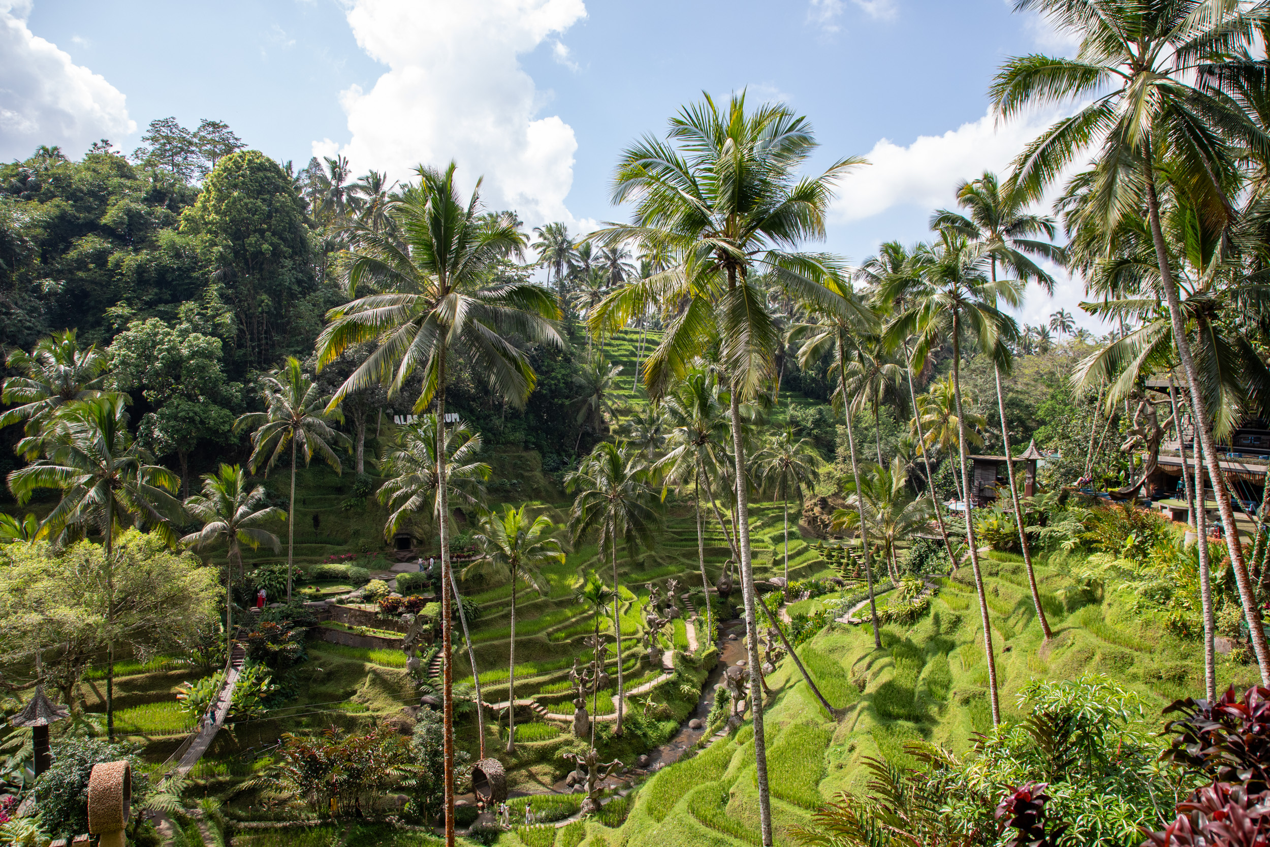 Cette ville a vraiment une atmosphère particulière, elle a gardé une identité très forte, c’est vraiment le coeur de la spiritualité balinaise, mais elle accueille aussi les touristes du monde entier et le fait vraiment bien. On se sent vraiment bien à Ubud. Il y a des temples passionnants, une campagne bucolique, les rizières. Mais aussi des restaurants créatifs, des jolis hôtels perdus dans la nature avec une piscine. Bref, on craignait que Ubud soit une ville dénaturée par le tourisme et complètement vendue à l’argent et on a trouvé au contraire un endroit qui cherche à conserver un équilibre et qui pour le moment l’a encore conservé.