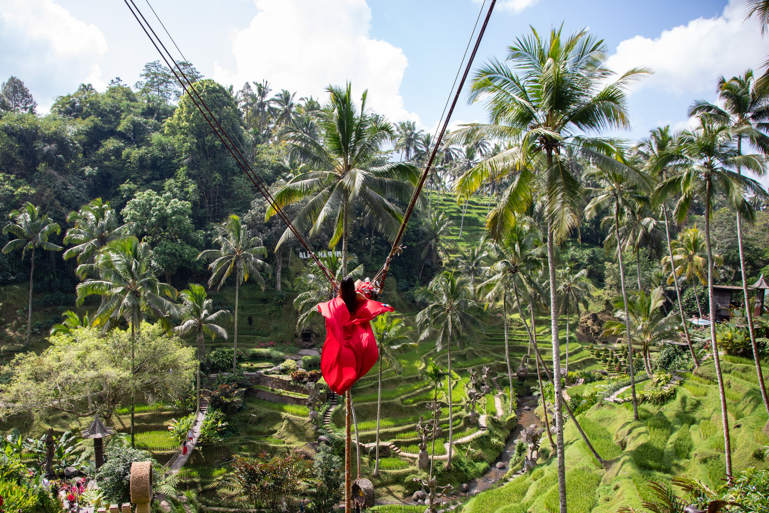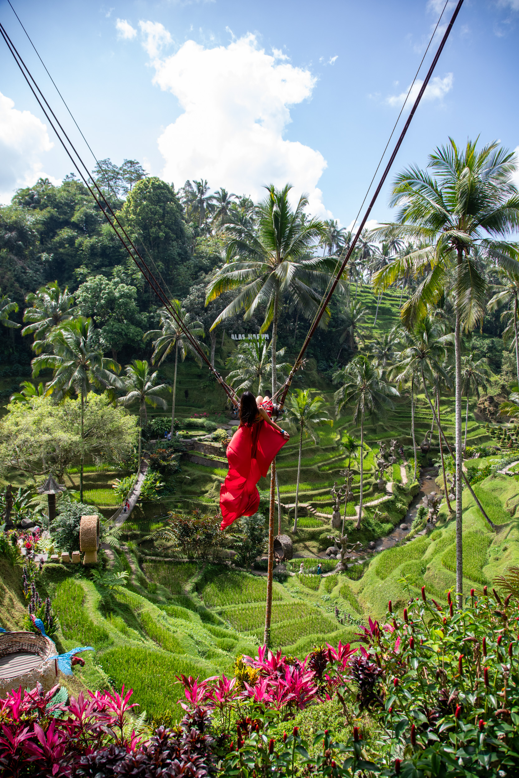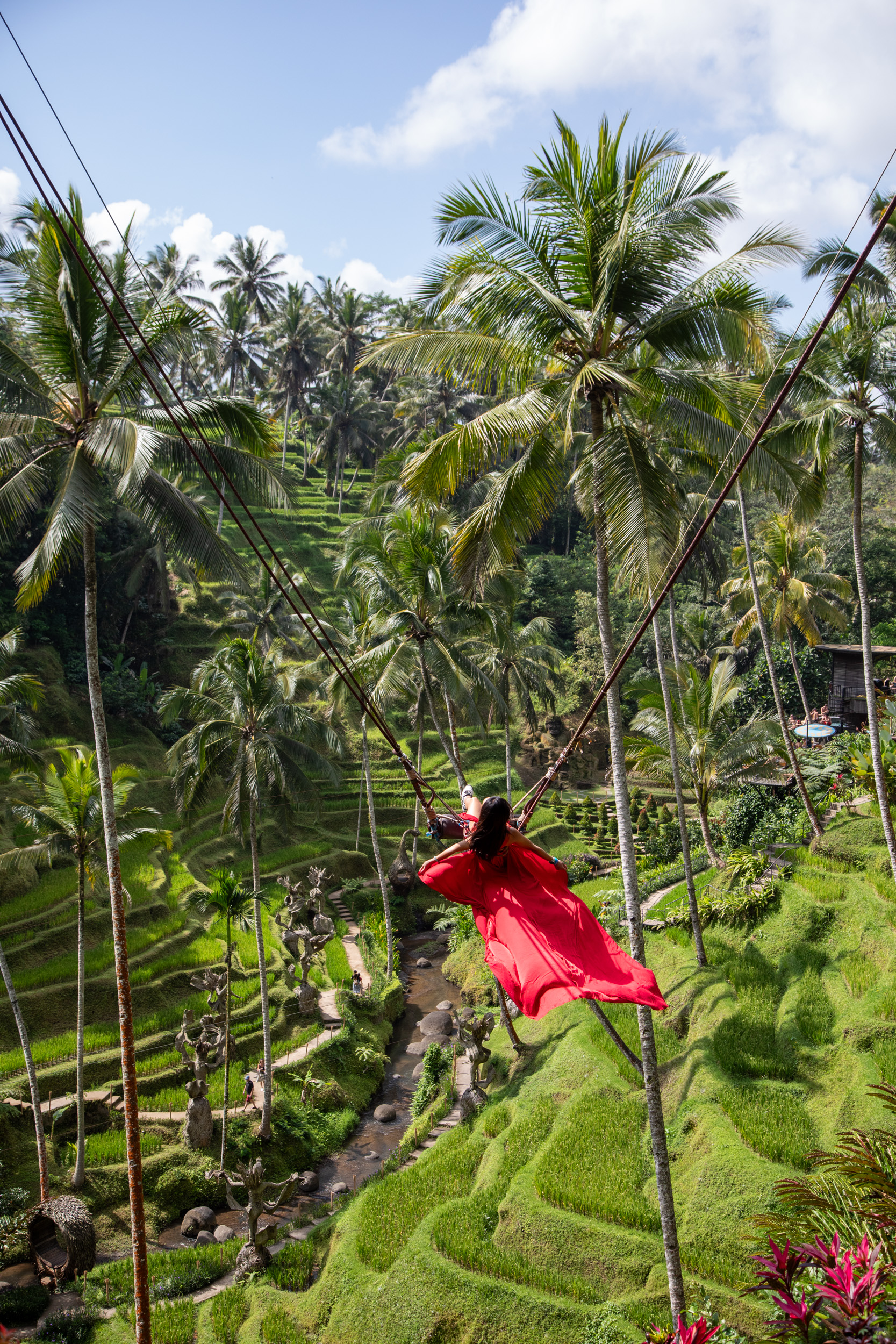 Il est possible de faire un tour de balançoire, une des fameuses Bali swings qui ont envahi les réseaux sociaux dernièrement. Le système encore une fois est extrêmement bien pensé, on peut louer sa tenue et on fait la queue (pas très longtemps) pour avoir des sensations sur cette immense balançoire au dessus de la nature balinaise.