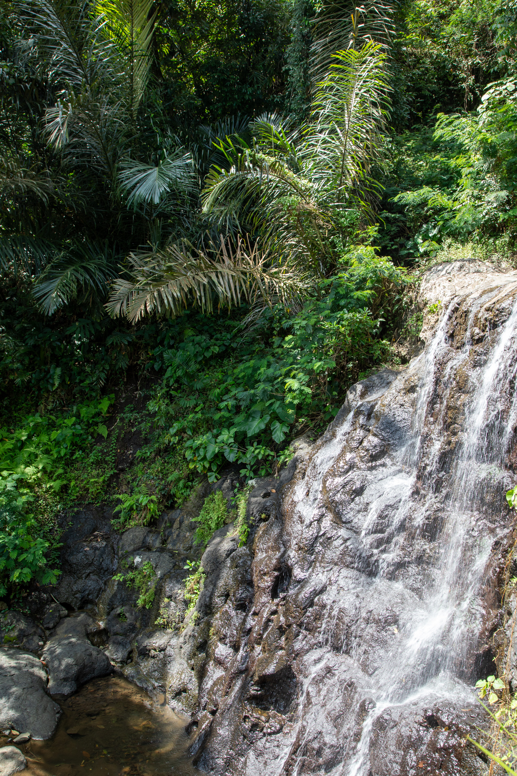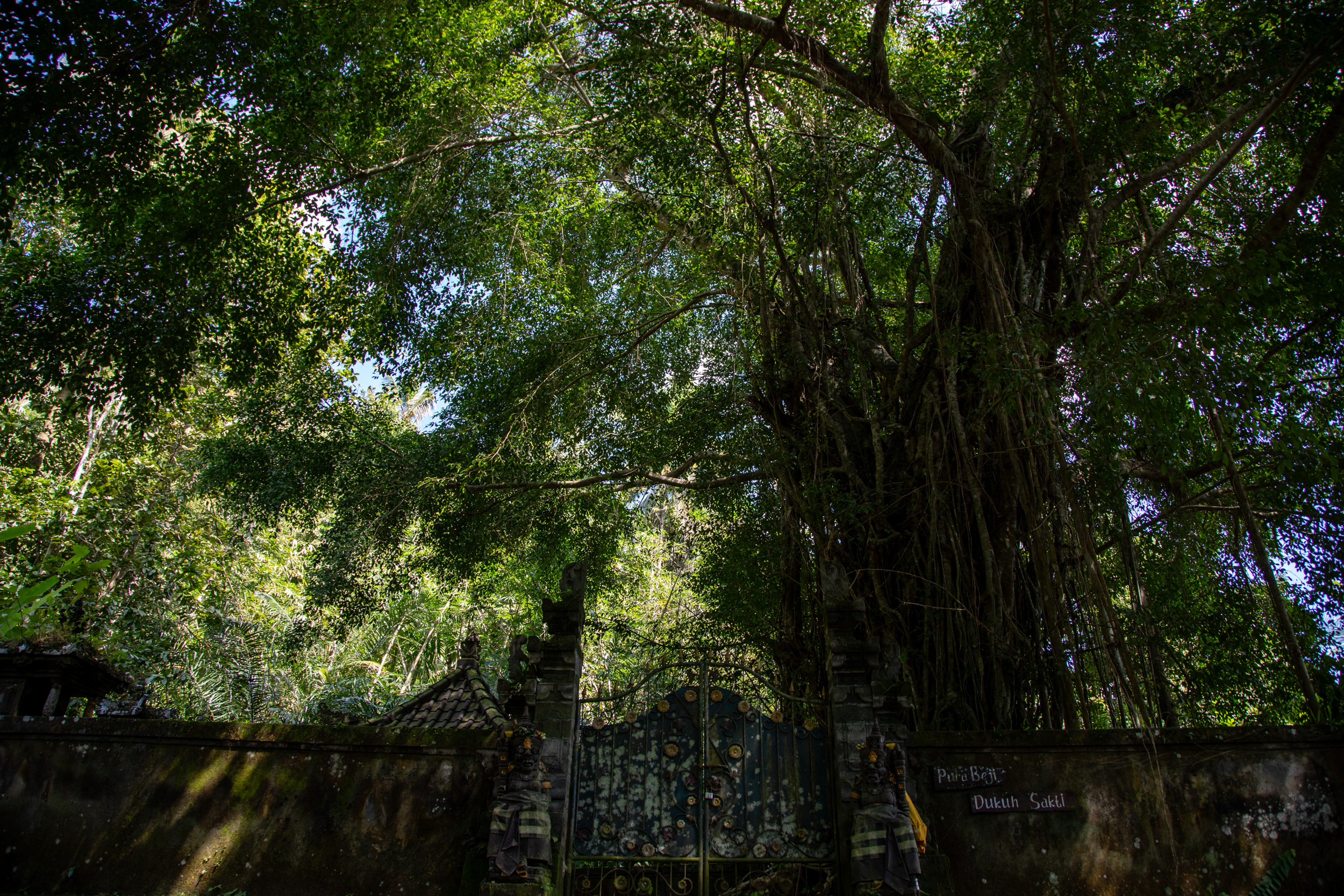 Pour notre part, on arrive directement aux cascades de Gembleng en bordure du village. On est accueilli par un Banyan, comme souvent à Bali.