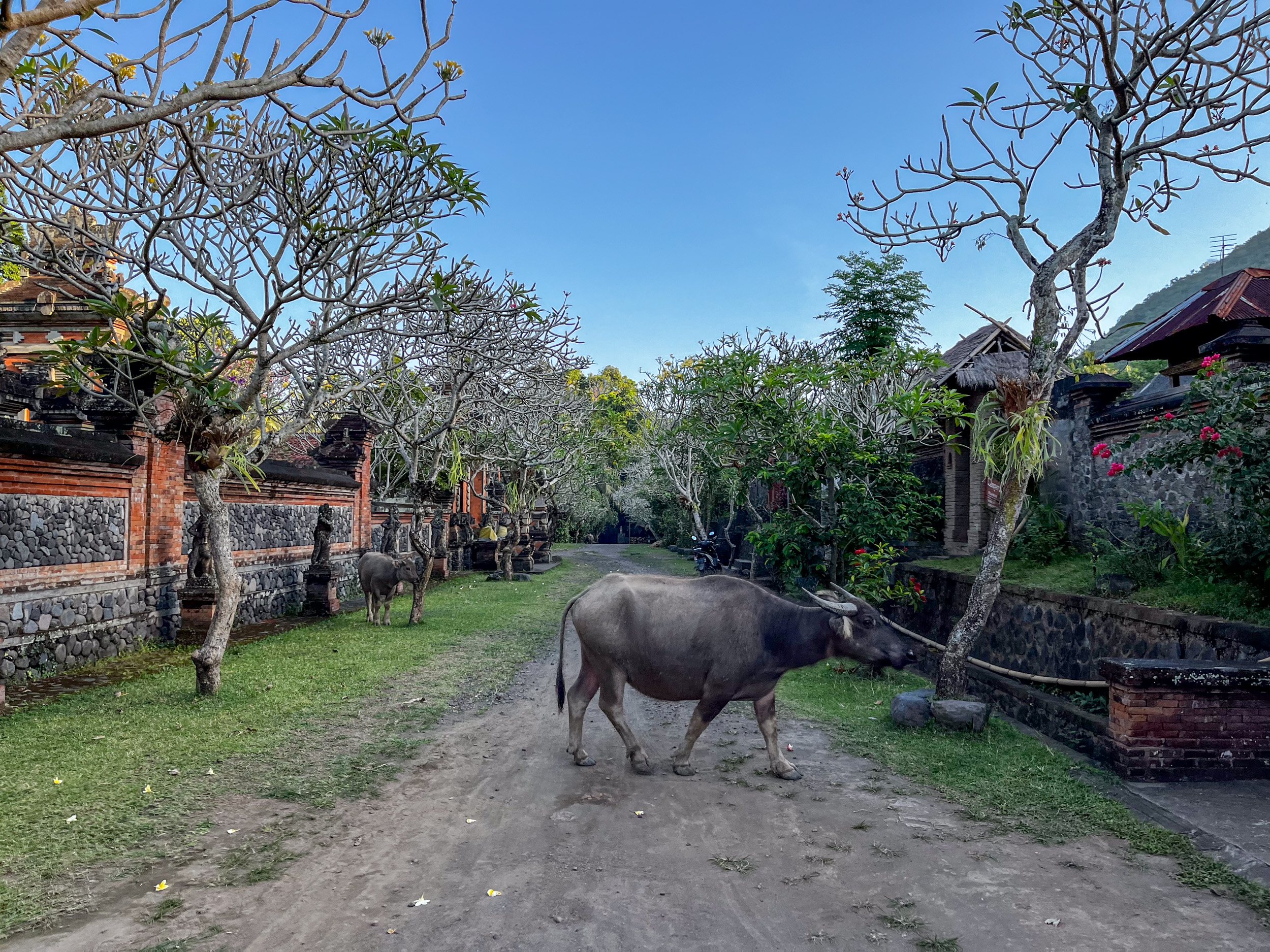 Nous partons après le petit déjeuner en direction de l’Est de Bali, notre prochaine destination est Amed, un petit village de pêcheurs réputé pour ses fonds marins à Bali. On a réservé un taxi pour la journée pour profiter des différentes attractions sur le chemin et éviter de faire la route d’un coup. Il est tout à fait possible de rejoindre Amed depuis Ubud en une traite, c’est tout à fait faisable, mais on perd l’opportunité de découvrir plusieurs endroit très intéressants et un peu moins connus. Après un bon petit café, on roule vers Sidemen. Sidemen offre des paysages ruraux magnifiques, des rizières lovées au creux des montagnes, des villages simples. Le contraste avec Ubud est frappant, alors qu’Ubud vit de cet équilibre entre tourisme et vie traditionnelle, à Sidemen ce n’est pas encore cette situation, l’authenticité de la vie balinaise est encore très préservée.