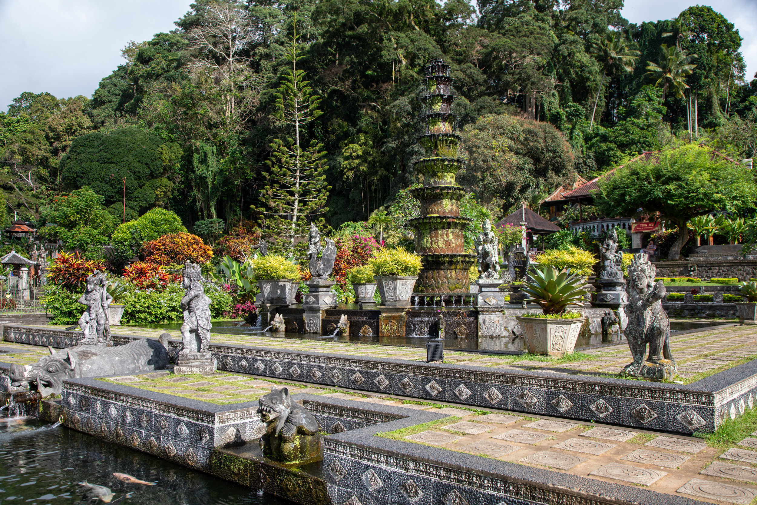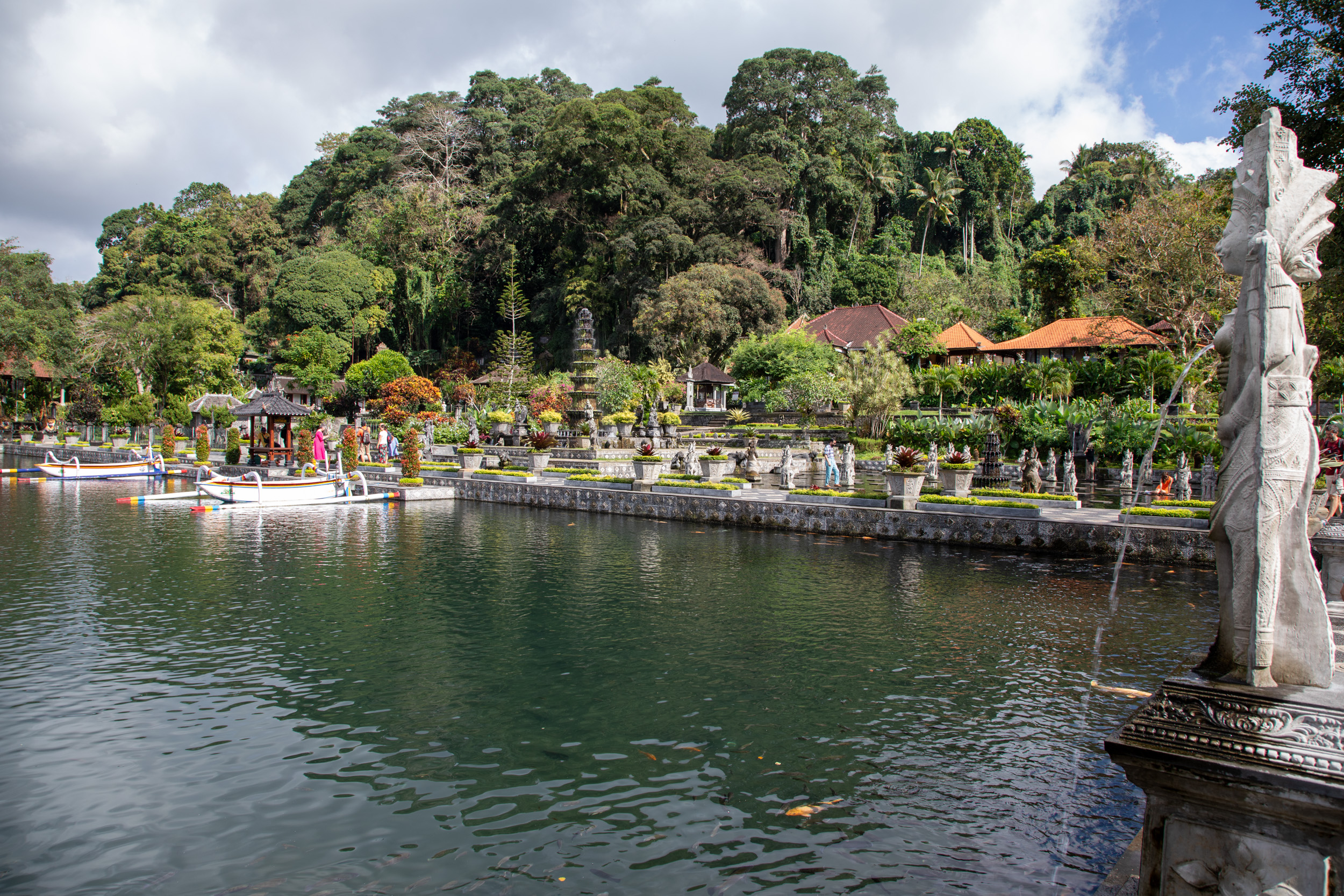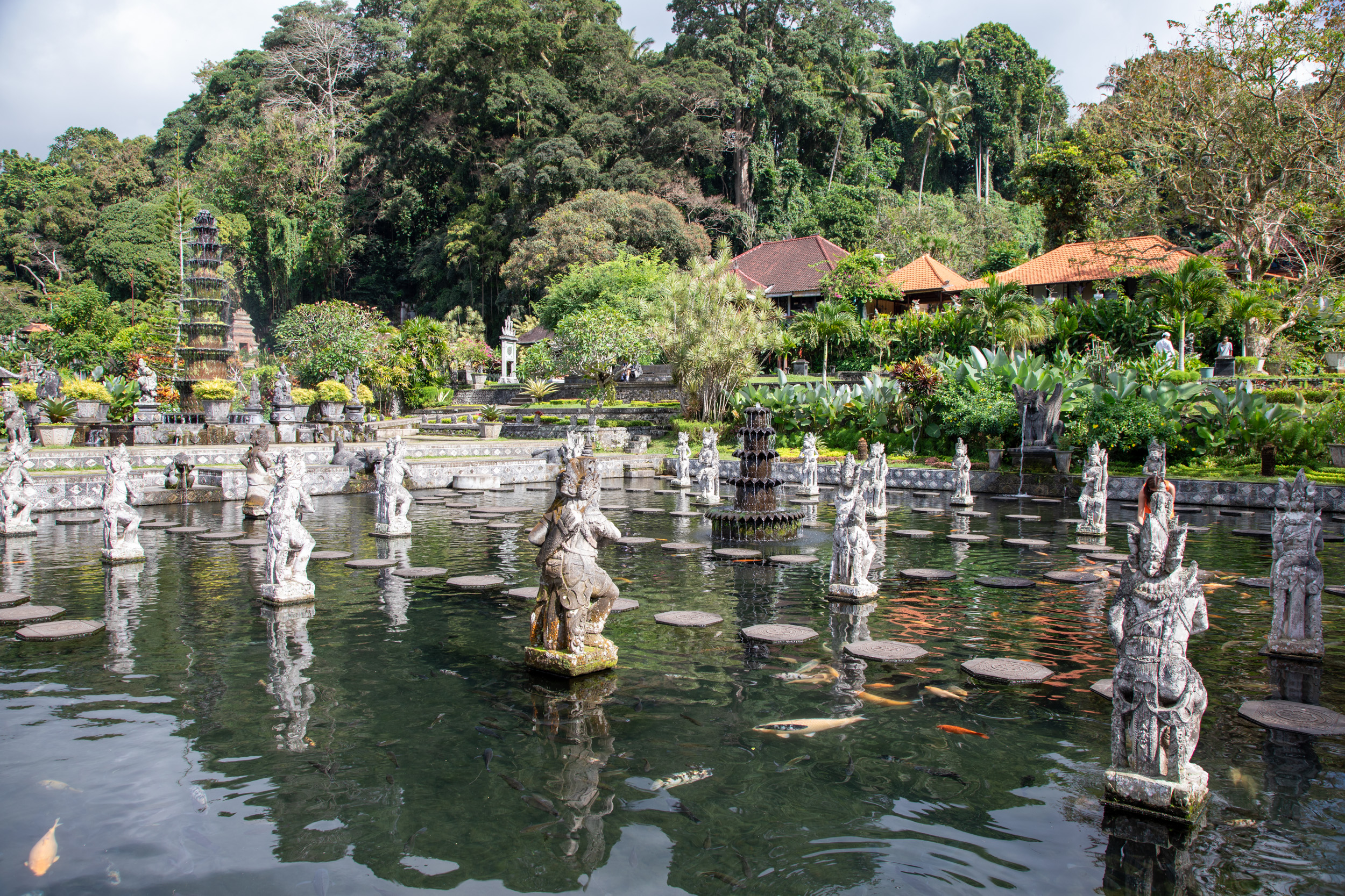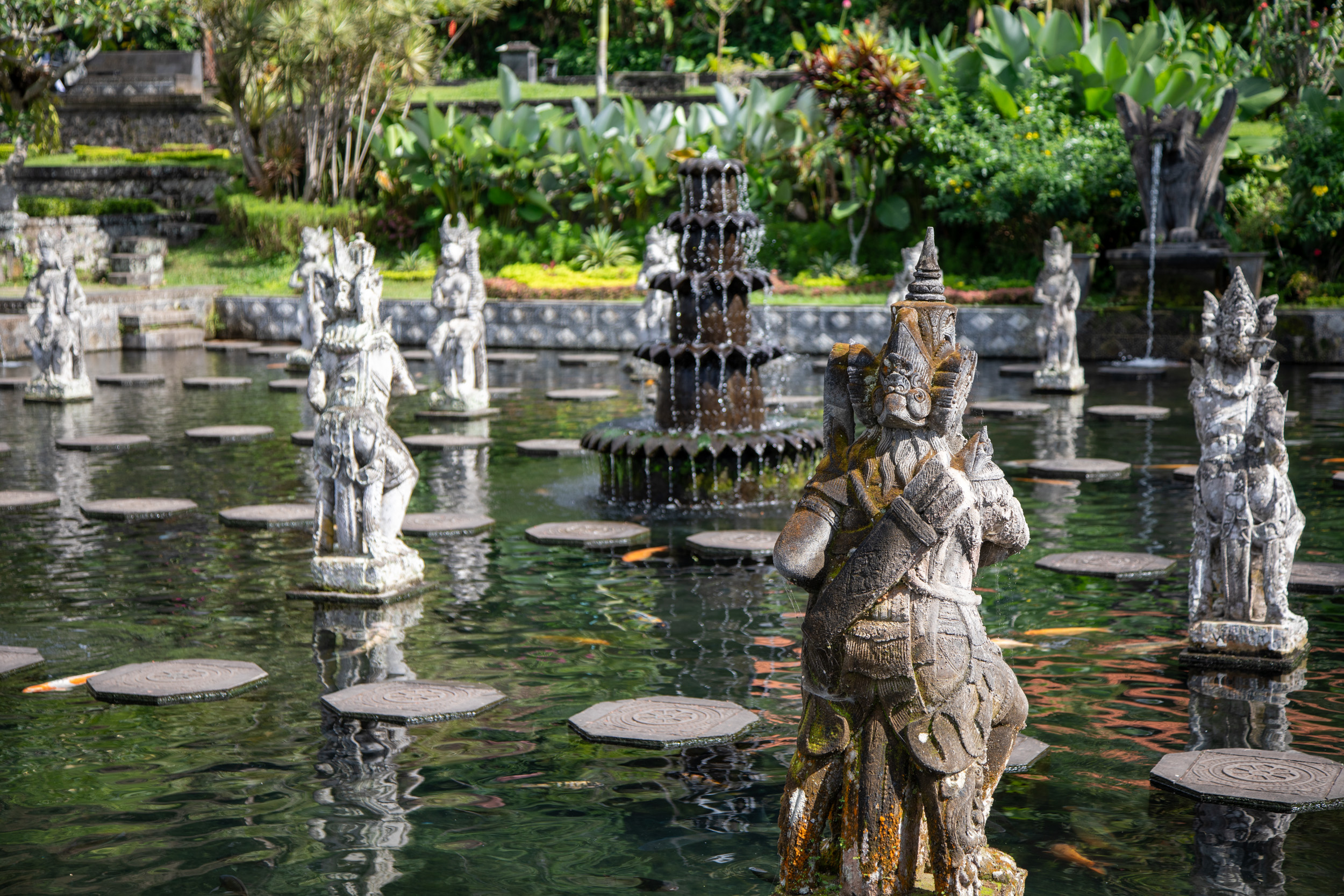 Les plans d'eaux sont au coeur de la culture balinaise. Il y a dans ce palais de nombreuses statues qui posées sur l'étang, avec de nombreuses carpes koï.