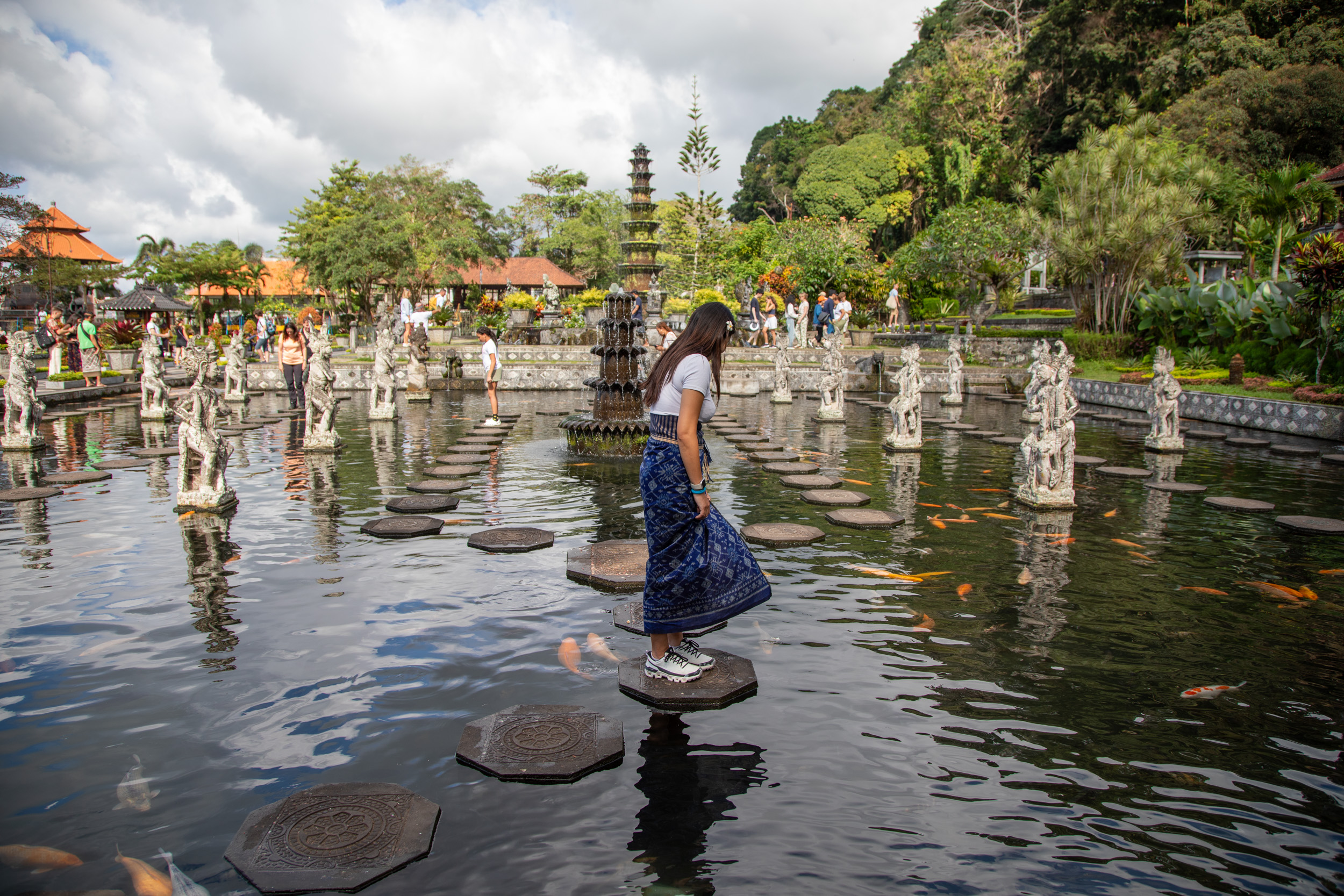 On arrive à l’ouverture du palais, il n’y a pas encore beaucoup de monde. Ce palais est toujours la propriété de la famille royale de Bali et il est ouvert au public, il est composé de magnifiques jardins et fontaines.