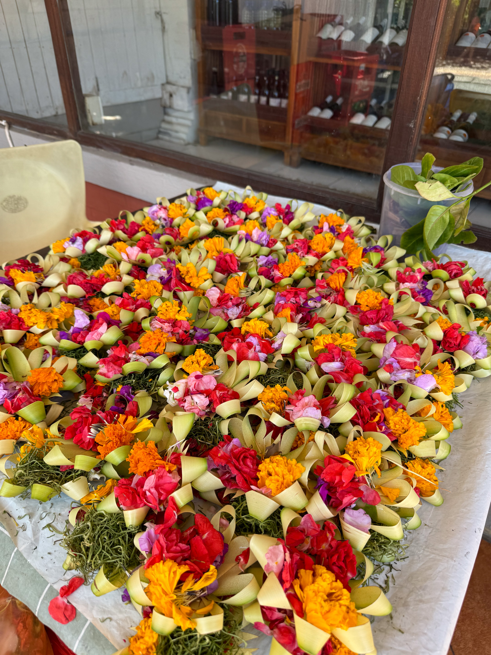 On retourne au niveau de la mer, changement de température radical. Alors que l’on tremblait de froid en haut, il fait horriblement chaud en bas. En fait, la montagne créé les nuages et on était pile au niveau de la limite, on n’a pas eu de chance mais je suis sur que ca doit être souvent comme cela. D’ailleurs, on a renoncé à aller à la fameuse Penataran Agung Lempuyang Temple. Cette porte du temple qui donne elle aussi sur le volcan Agung, particulièrement photogénique, mais ce n’était pas le jour. On a bien fait. D’autant plus que les commentaires ne donnaient pas vraiment envie. Visiblement il faut attendre plus de deux heures pour pouvoir enfin avoir droit à 2 minutes de photo, l’effet lac qui se reflète sous la porte est en fait obtenu avec un miroir sous le téléphone. On a donc fait l’impasse. A la place, on se réchauffe avec un bon brunch au st. bernard coffee. Une femme prépare un paquet d'offrande pour toute la rue, c'est très mignon.