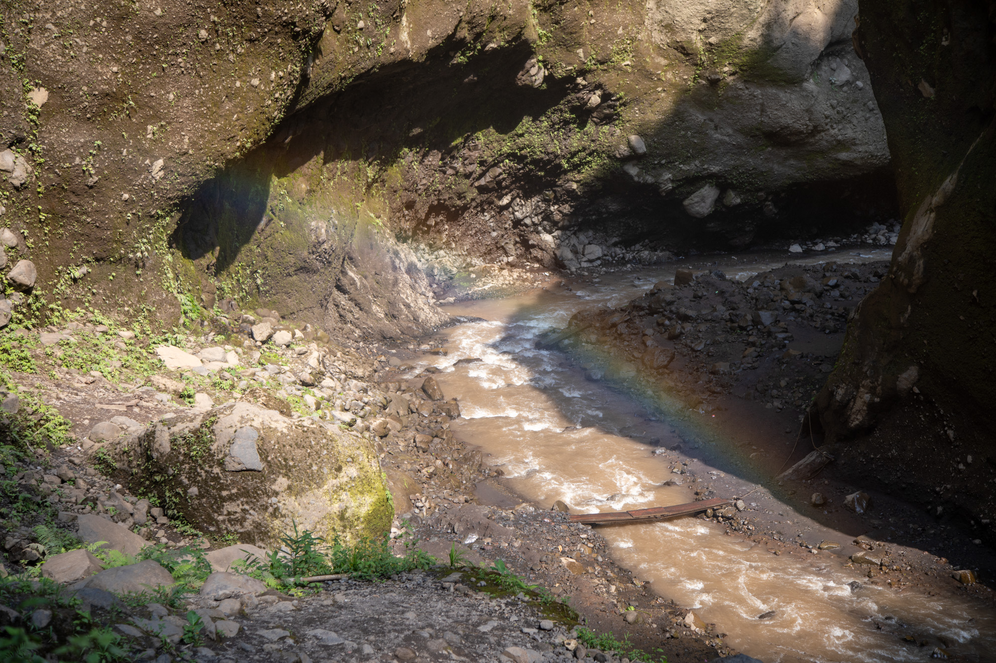 On arrive dans le canyon et on sent la puissance de la cascade au loin. Les gouttes d’eau projetées nous frappent le visage, cela refroidi l’air.
