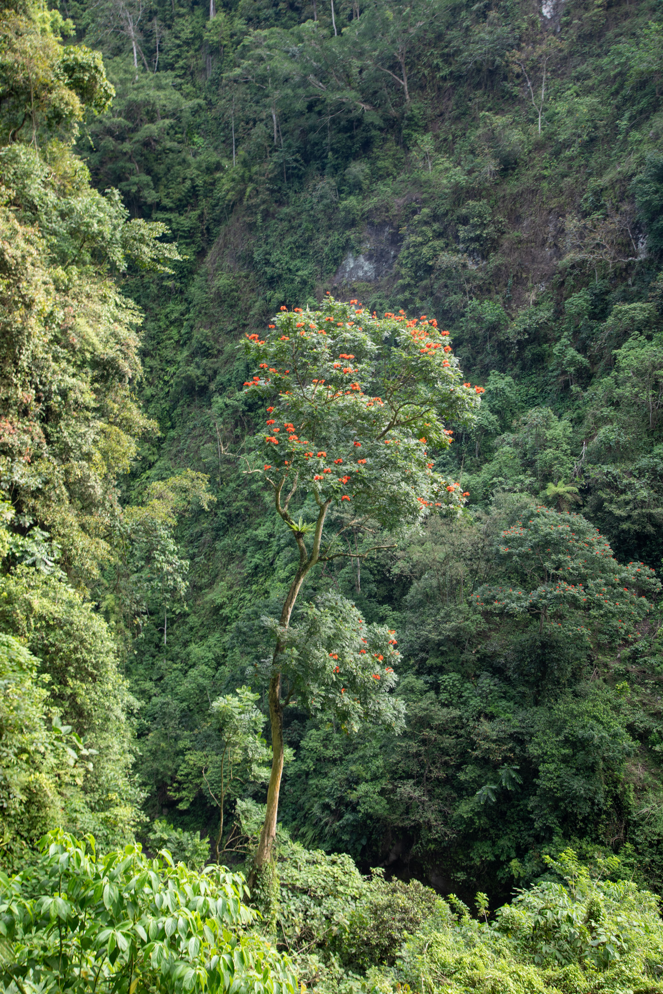 La nature est luxuriante, avec de jolis arbres en fleur, mais aussi des fleurs étonnantes que l'on découvre sur le bord du chemin.