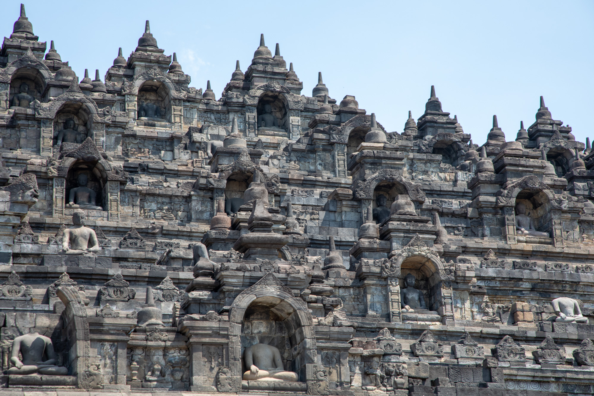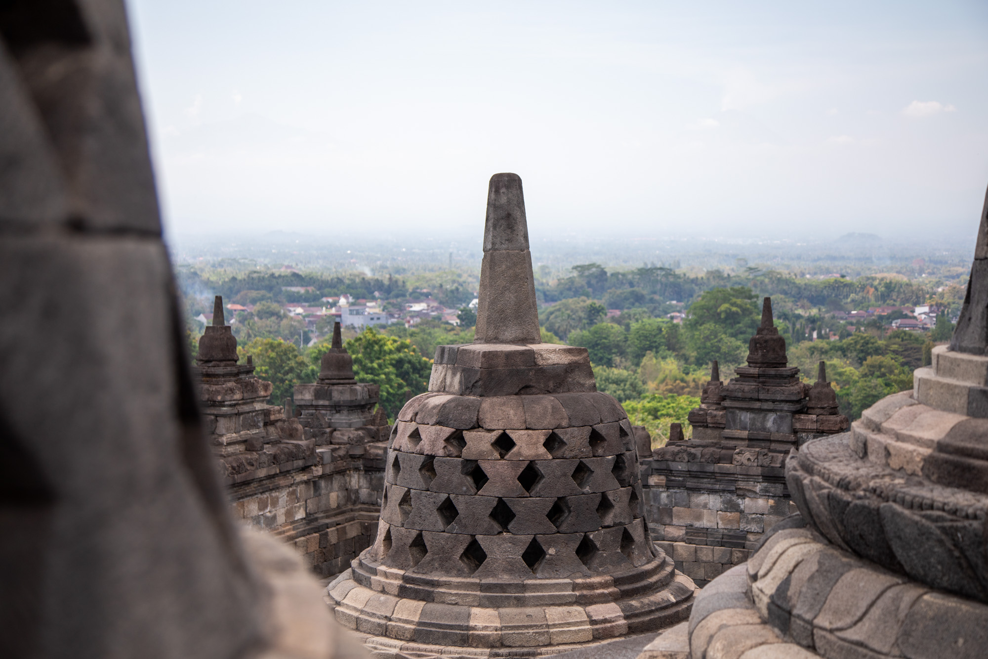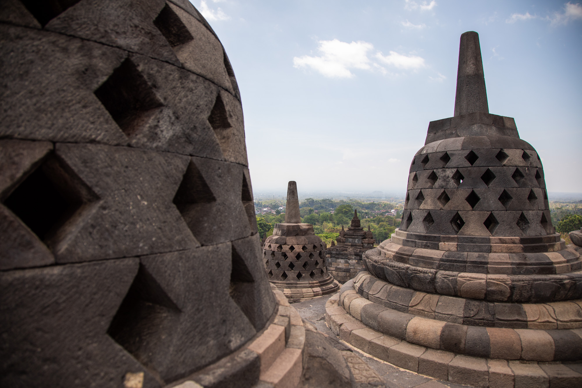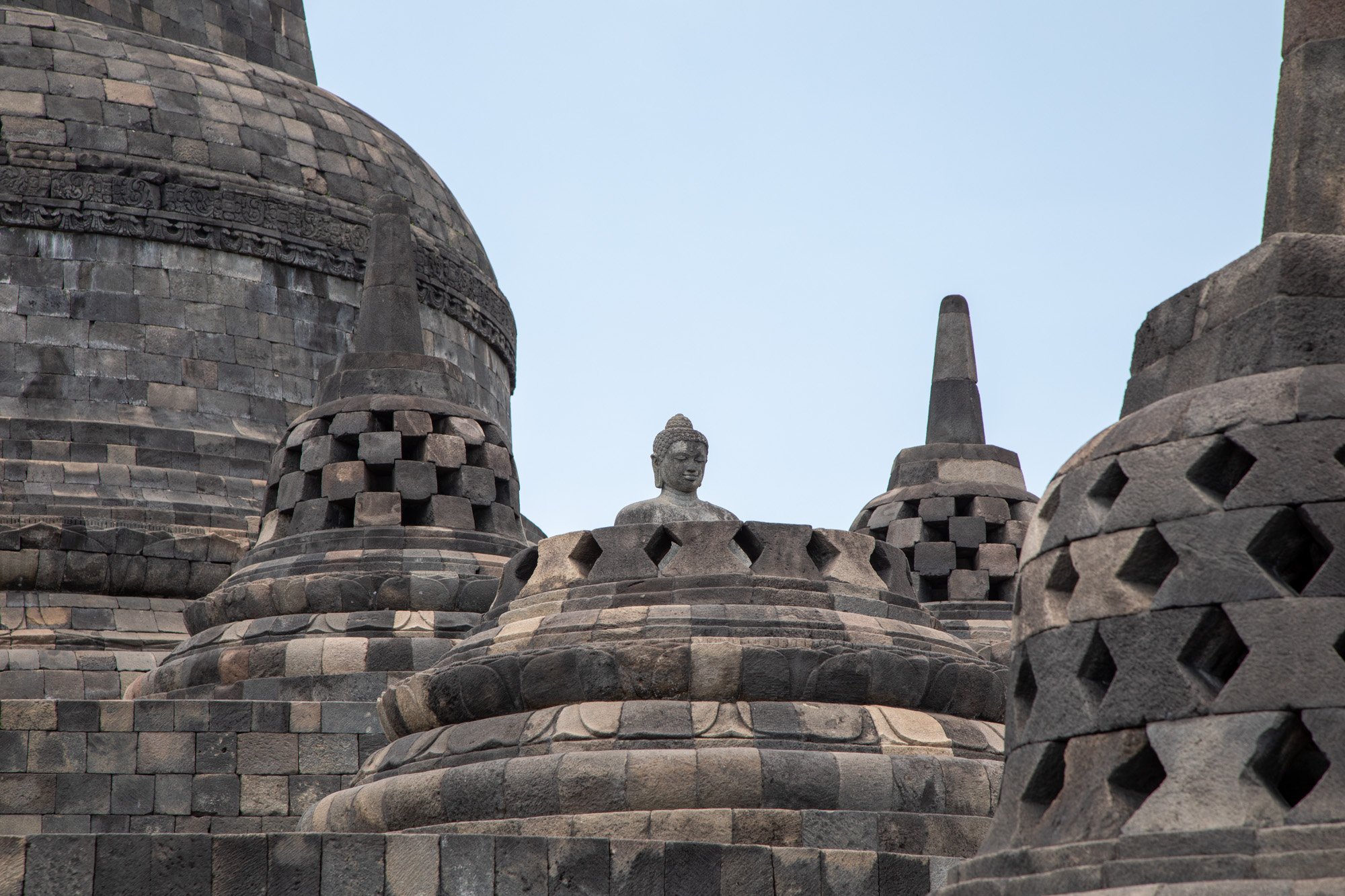 Ces stupas qui ont été édifiées tout en haut de cette immense structure sont vraiment caractéristiques du temple de Borobudur.