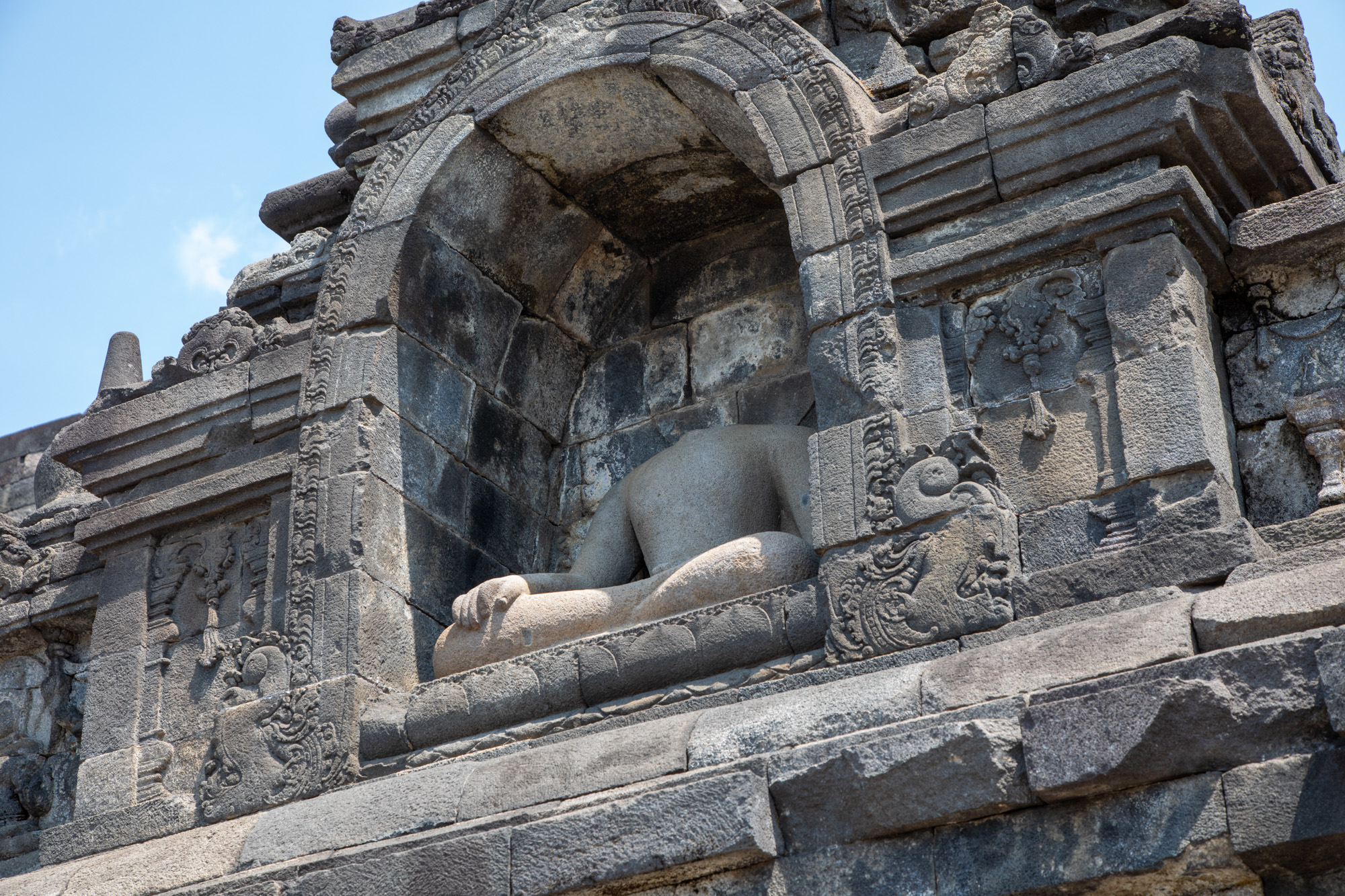 A cause de sa proximité avec le volcan Merapi, il a malheureusement subi les attaques de la nature et il a du être restauré au fil du temps par des archéologues. Il est encore abimé mais le résultat est déjà très impressionnant, il y a encore beaucoup de statues de bouddhas mais la plupart sur les niveaux inférieurs ont perdu leur tête.