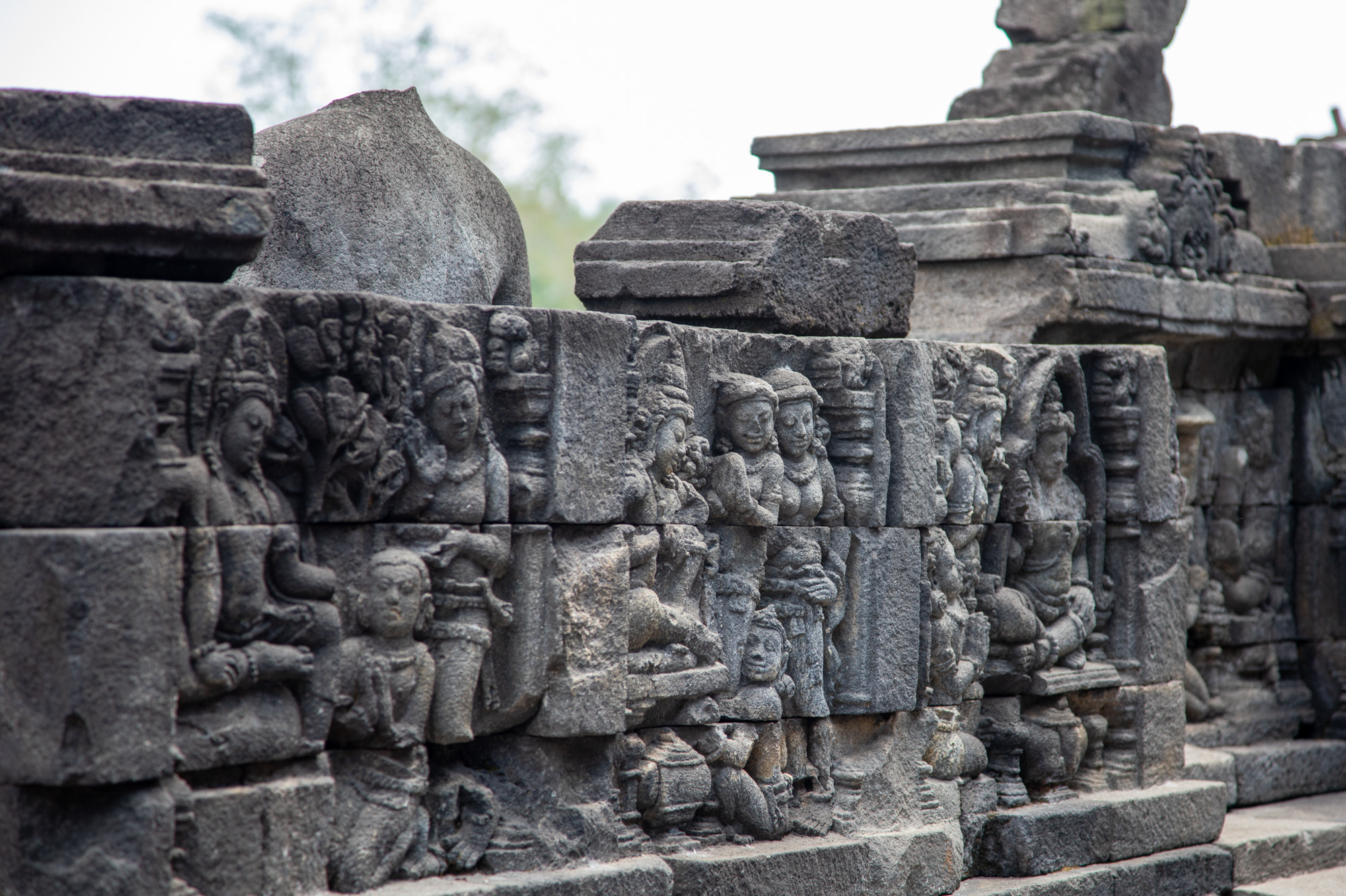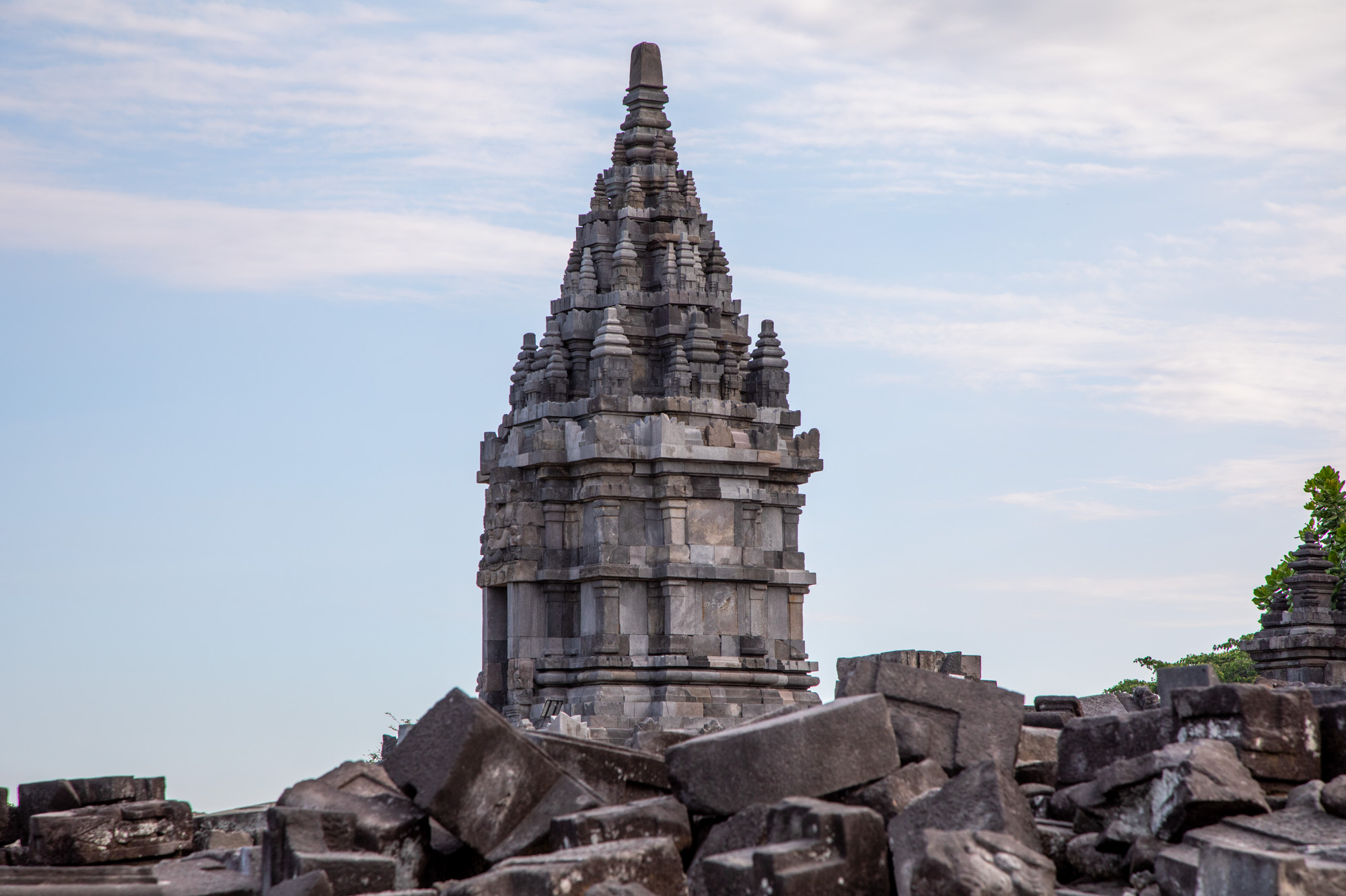 Prambanan a aussi subi de gros dégats dans le passé, et beaucoups de pierres sont jonchées sur le sol.