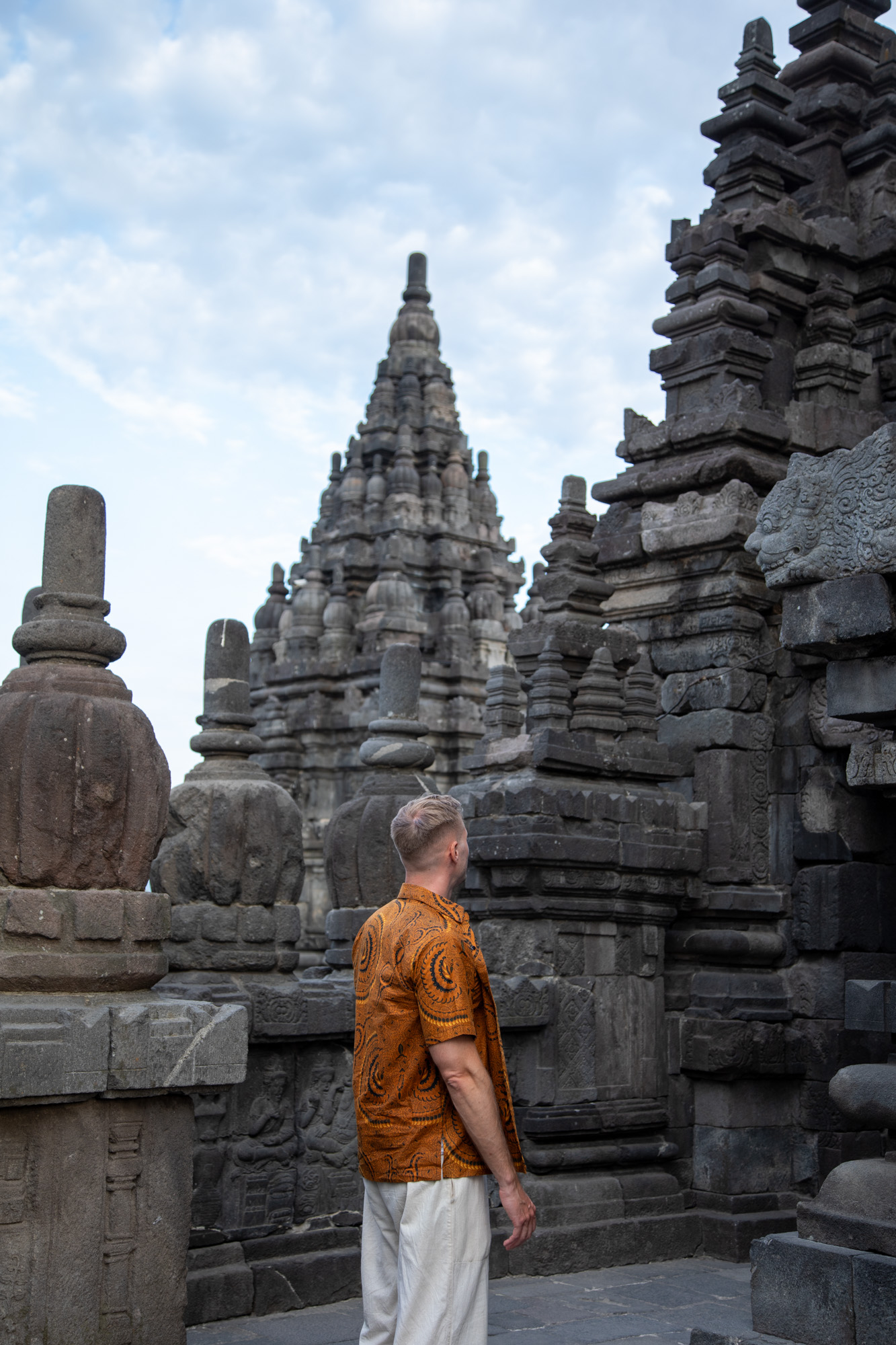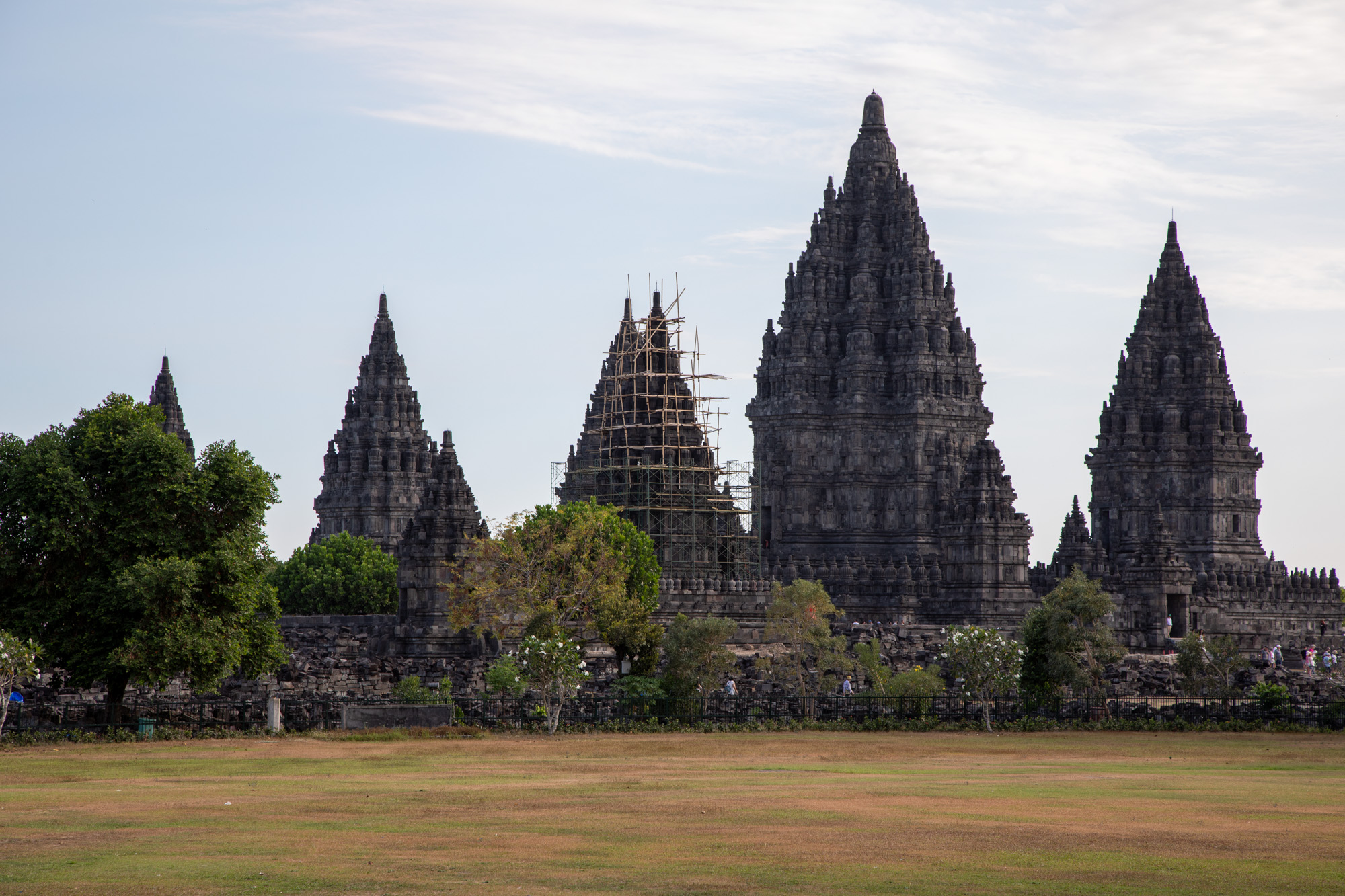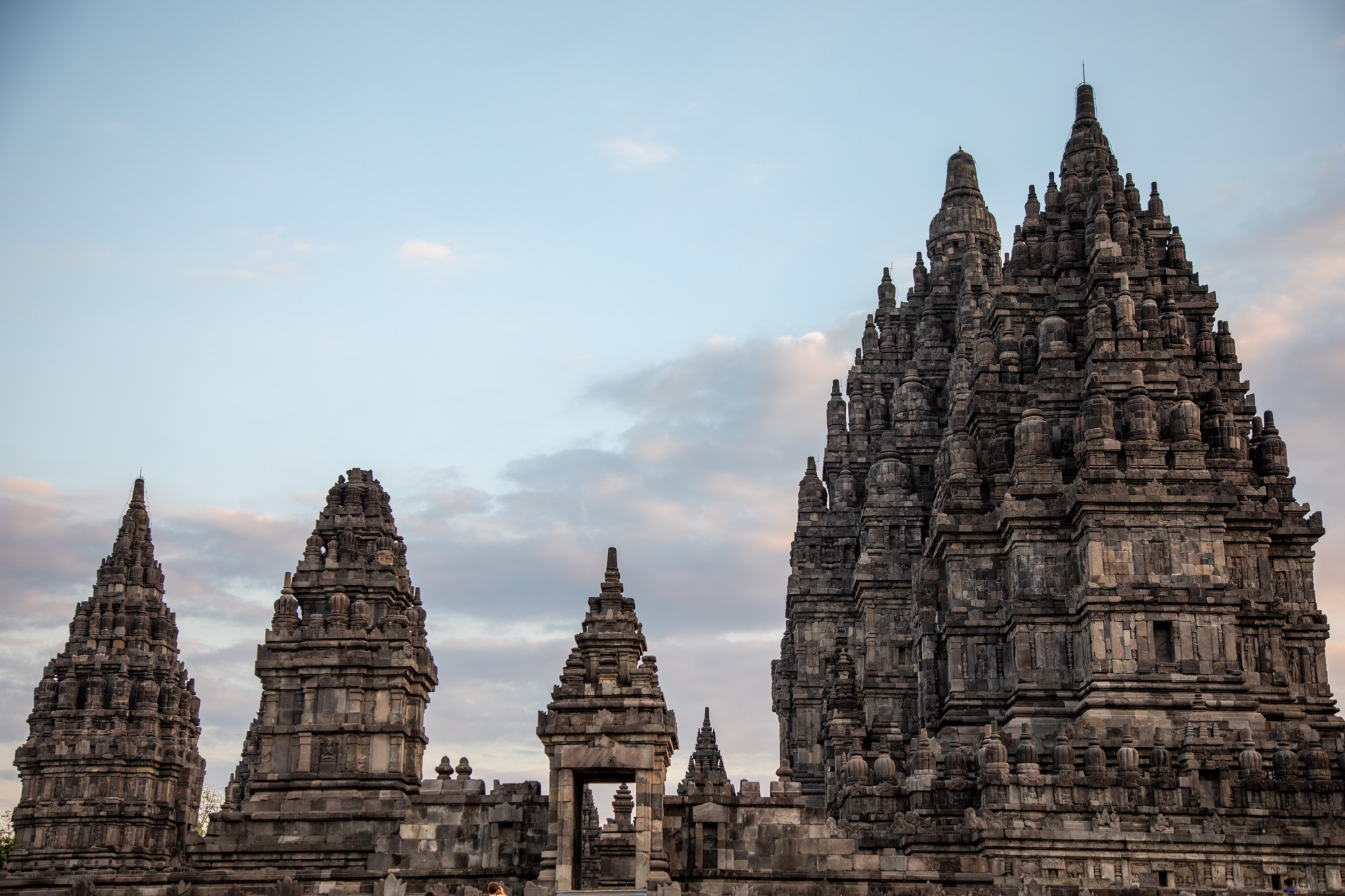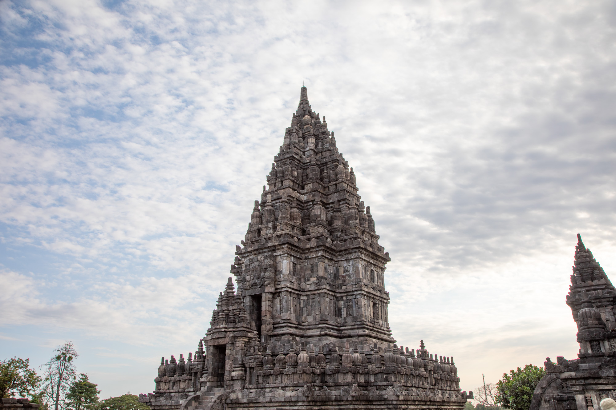 On a aussi visité le temple de Prambanan qui se trouve de l’autre côté de la ville de Yogyakarta. Moins éloigné du centre ville, on peut le rejoindre en une quarantaine de minutes par le périphérique, ce temple hindou est parmi les plus grands d’Indonésie aussi. On retrouve encore une fois cette thématique de Yogyakarta et ses monuments emblématiques qui ont été édifié durant l’age d’or du royaume hindou de Java, avant la colonisation par les musulmans. Ce temple est très différent de Borobudur, dans sa géométrie déjà. Parce que Borobudur était plus horizontal que vertical, Prambanan à l’inverse est tout en verticalité.