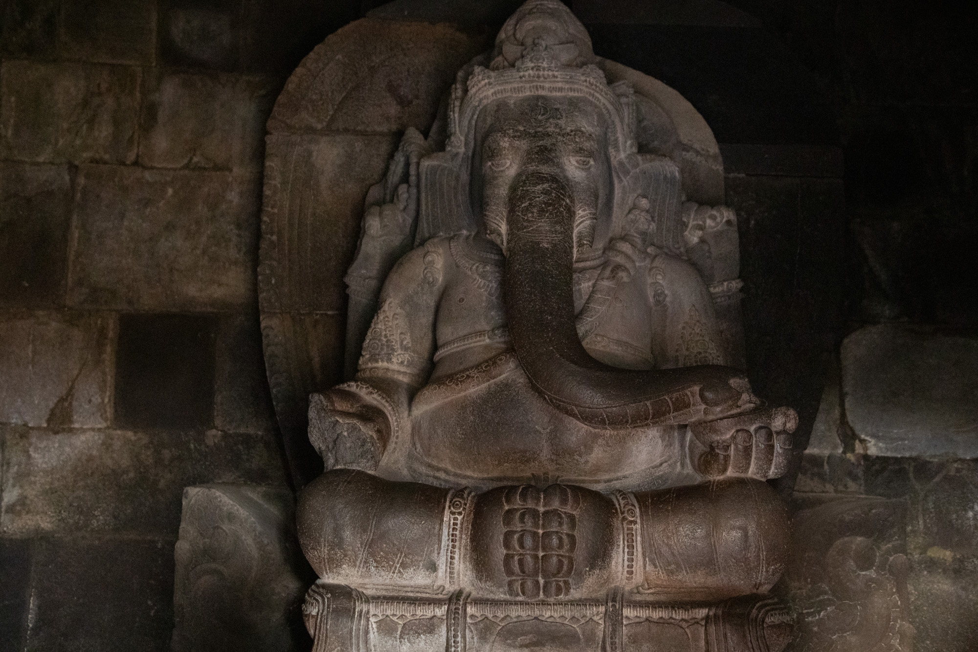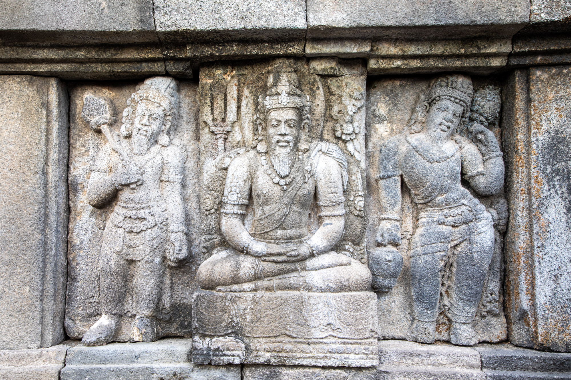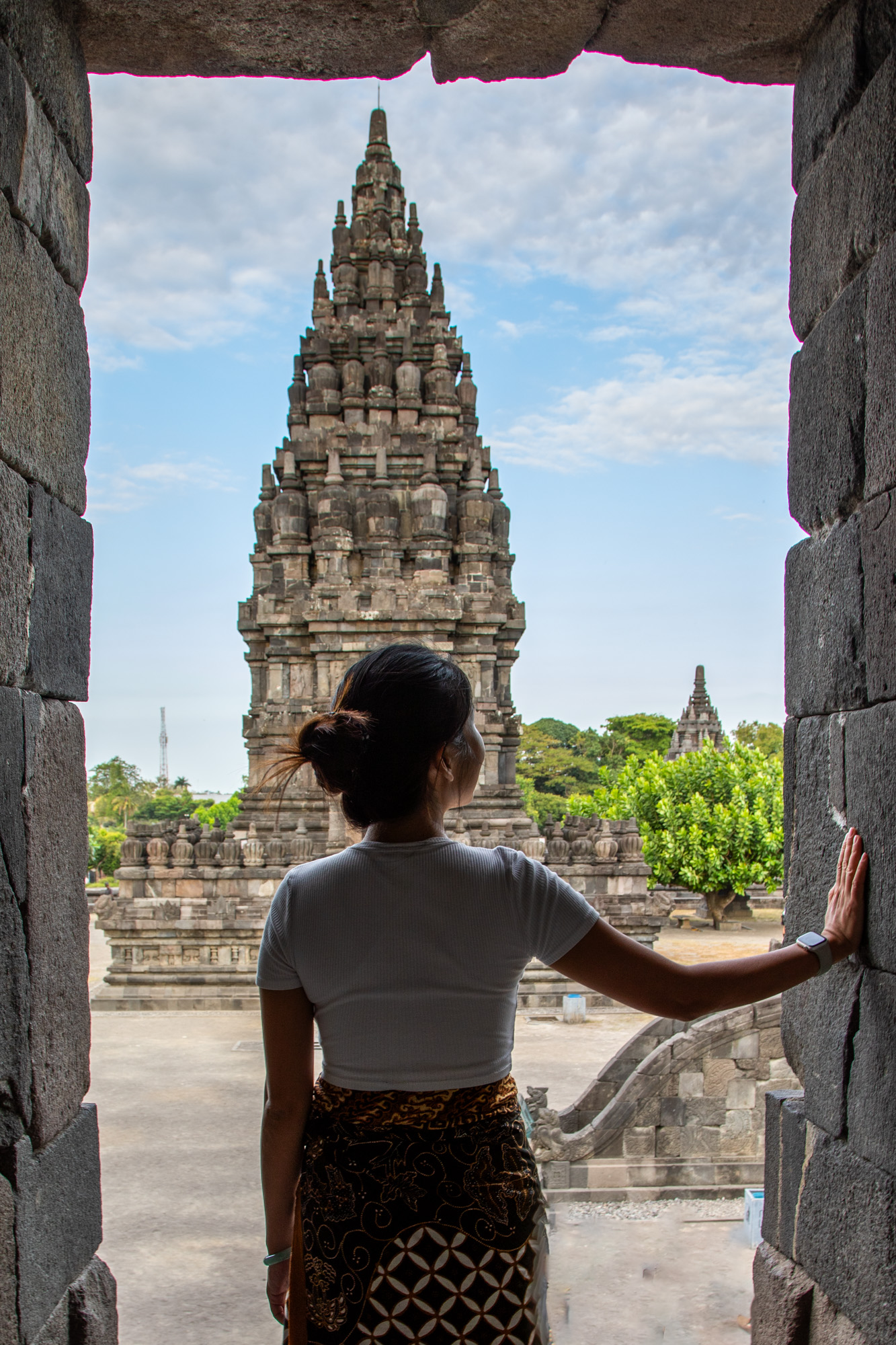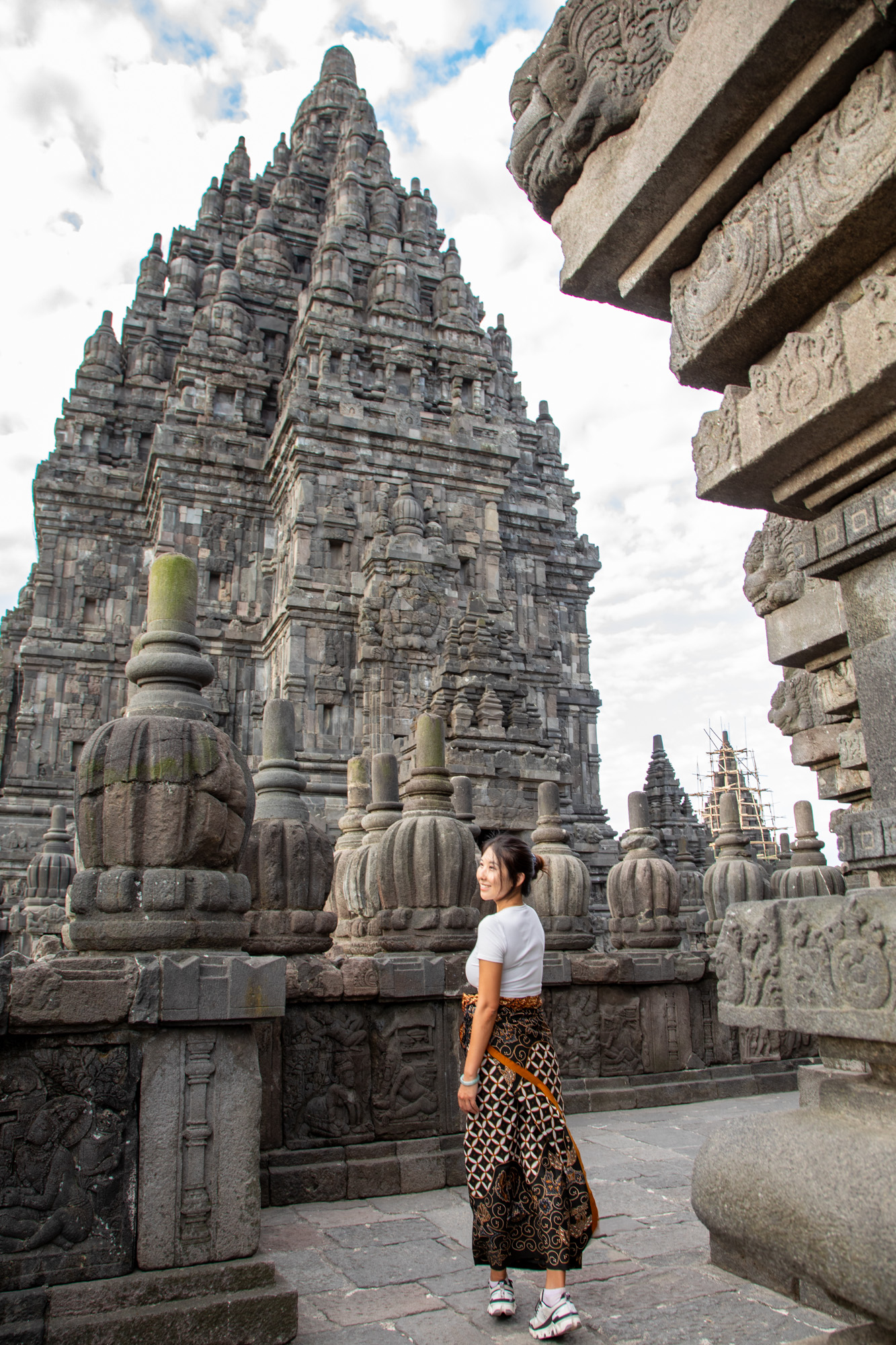 On a aussi visité le temple de Prambanan qui se trouve de l’autre côté de la ville de Yogyakarta. Moins éloigné du centre ville, on peut le rejoindre en une quarantaine de minutes par le périphérique, ce temple hindou est parmi les plus grands d’Indonésie aussi. On retrouve encore une fois cette thématique de Yogyakarta et ses monuments emblématiques qui ont été édifié durant l’age d’or du royaume hindou de Java, avant la colonisation par les musulmans. Ce temple est très différent de Borobudur, dans sa géométrie déjà. Parce que Borobudur était plus horizontal que vertical, Prambanan à l’inverse est tout en verticalité.