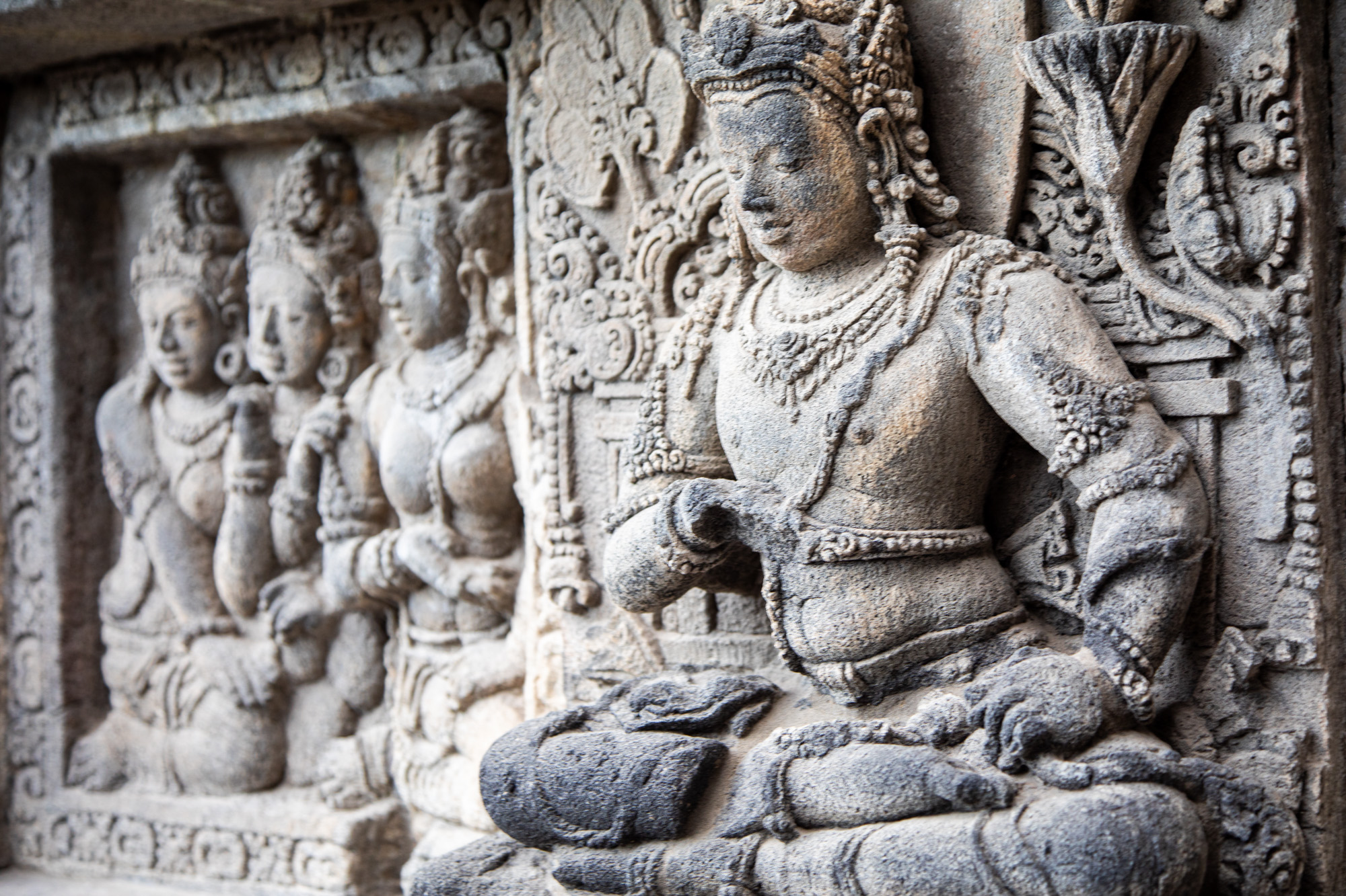 On peut entrer dans les différentes tours où se trouvent des statues des divinités, des fidèles hindous viennent toujours pour prier ici, mais ils ne semblent pas nombreux à Java.