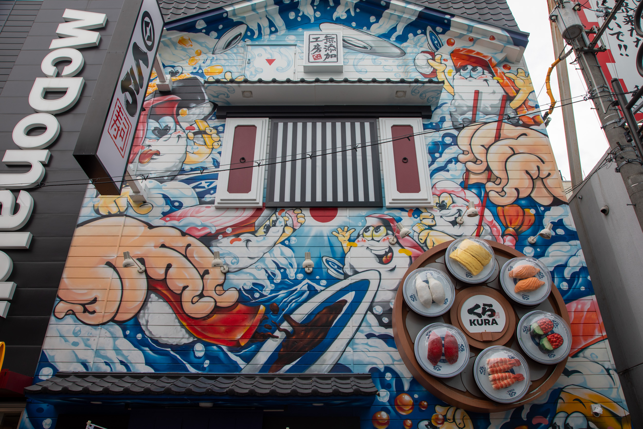Lorsque l’on arrive à Dontonbori, on a vraiment l’impression que c’est ici que l’on ressent le poul de la ville d’Osaka, il y a une énergie folle, comme un petit Time Square local, il y a des publicités lumineuses sur des écrans géants, les immeubles sont recouverts d’affiches, il y a un monde fou qui se croise autour des galeries marchandes. C’est vraiment l’image du Japon moderne comme on l’imagine.