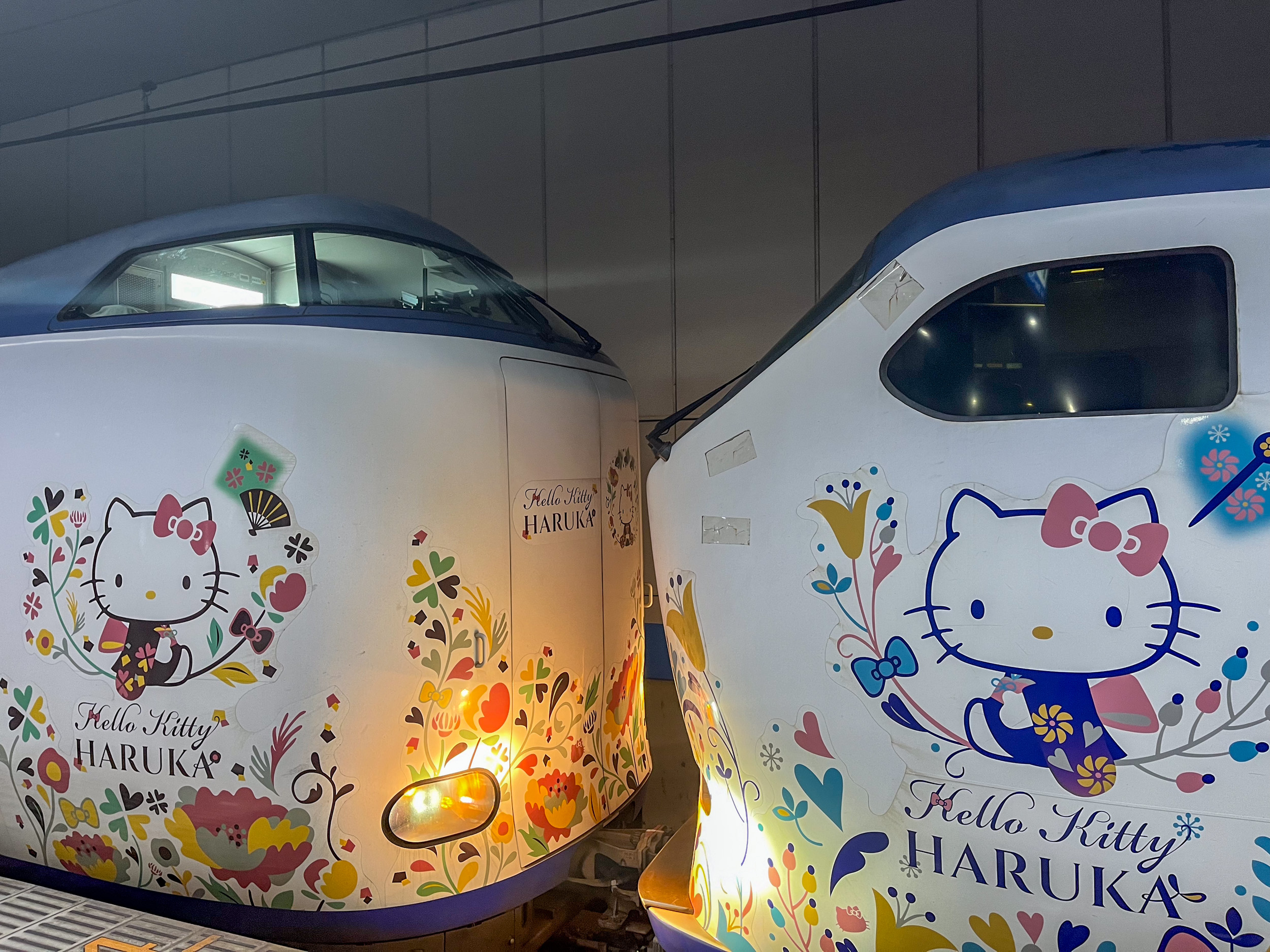 Le Japon sait toujours rendre les choses Kawai, et c’est donc le train Hakura aux couleurs du personnage Hello Kitty qu’il faut choisir car il est direct, en passant par Osaka. Le trajet dure 75 minutes jusqu’à la gare de Kyoto. Mais avant de pouvoir prendre le train il faut acheter un ticket. Et je me fais avoir, après avoir fait la queue car il y a beaucoup de monde en fin de semaine, la machine n’accepte pas la carte bancaire Visa et je n’ai pas encore retiré d’argent. Je vais à l’ATM mais celui-ci n’accepte que les cartes japonaises aussi. Pour payer avec la visa il faut faire la queue au guichet et il y a tellement de monde que ça va prendre très longtemps. Finalement j’arrive à m’en sortir et je conseille de faire comme moi. Je reviens vers la file des bornes automatiques et je me connecte au Wifi de JR, puis j’achète un billet en ligne pendant que la file avance petit à petit. Cela ne prend que 5 minutes maximum et j’arrive devant la machine juste au moment où je reçois le QR code sur le téléphone pour retirer le ticket. J’ai enfin le précieux sesame en main, je me dirige vers les portes pour descendre vers le quai. Les tickets sont soit avec des places réservées soit non réservées et dans ce cas il faut se mettre en file devant la bonne voiture. Le train arrive et dépose ses passagers puis les nettoyeurs montent un moment ce qui nous donne le temps d’admirer le niveau de kawai des trains japonais.