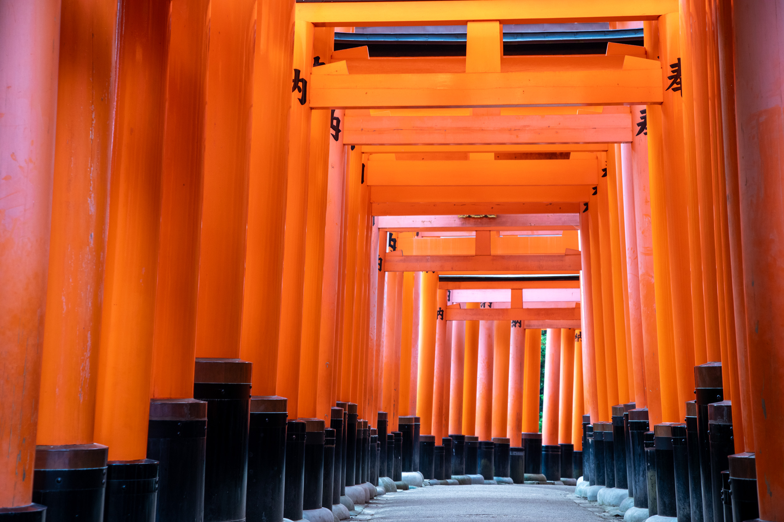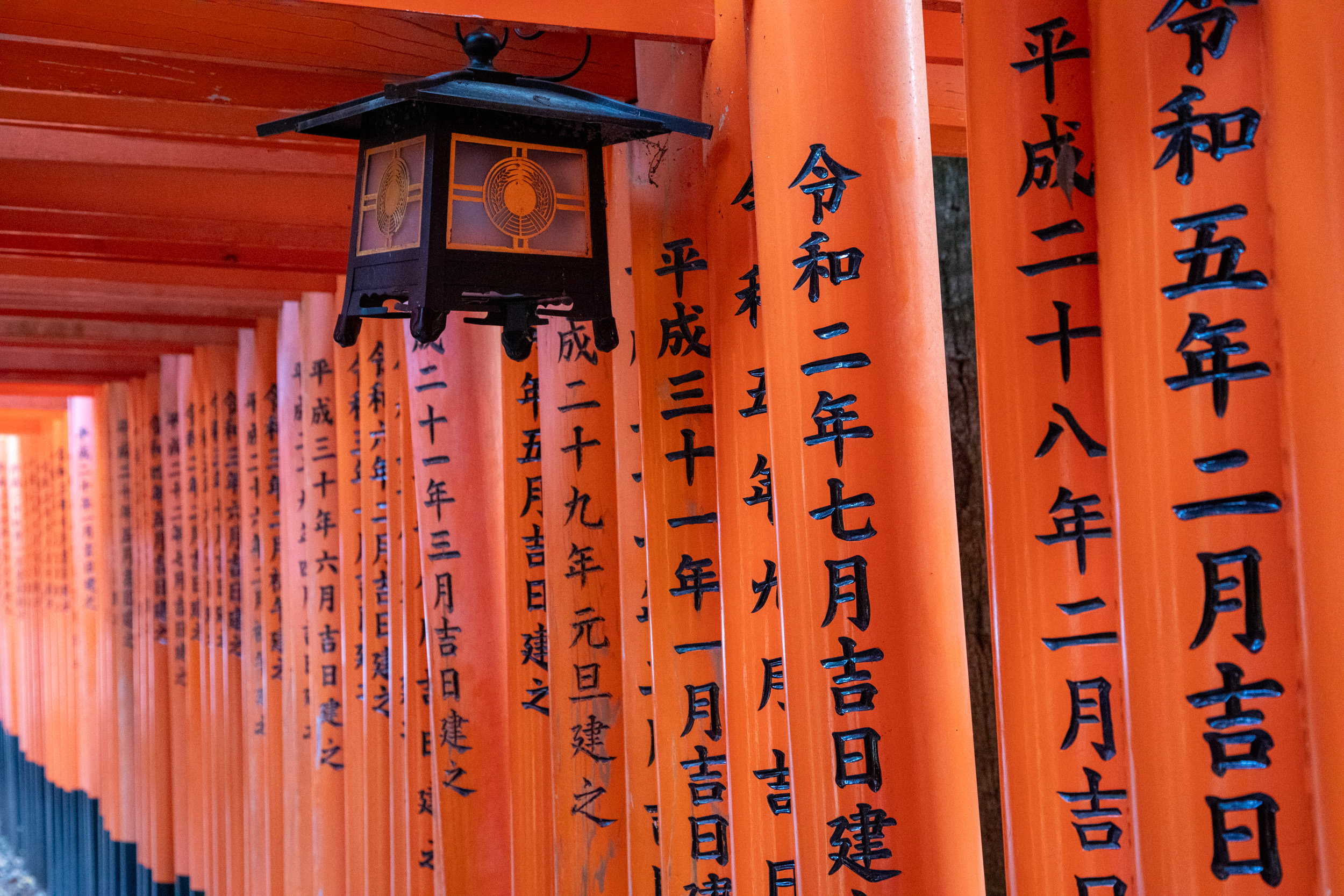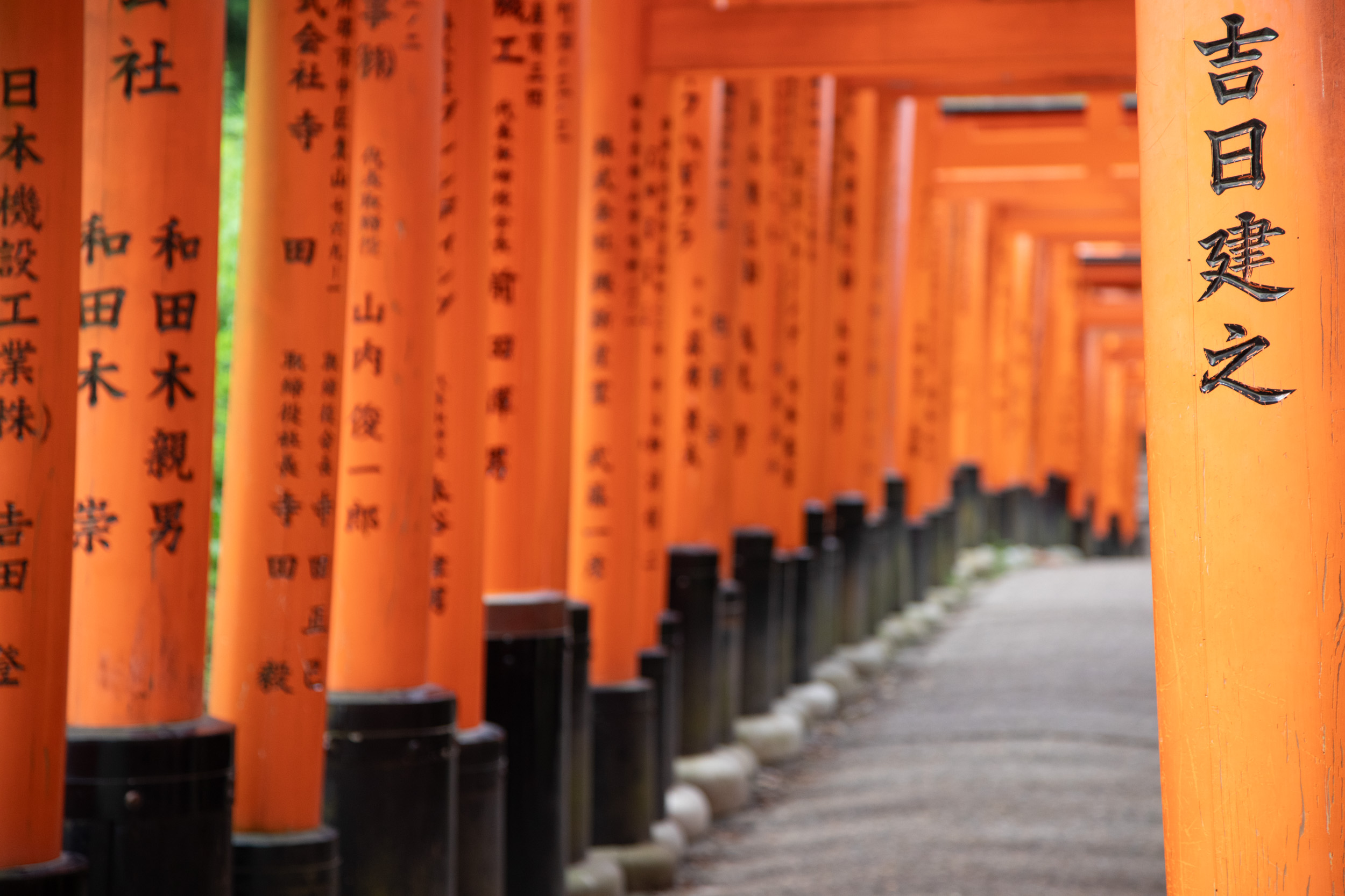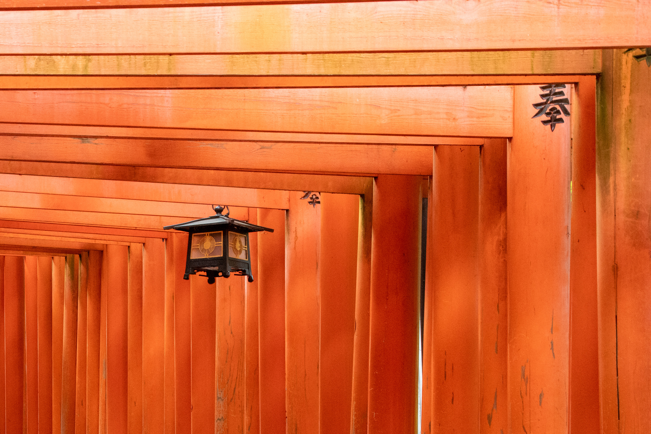 De l’autre côté des tori, il y a des caractères kanji qui sont en fait inscrit sur le montant, cela donne une perspective tout à fait différente dans ce sens.